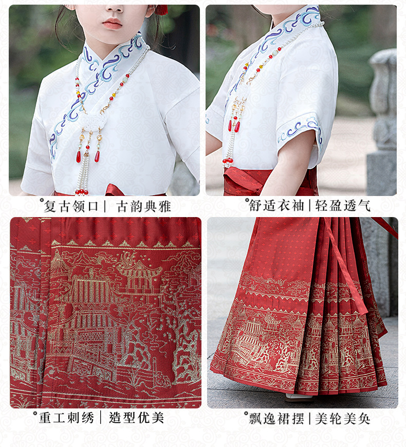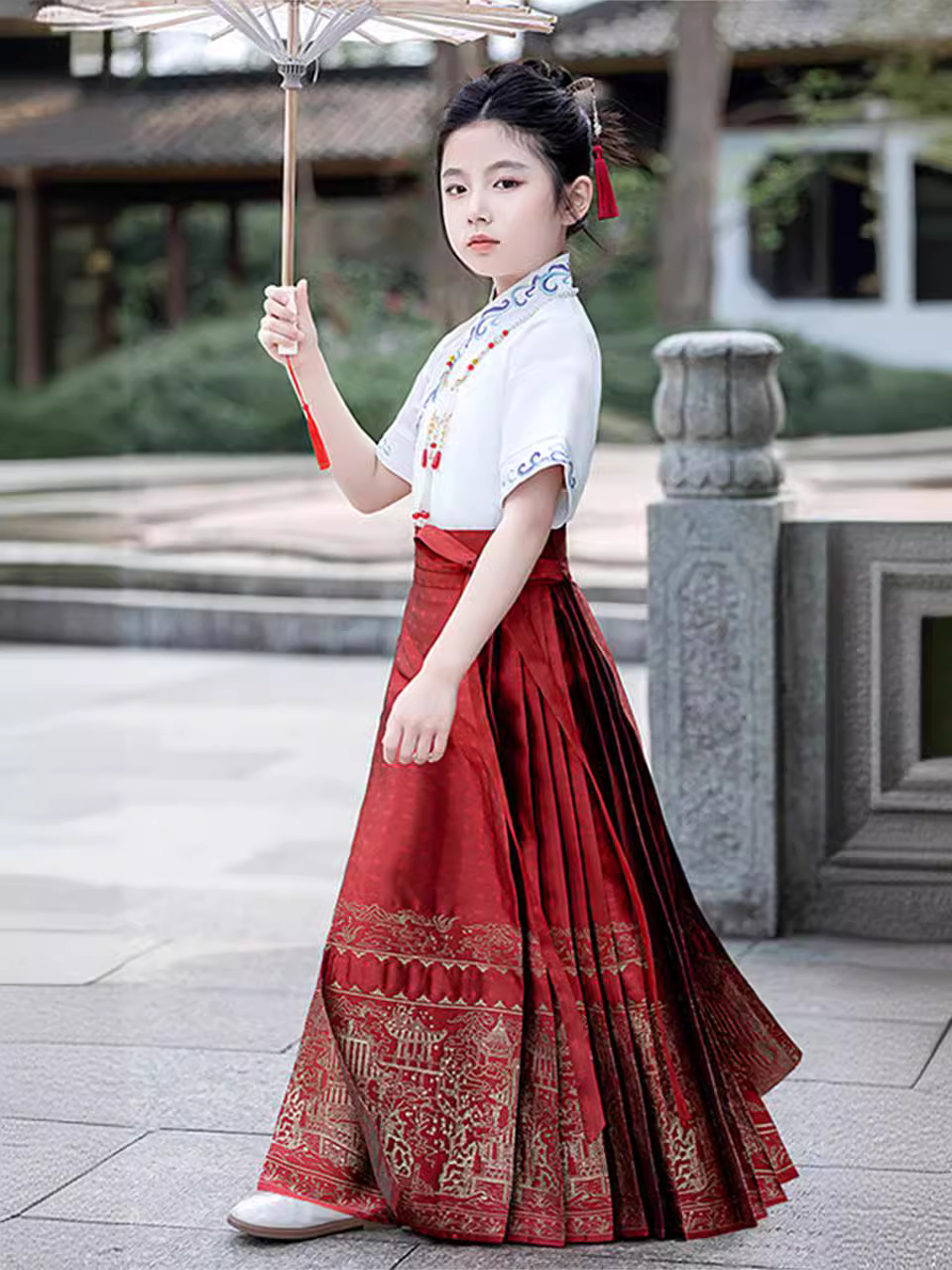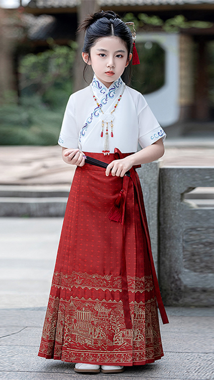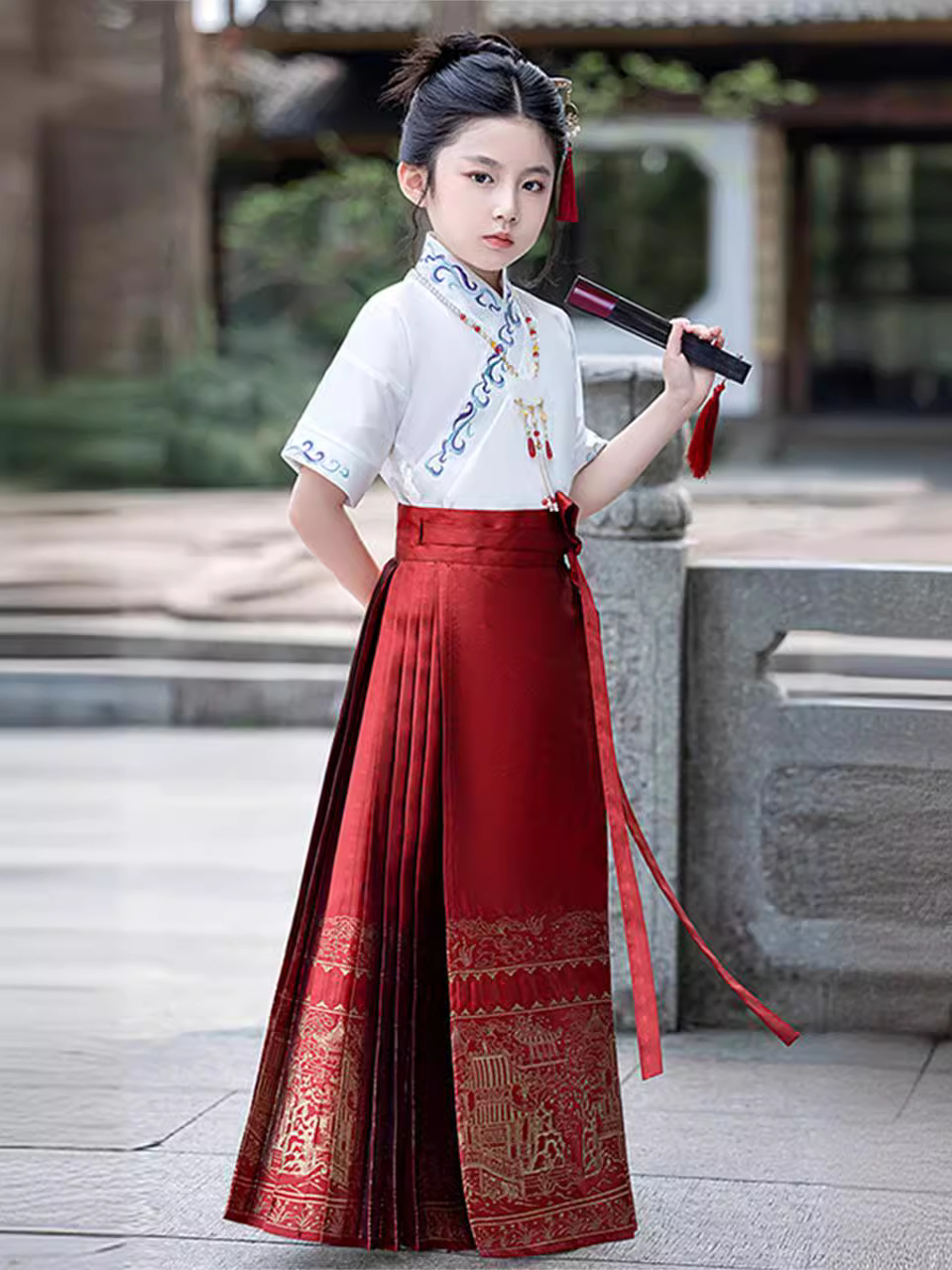 Конская юбка с лапшой для девочек 2024 летний новый стиль премиум-класса новый китайский стиль