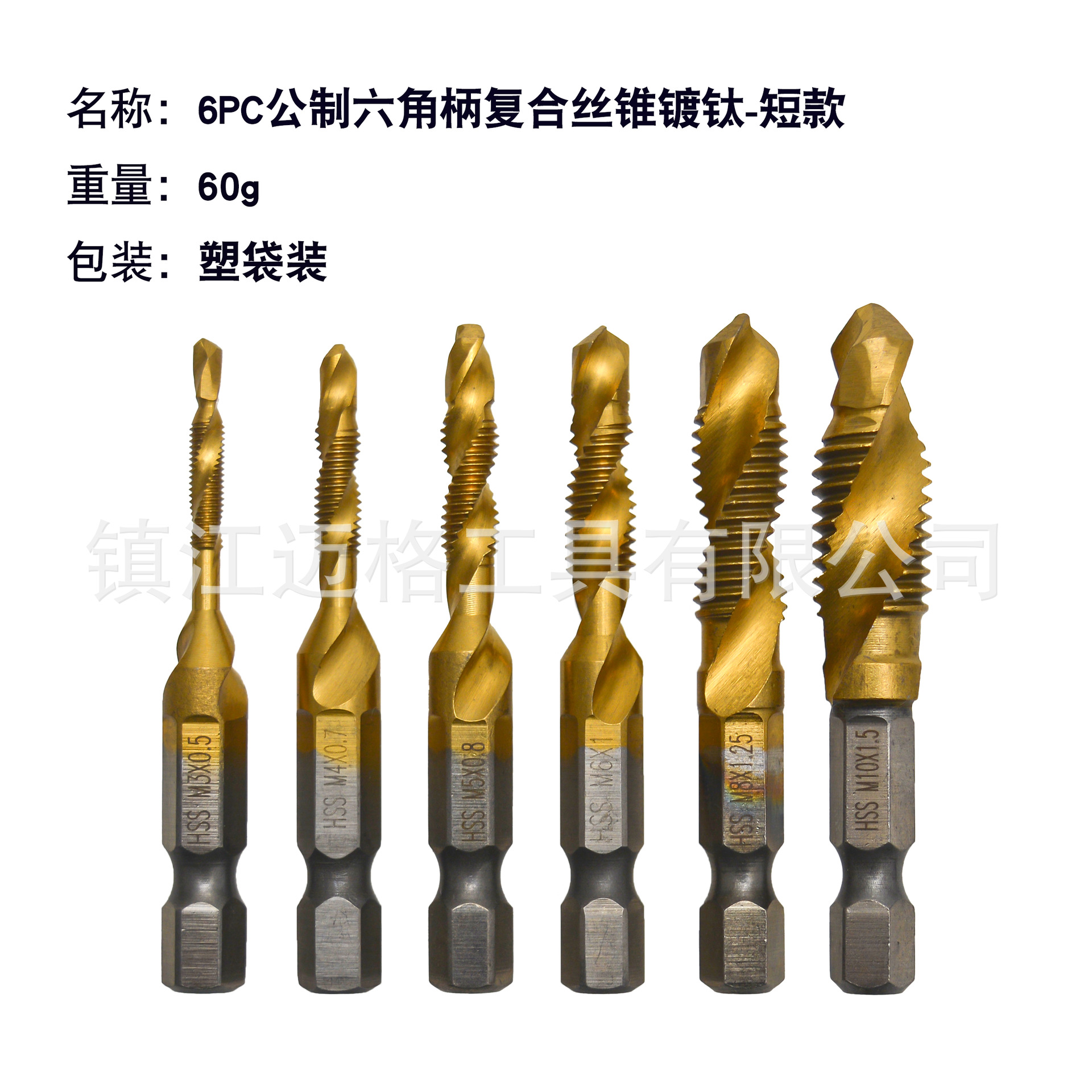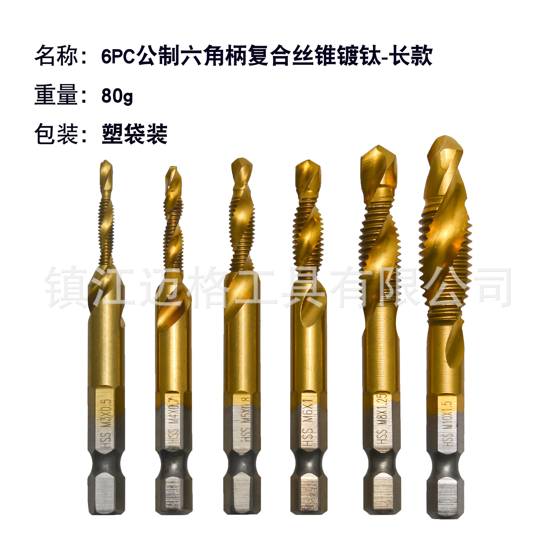名称:六角柄公制复合丝锥白钻/镀钛
