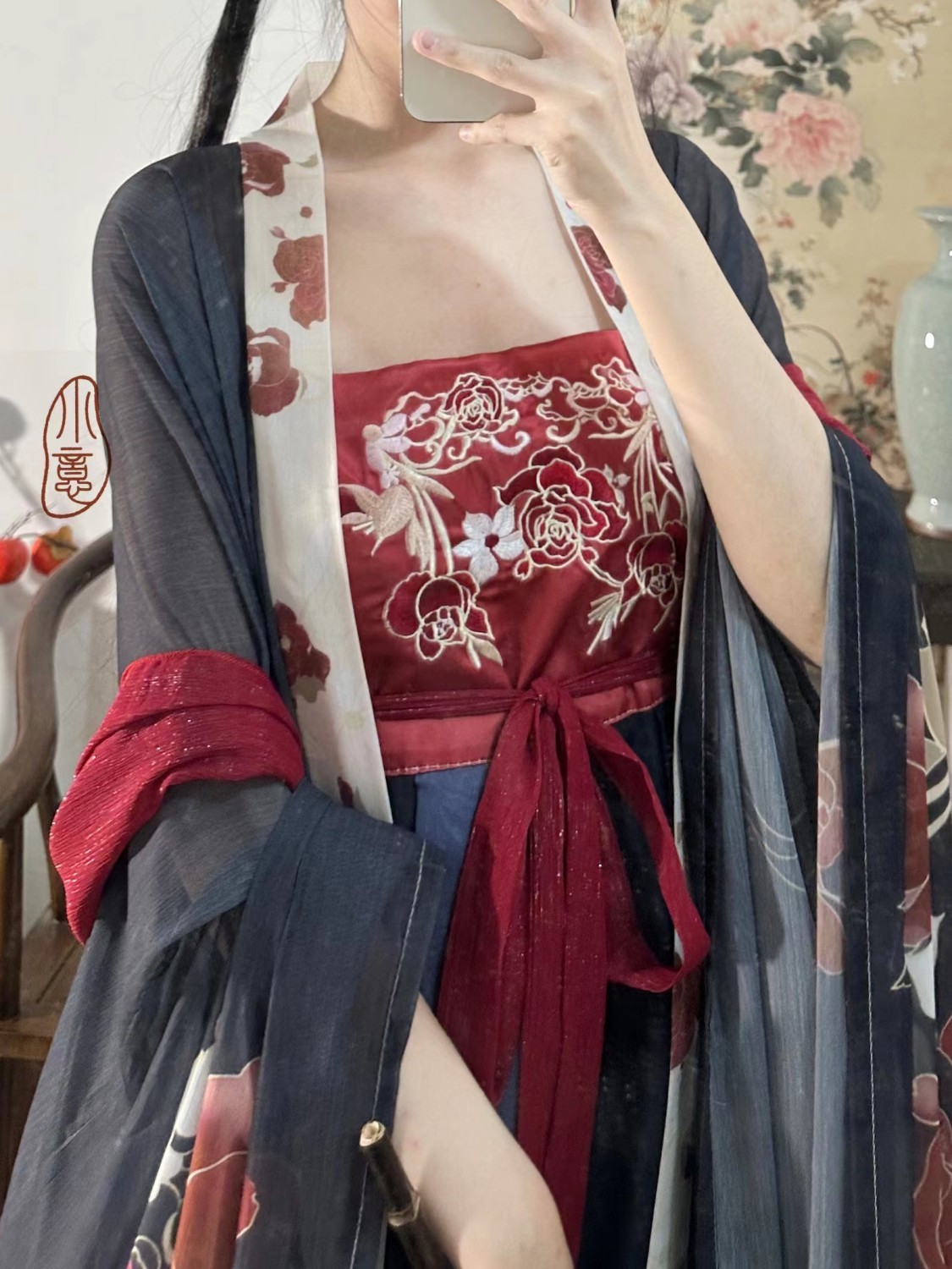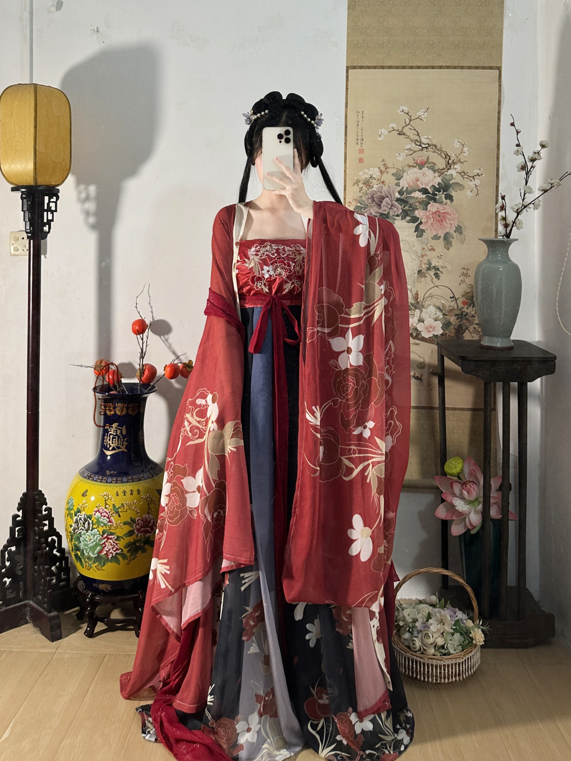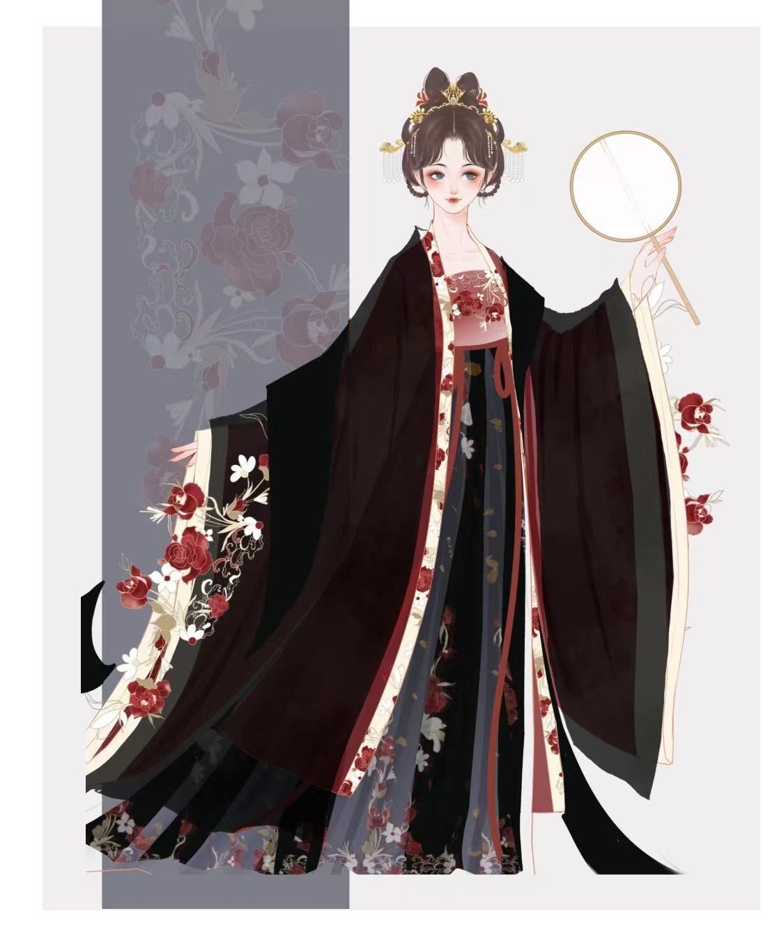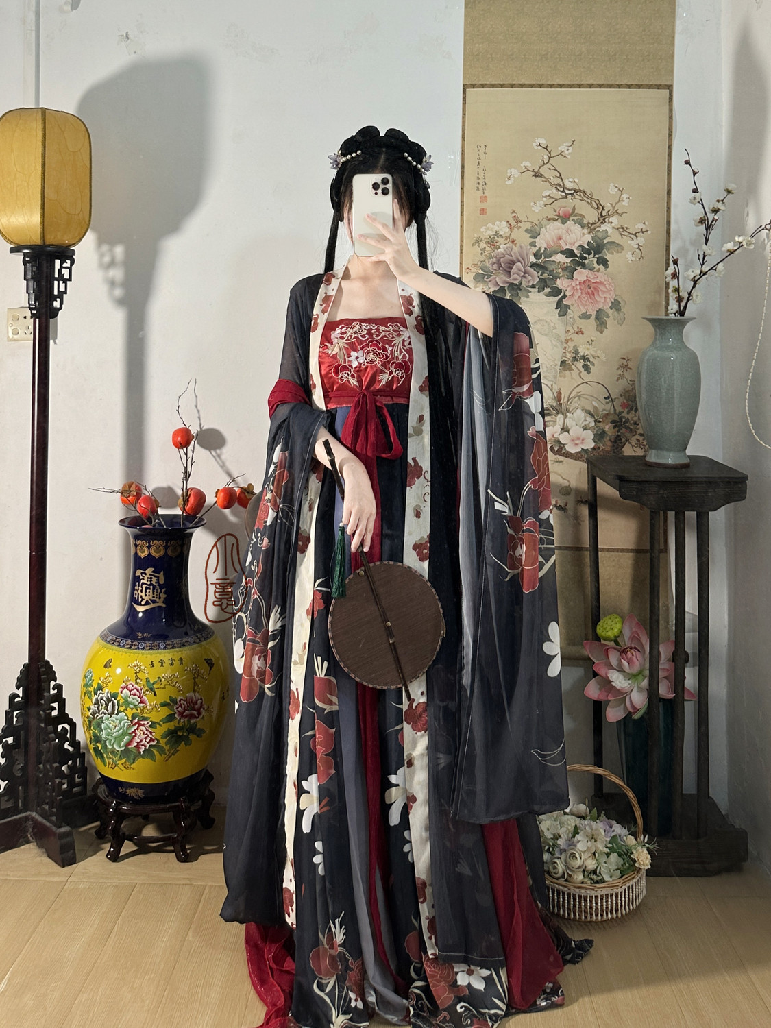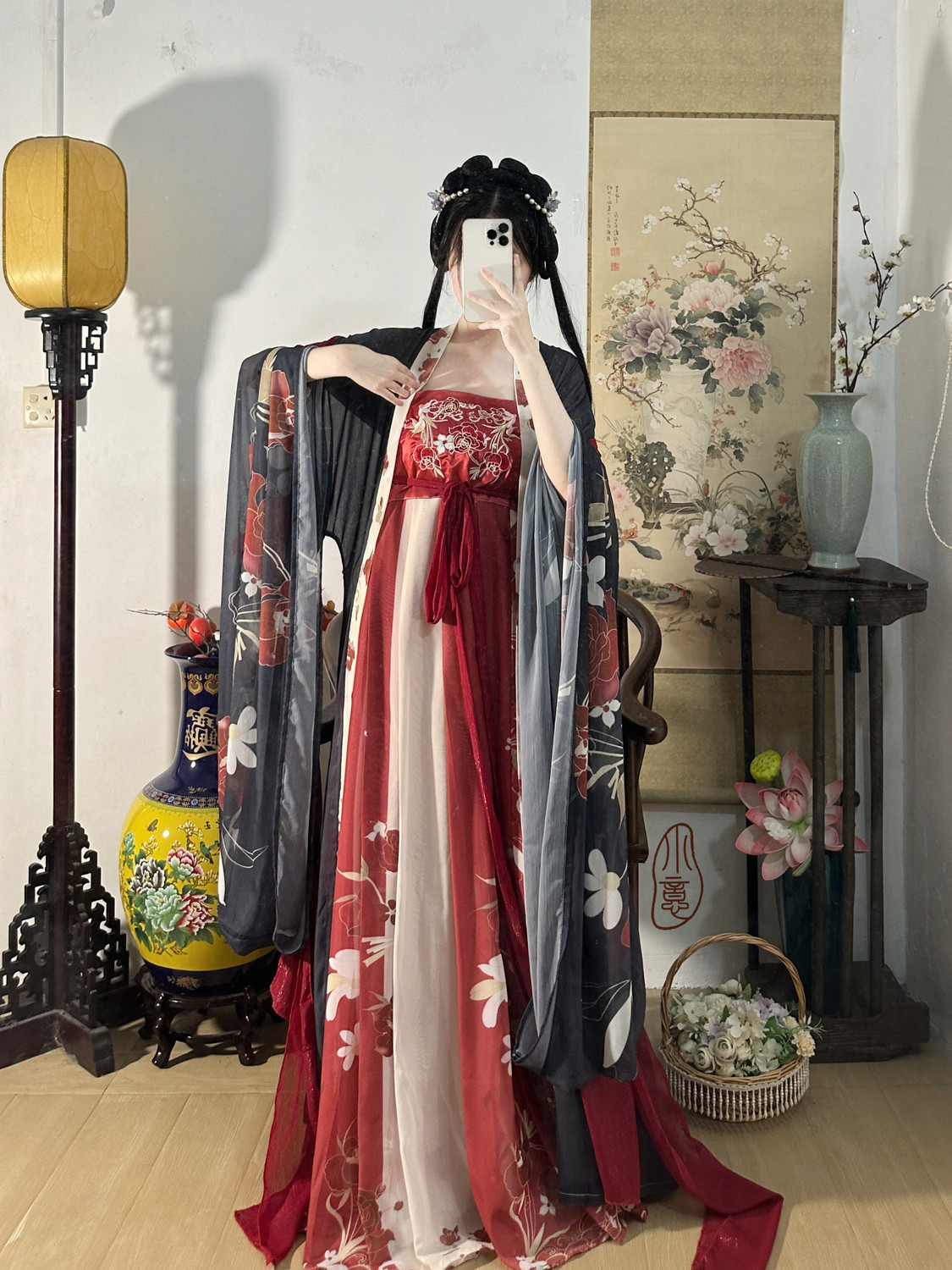 Красное платье с длинными рукавами; Красный большой рукав черная юбка; Черный юбка с большими рукавами; Черная юбка с большими рукавами; Одноразовая футболка с большими рукавами; Одиночная красная рубашка с большими рукавами; Одиночная черная рубашка с большими рукавами