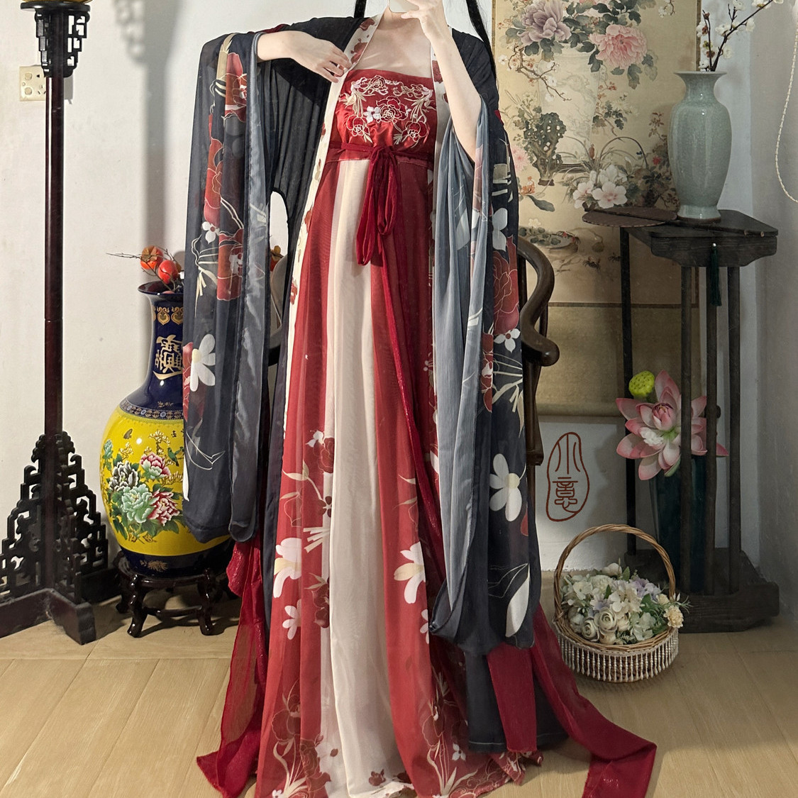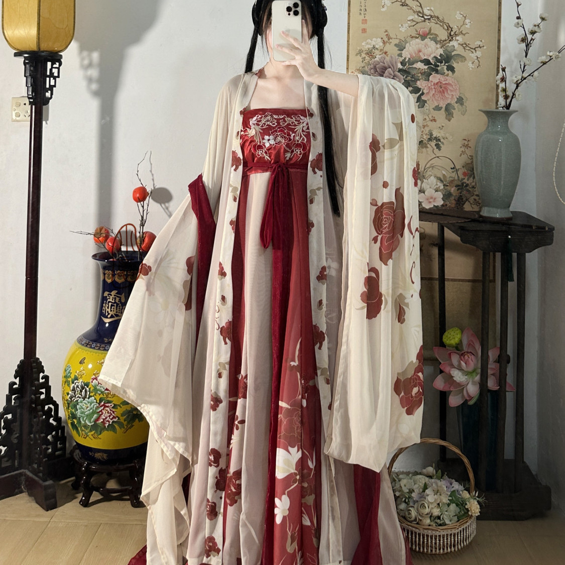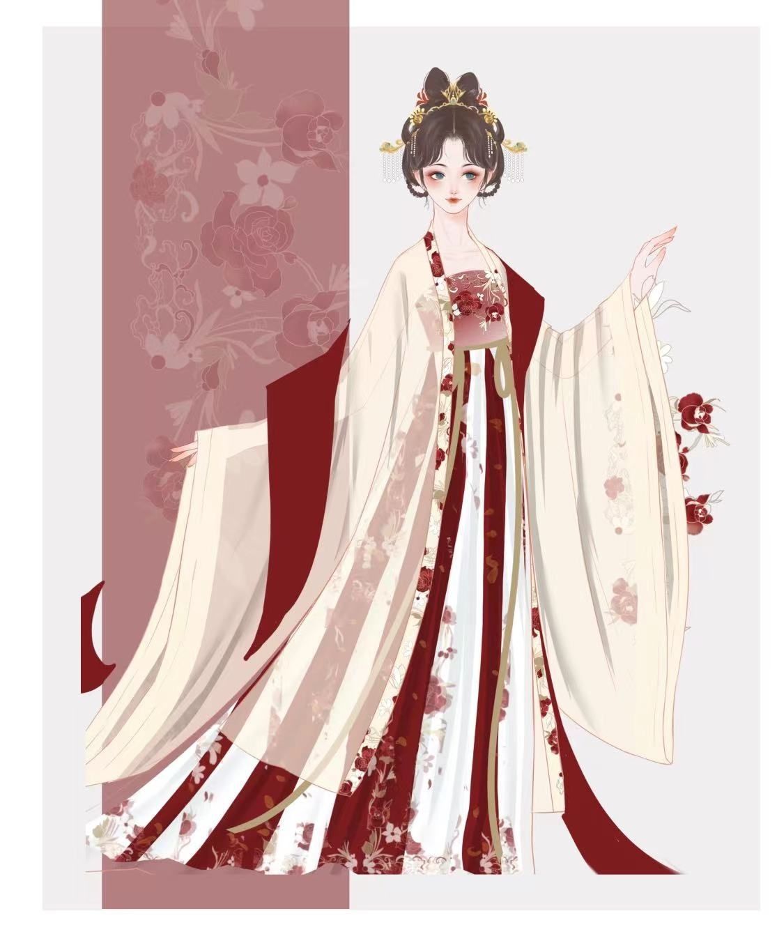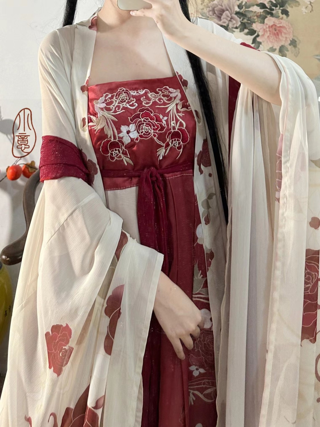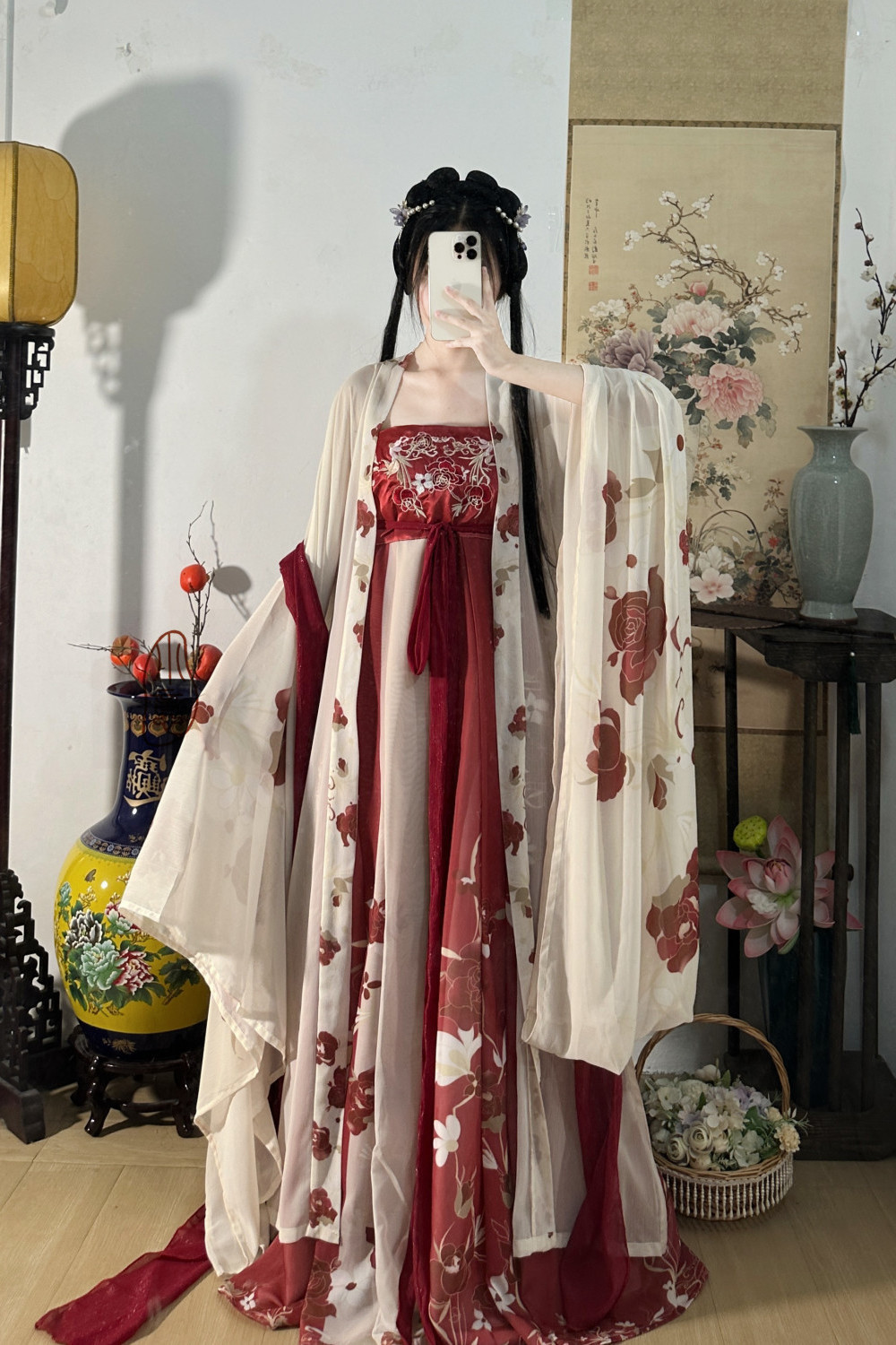Красное платье с длинными рукавами; Красный большой рукав черная юбка; Черный юбка с большими рукавами; Черная юбка с большими рукавами; Одноразовая футболка с большими рукавами; Одиночная красная рубашка с большими рукавами; Одиночная черная рубашка с большими рукавами