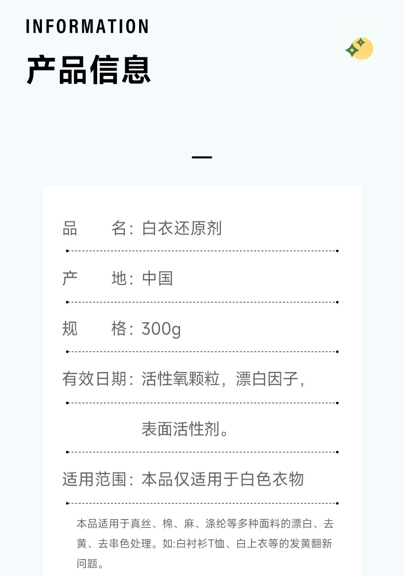 Белый восстанавливающий агент для удаления пожелтения и удаления окрашенного порошка для отбеливания белой одежды