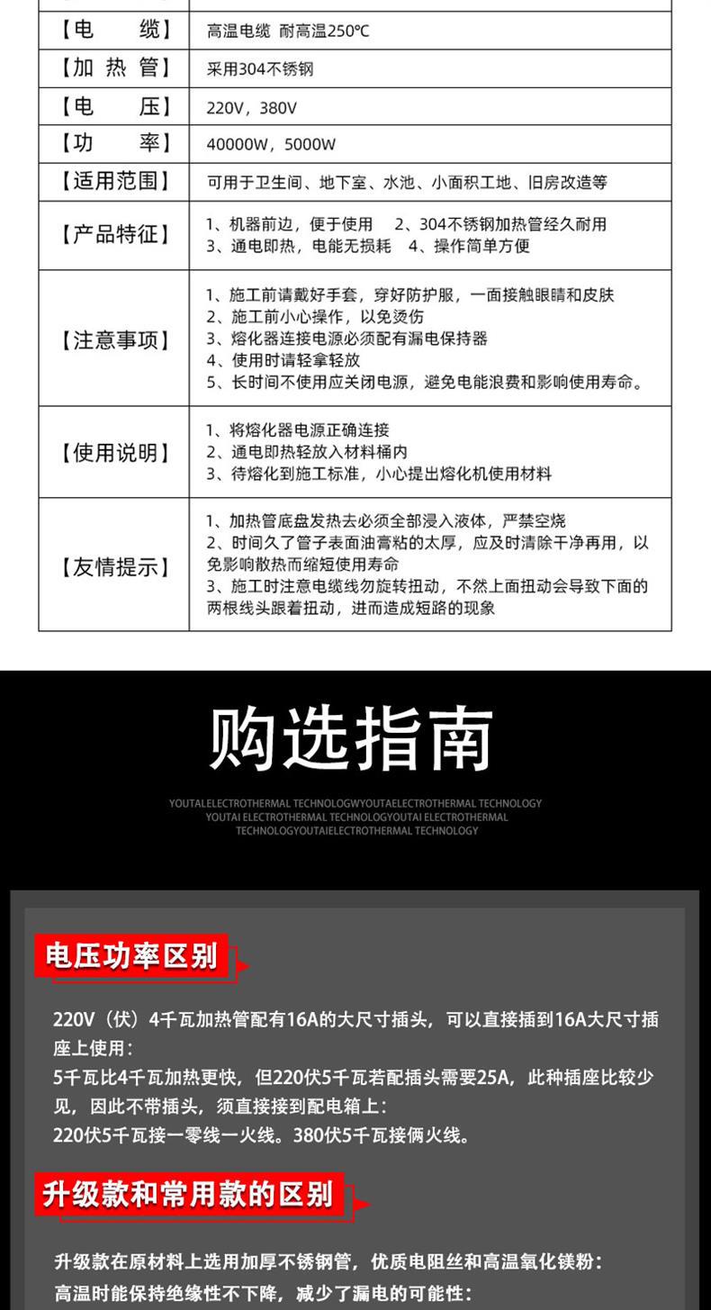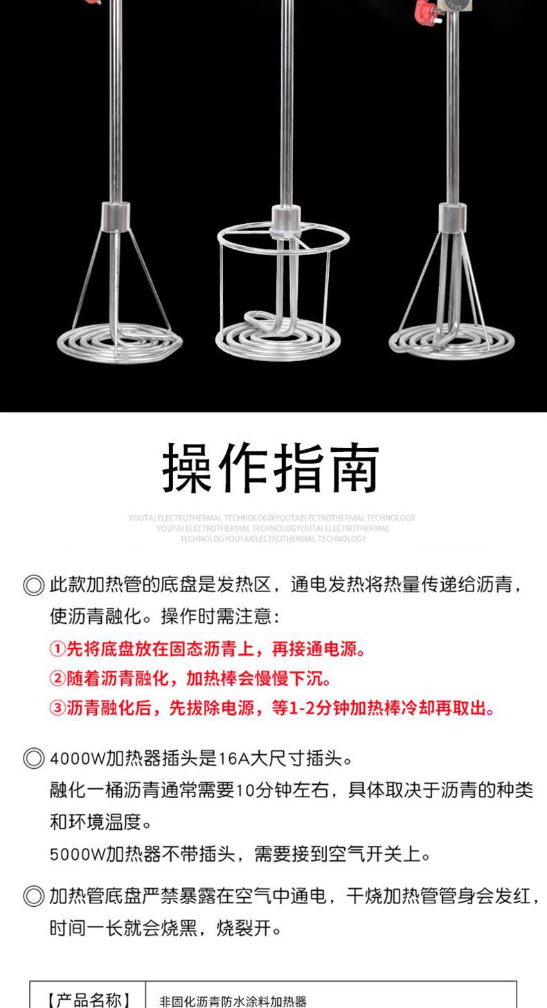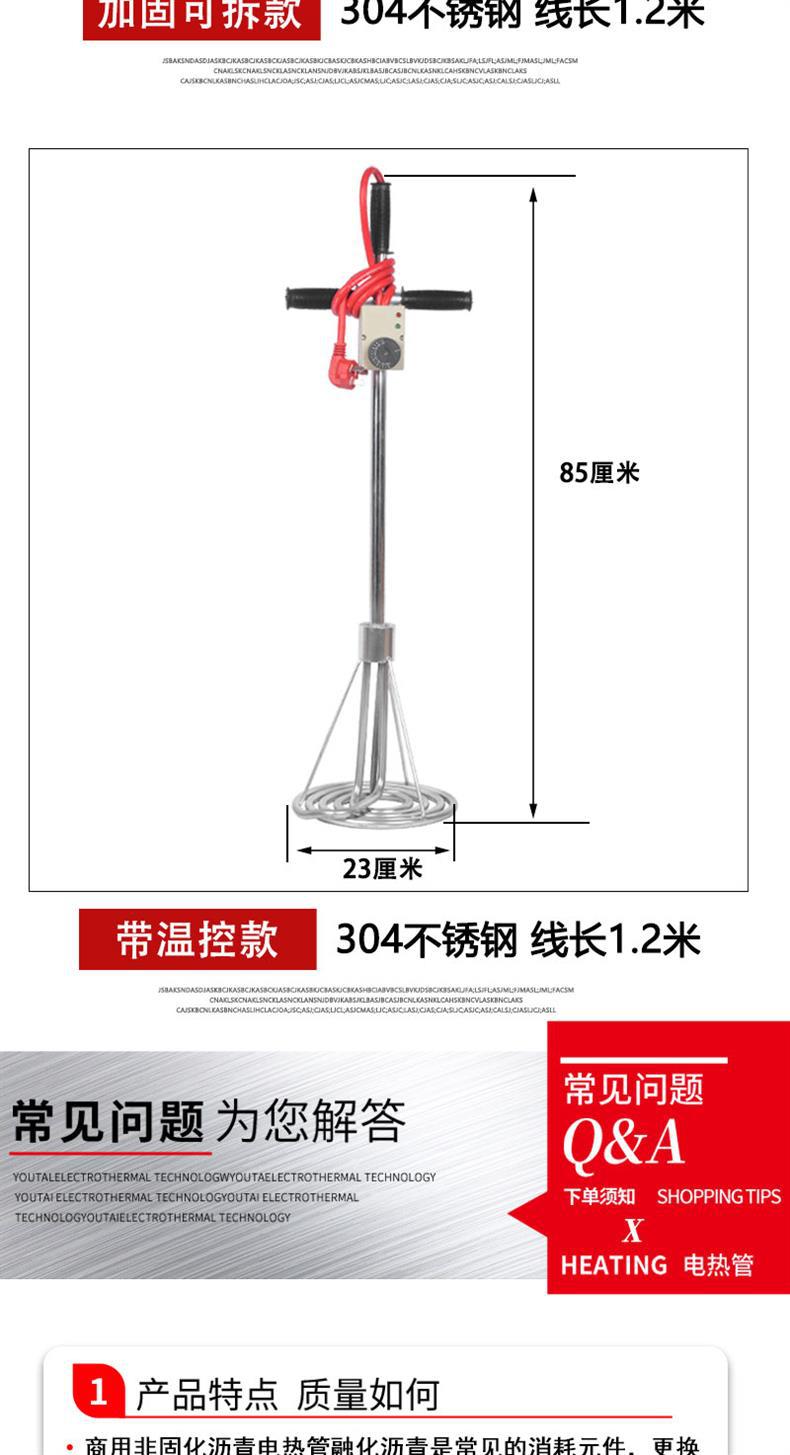 Неотверждаемый нагреватель для плавления асфальта нагревательный стержень инженерный водонепроницаемый плавильный плавильный электрический нагревательный трубопровод 220V