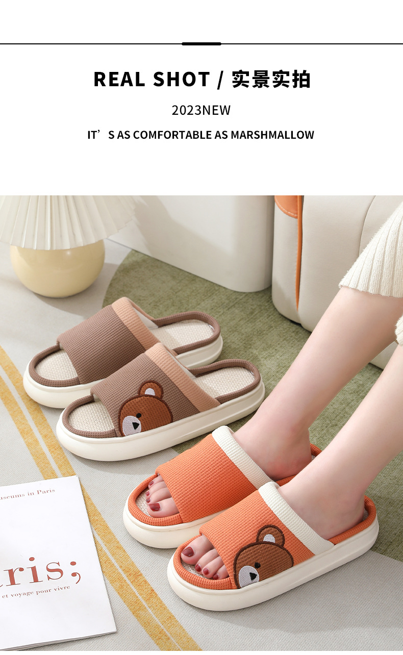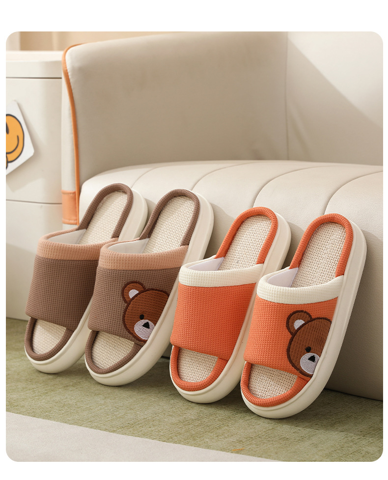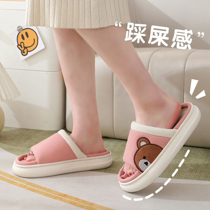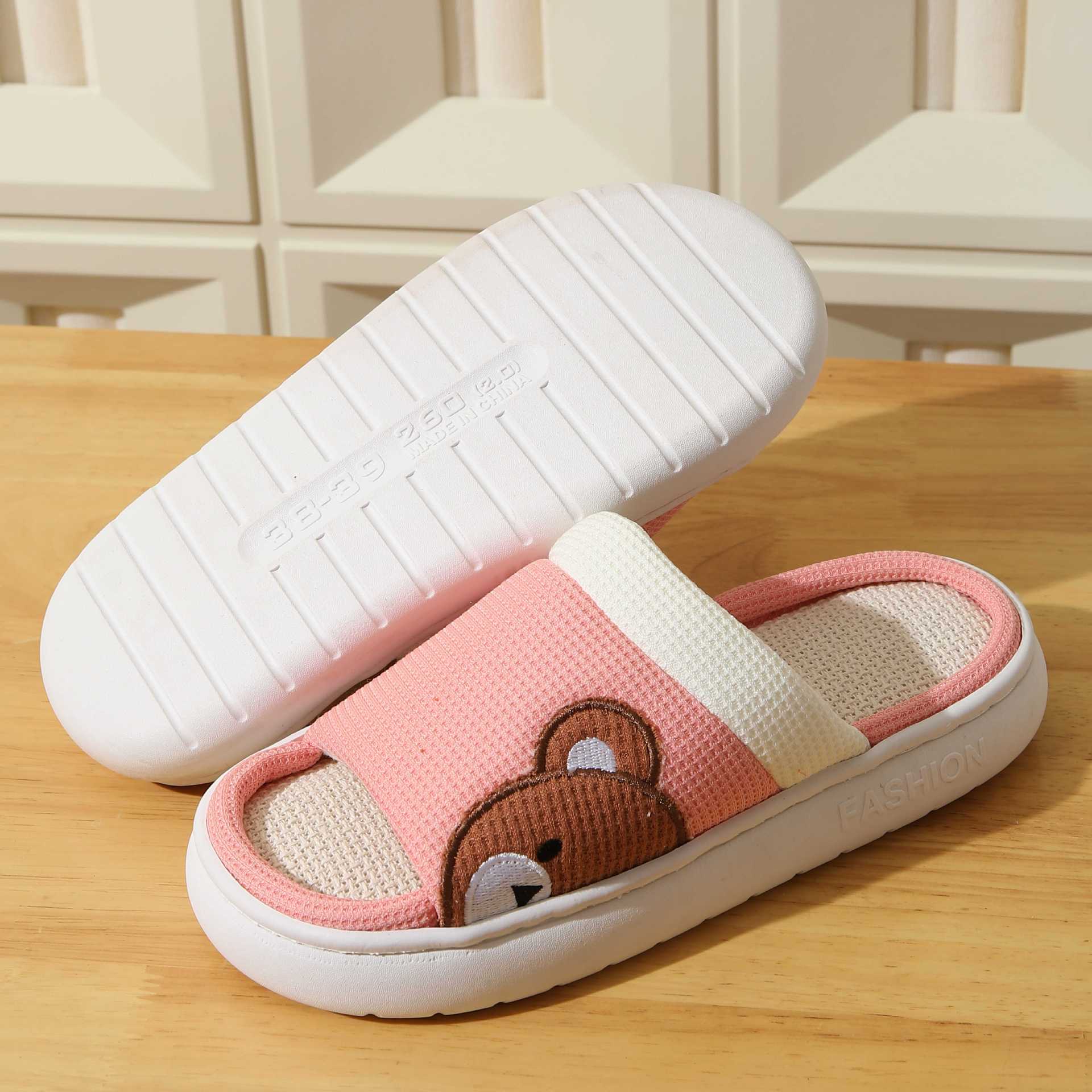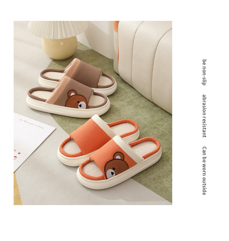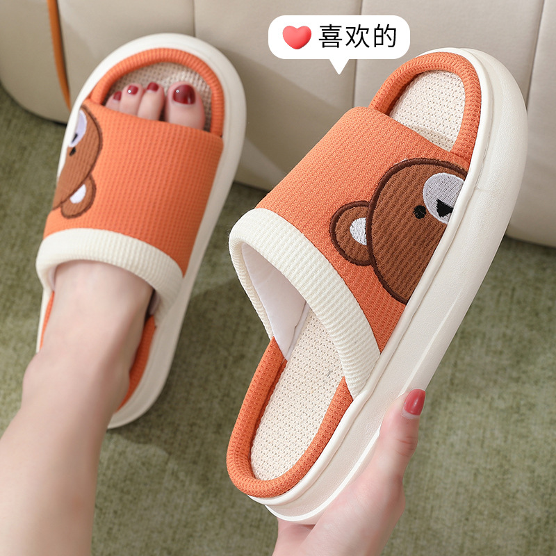 Четыре сезона льняные тапочки женские летние дышащие толстые подошвы для дома в помещении
