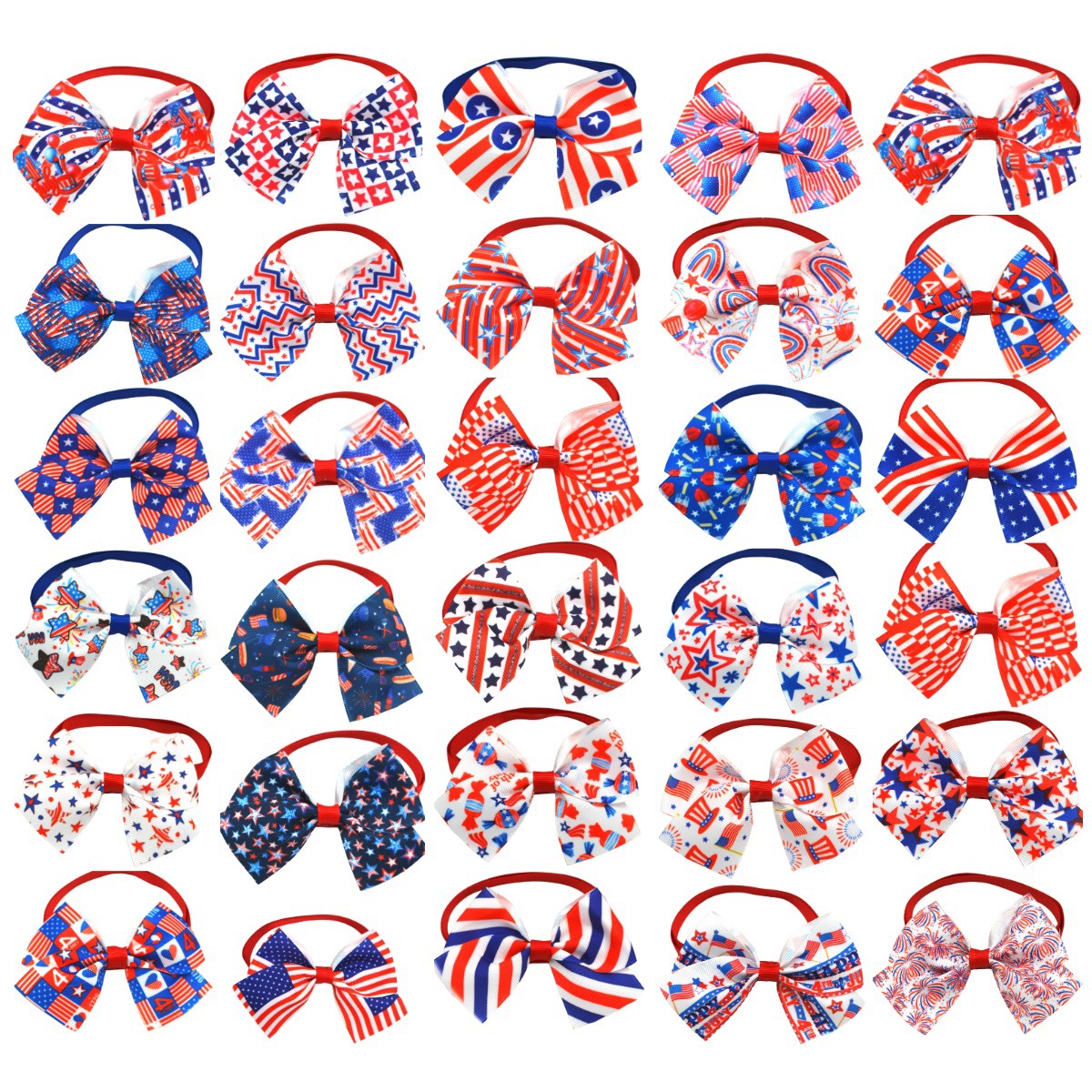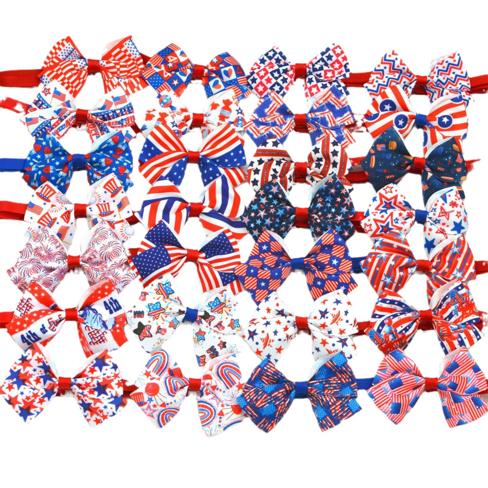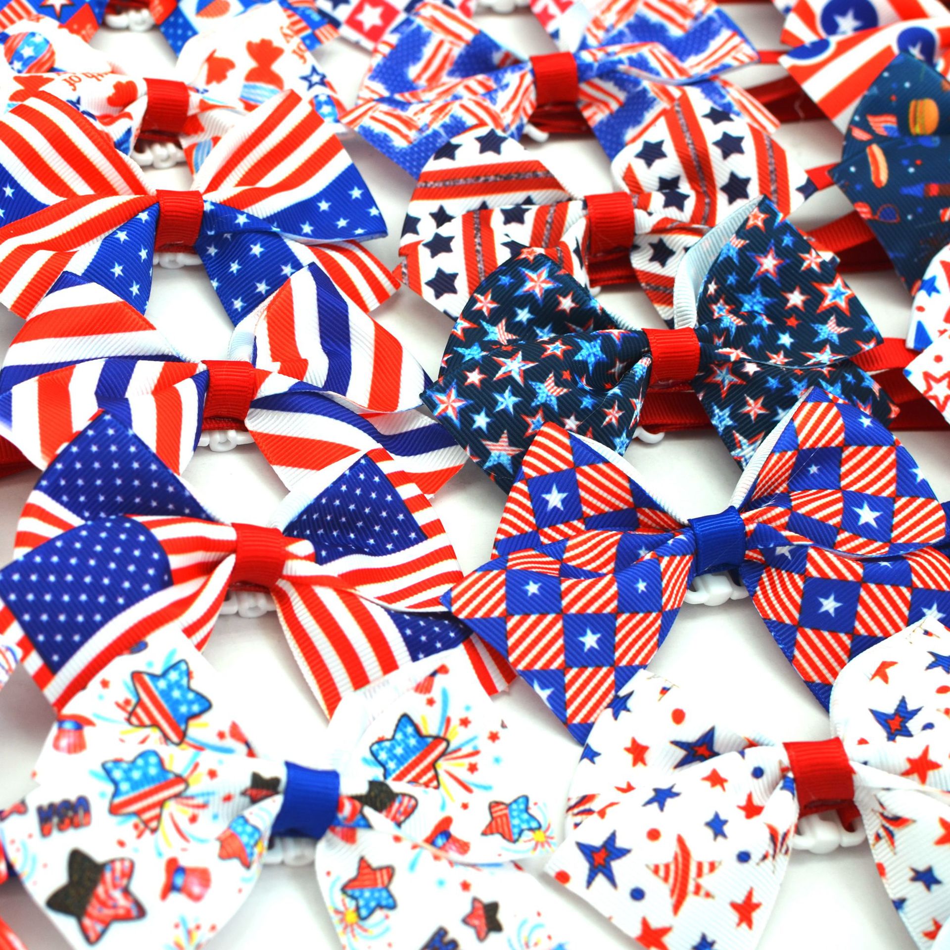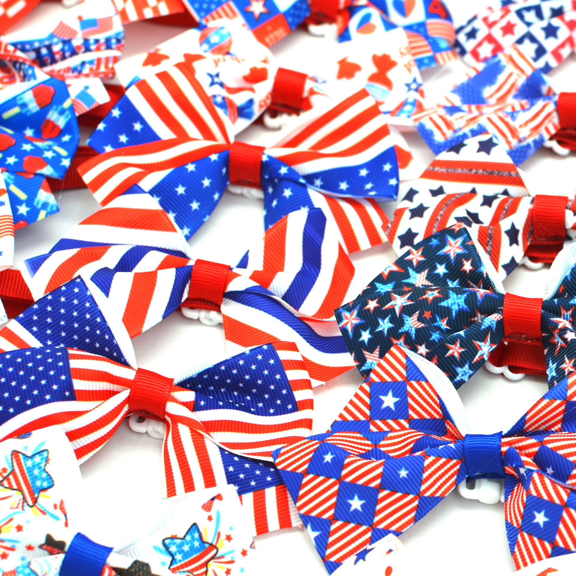 Трансграничные горячие продажи День Независимости Домашние животные Банты Щенки Кошки-бабочки Красный синий белый Домашние головные уборы Вьющиеся головные уборы с головными цветами