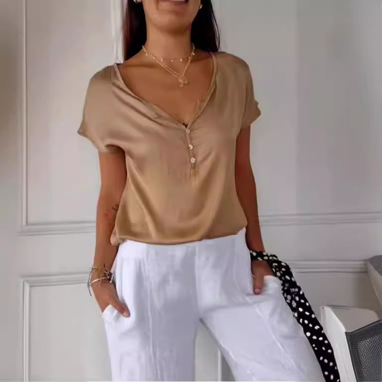 2024 Летние трансграничные европейские и американские независимые станции Amazon Новый свободный повседневный простой пригородный топ с короткими рукавами