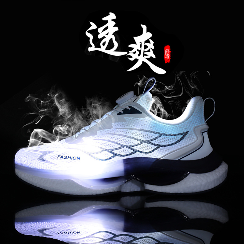 Мужская обувь 2024 вращающихся пуговиц кроссовки сетка дышащий толстый дно попкорн беговые кроссовки заводские прямые продажи