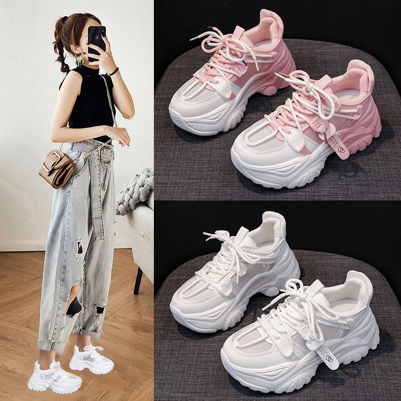 Обувь папы женский 2024 весна осень новая летняя белая толстая подошва дикая повседневная спортивная маленькая белая взрывная женская обувь