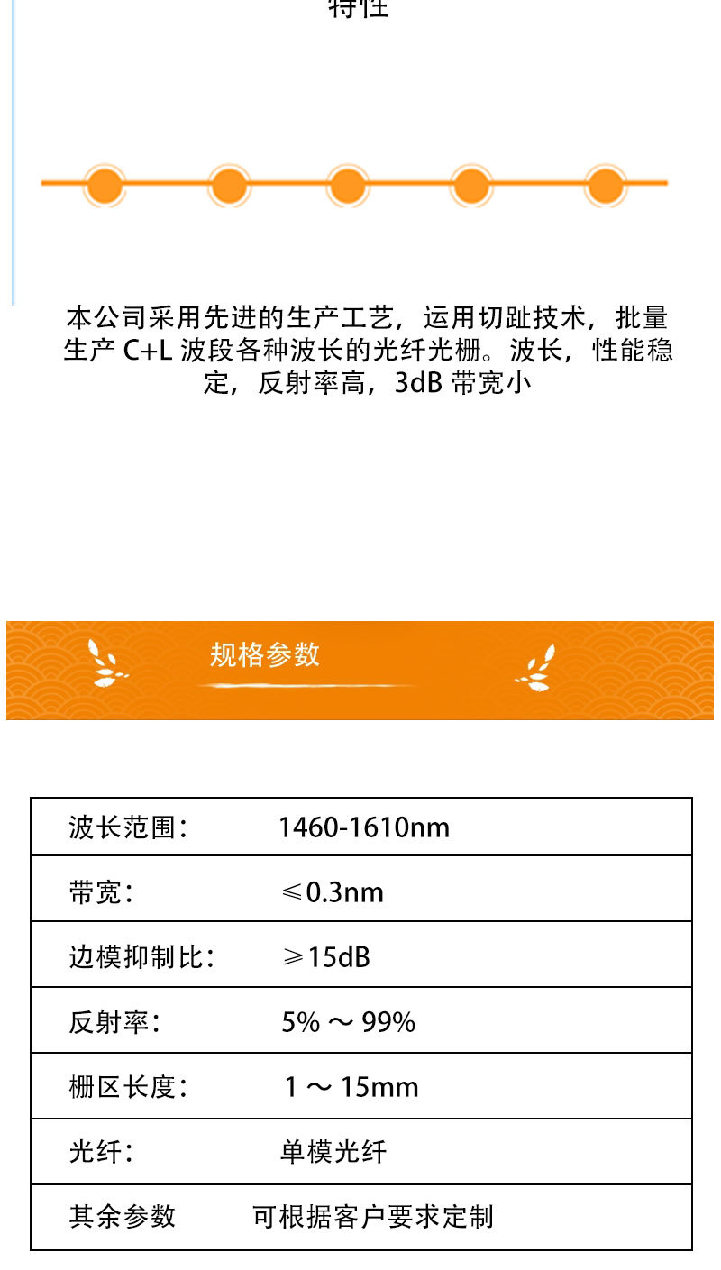 Геограническая оптоэлектронная оптоволоконная решетка с вырезанным носком FBG Двойной разъем Прага Волоконно-оптическая решетка Технические характеристики Параметры на выбор