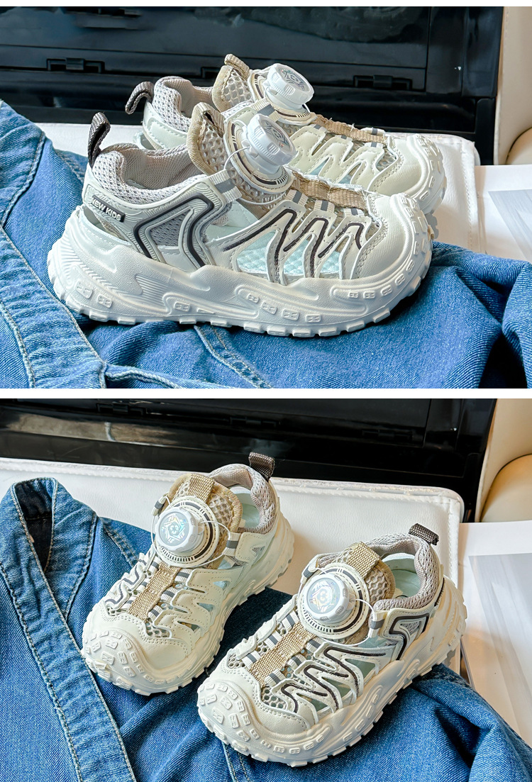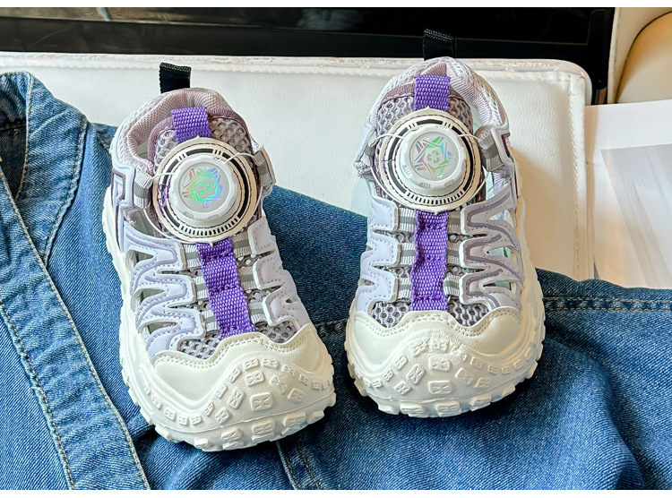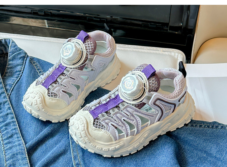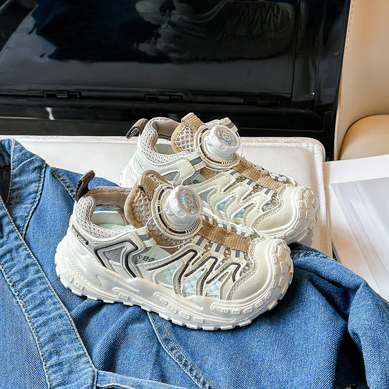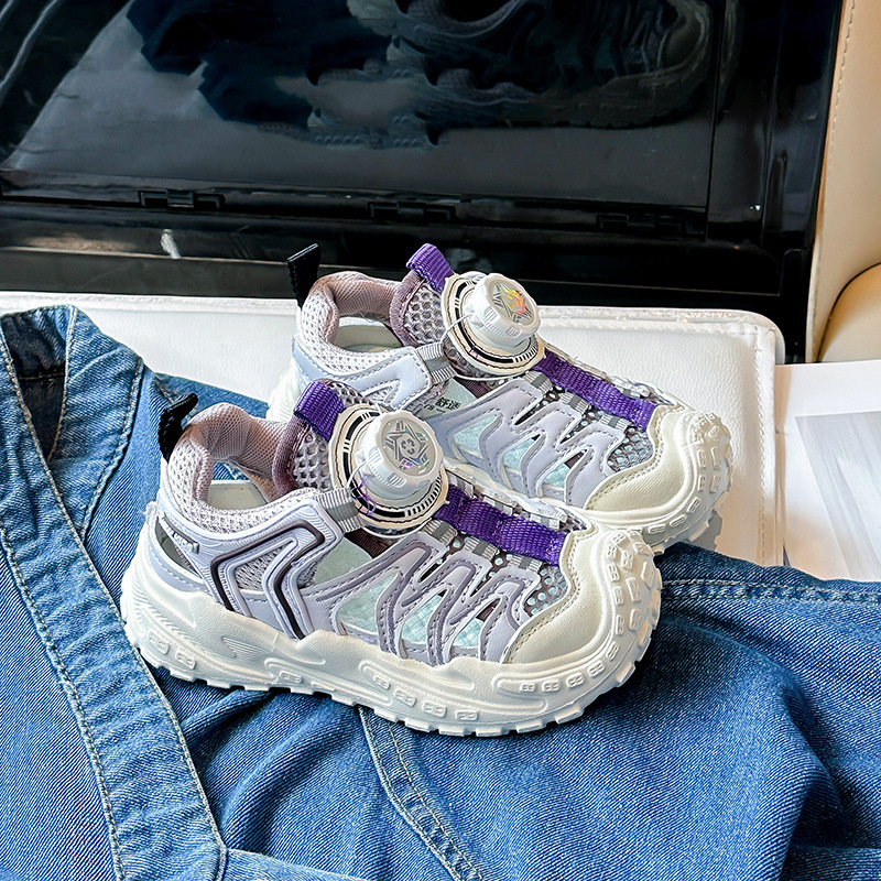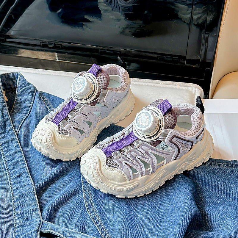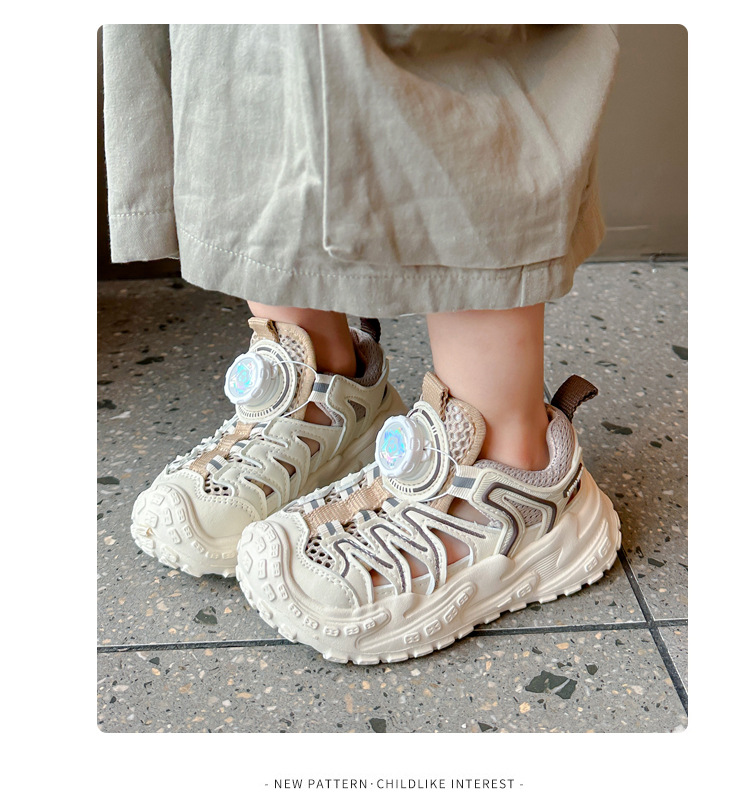 Корейские нескользящие сандалии для мальчиков 2024 Летние девочки модные дышащие полые сетчатые кроссовки для больших детей