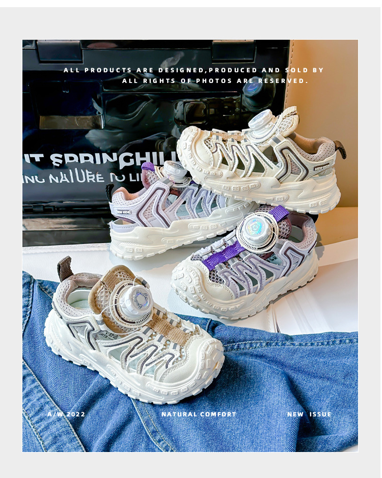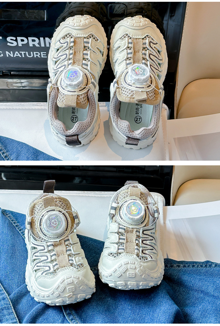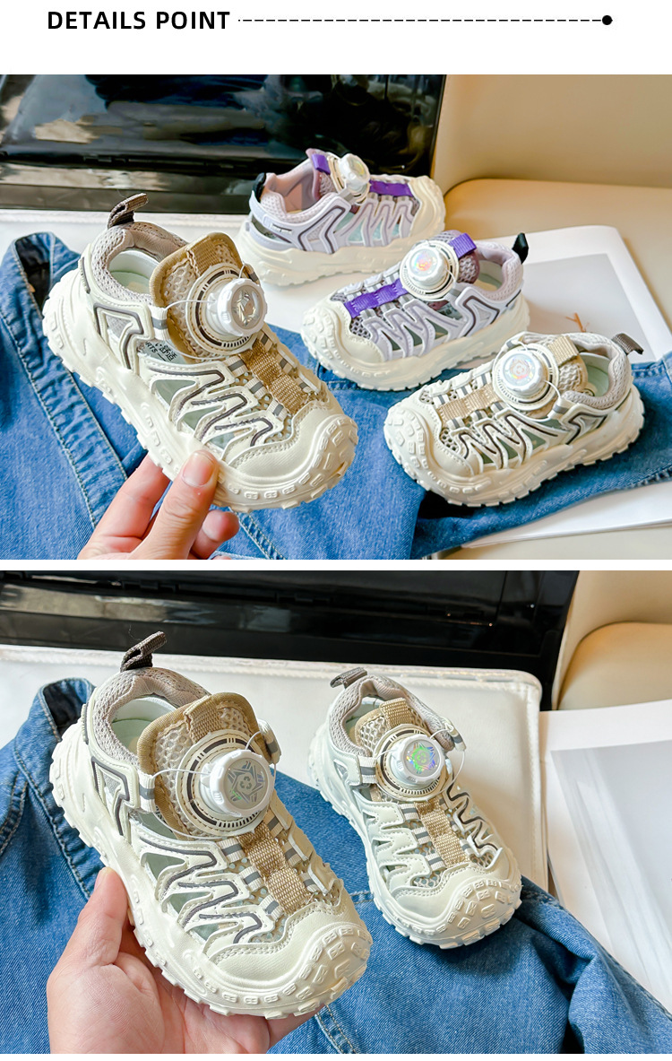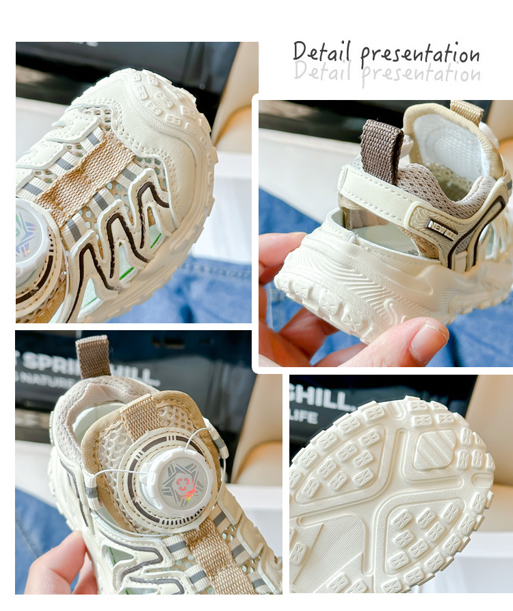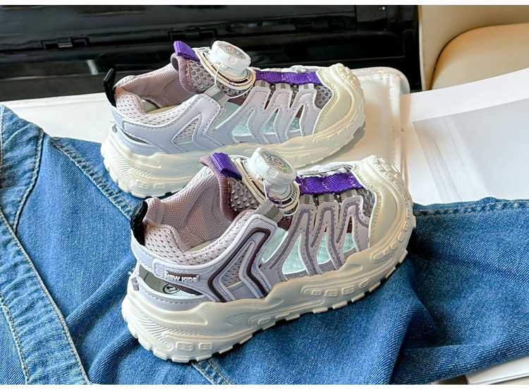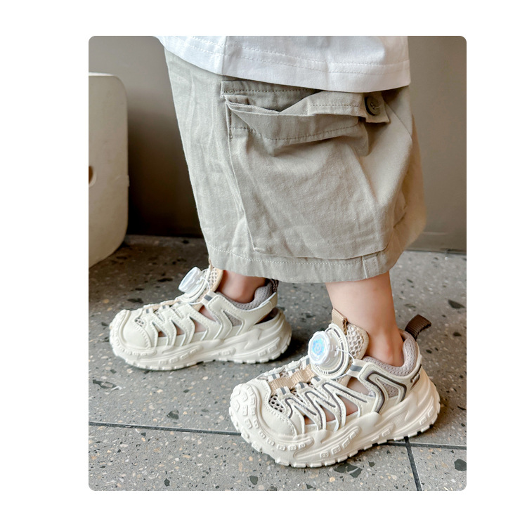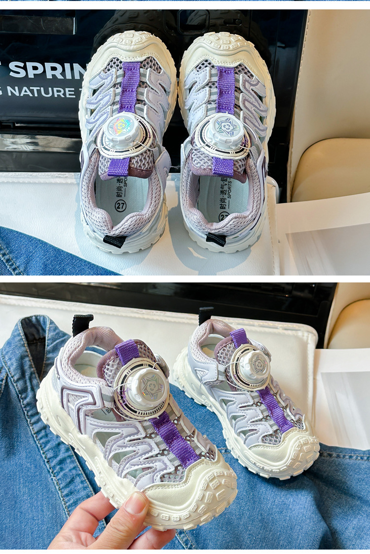 Корейские нескользящие сандалии для мальчиков 2024 Летние девочки модные дышащие полые сетчатые кроссовки для больших детей