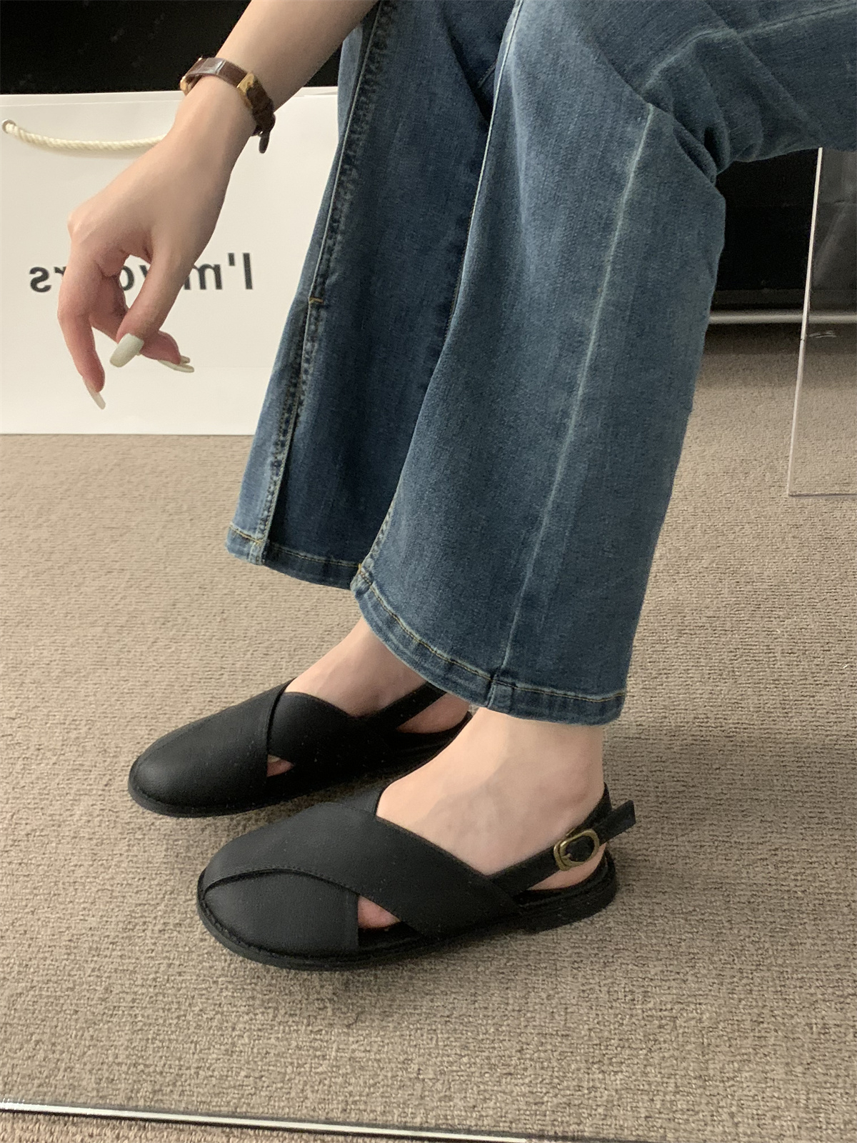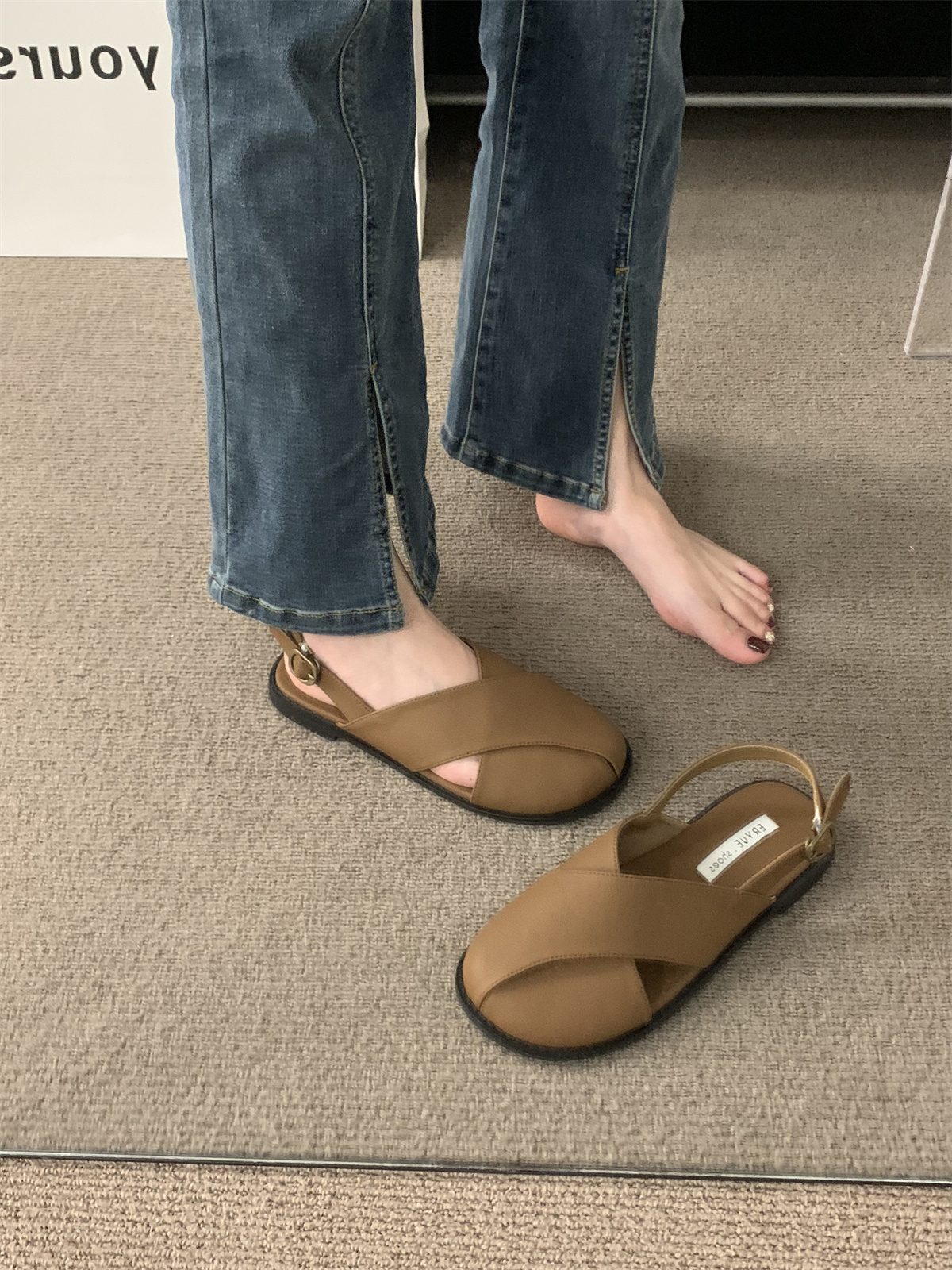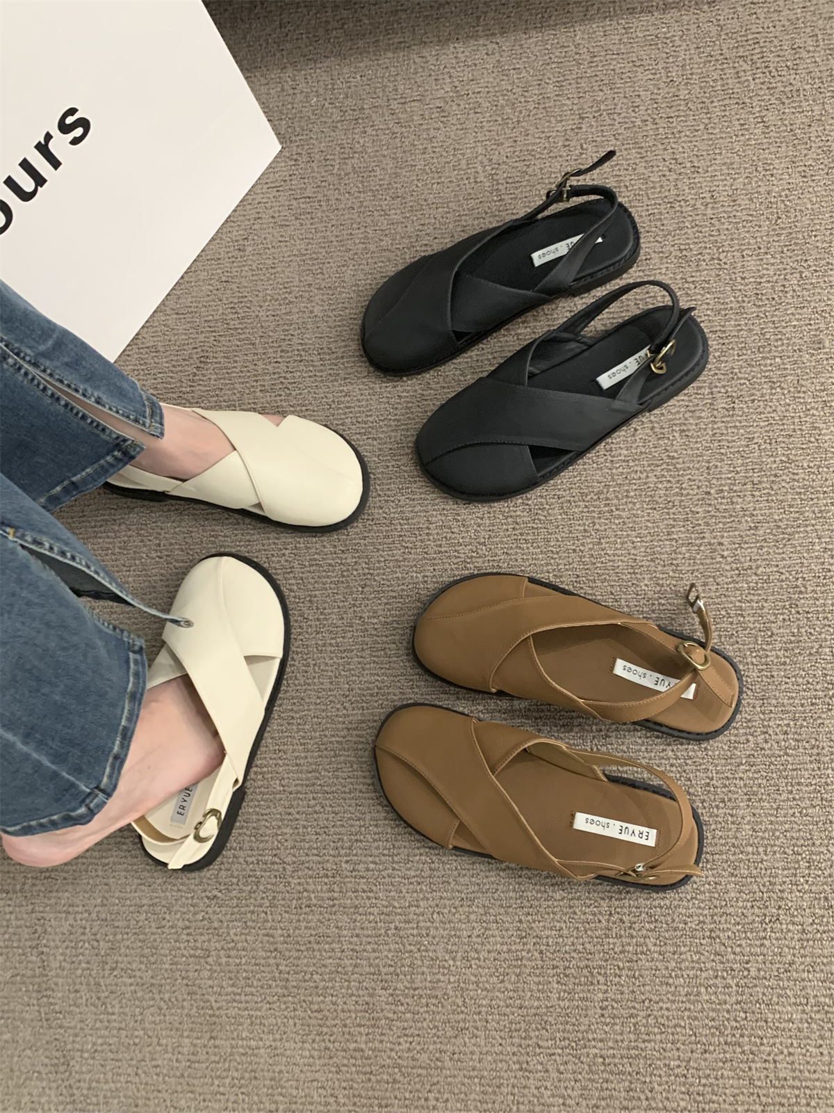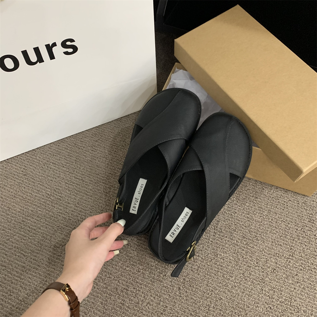Женские сандалии Baotou, новинка 2024, летние повседневные римские туфли на плоской подошве в корейском стиле во французском стиле ретро в стиле лесной феи