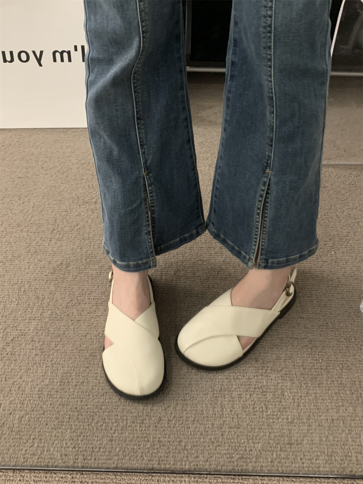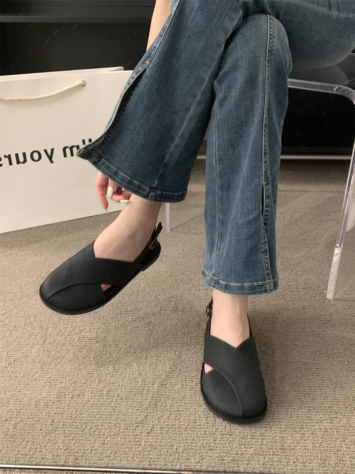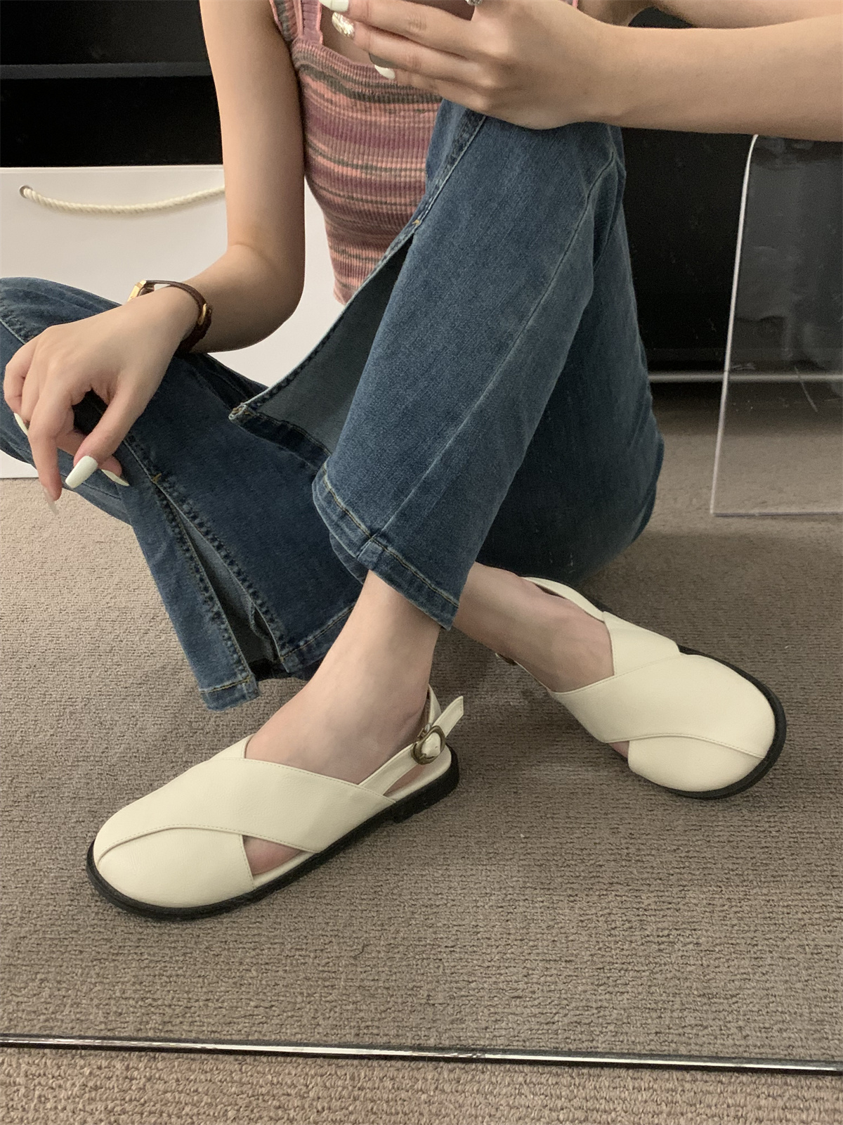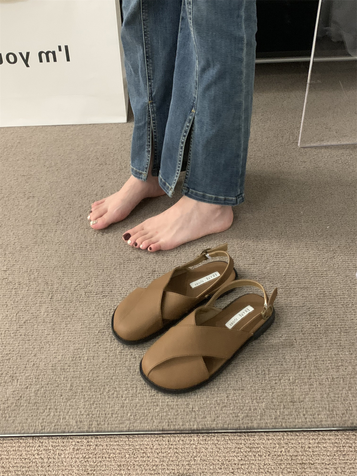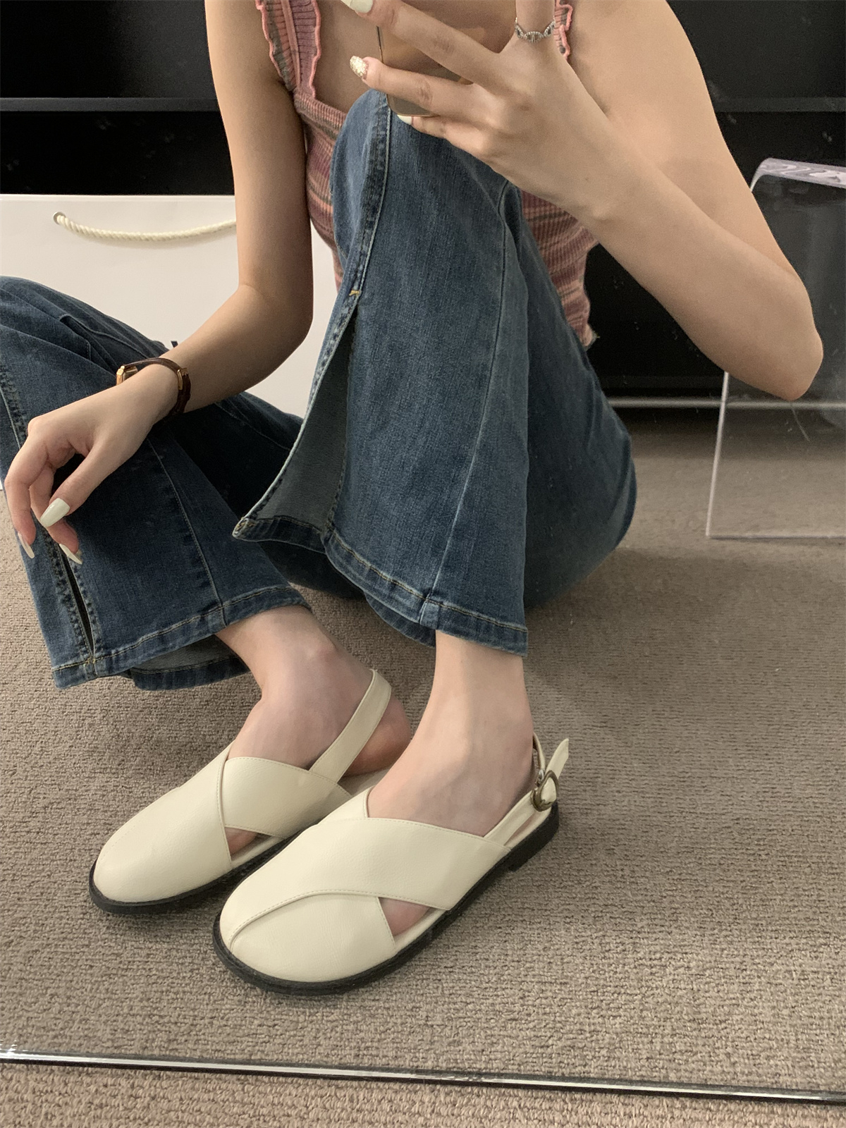 Женские сандалии Baotou, новинка 2024, летние повседневные римские туфли на плоской подошве в корейском стиле во французском стиле ретро в стиле лесной феи