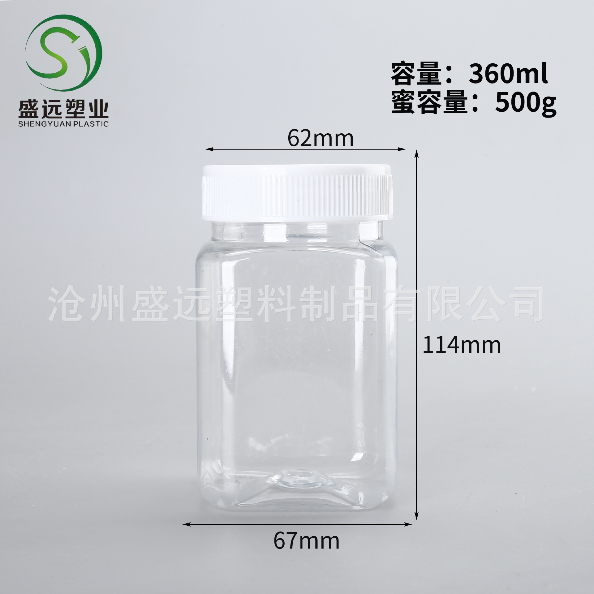 Производитель 1 кг медовая пластиковая банка pet прозрачная запечатанная банка закуски ореховая упаковка банка 360ml квадратная пластиковая бутылка