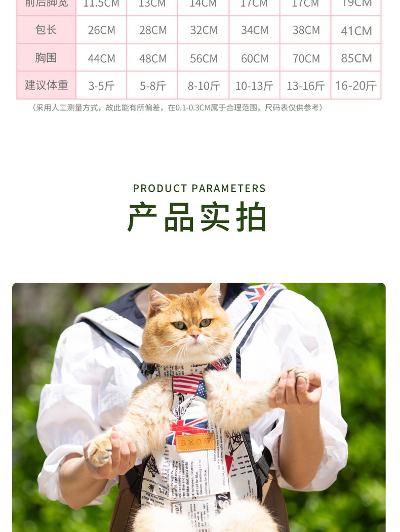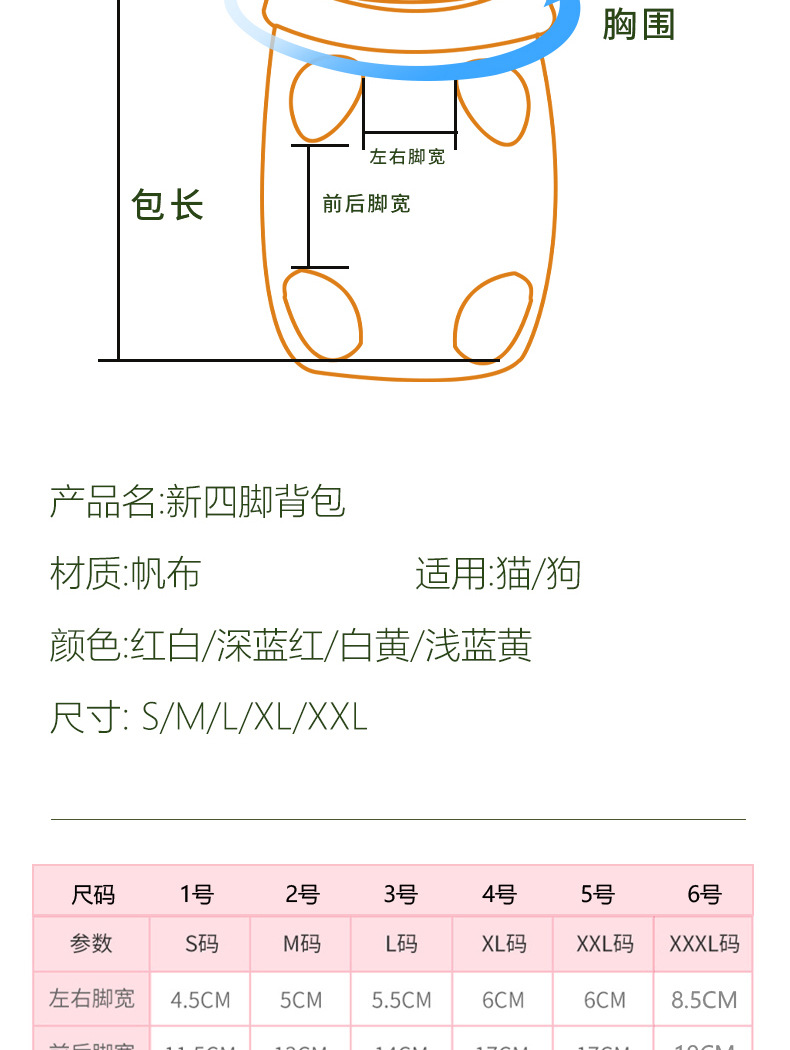 Размер S [ 1.5-3kg] рекомендуемая длина спины около 26 см.; Размер М [ 2.5-4kg] рекомендуемая длина спины составляет около 28 см.; Размер L [ 4-5kg] рекомендуемая длина спины составляет около 32 см.; Размер XL [ 5-6.5kg] рекомендуемая длина спины составляет около 35 см.; Размер XXL [ 6.5-8kg] рекомендуемая длина спины около 38 см.; Размер XXXL [ 8-10kg] рекомендуемая длина спины составляет около 42 см.