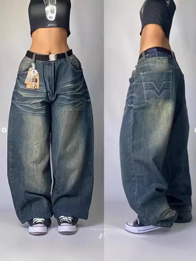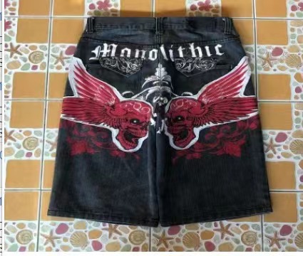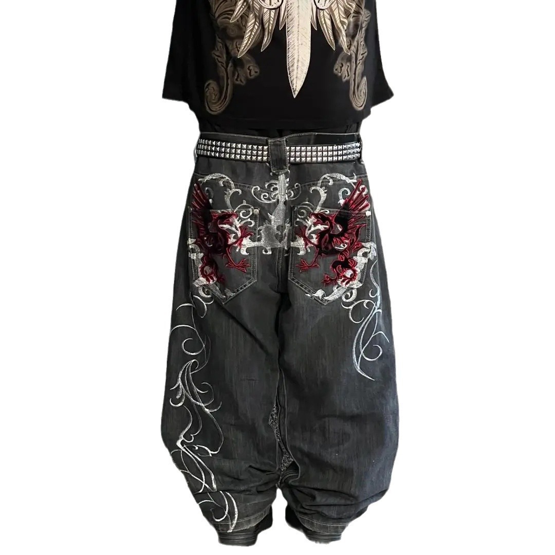 Трансграничные европейские и американские темно-готические джинсы с принтом мужской весной и летом