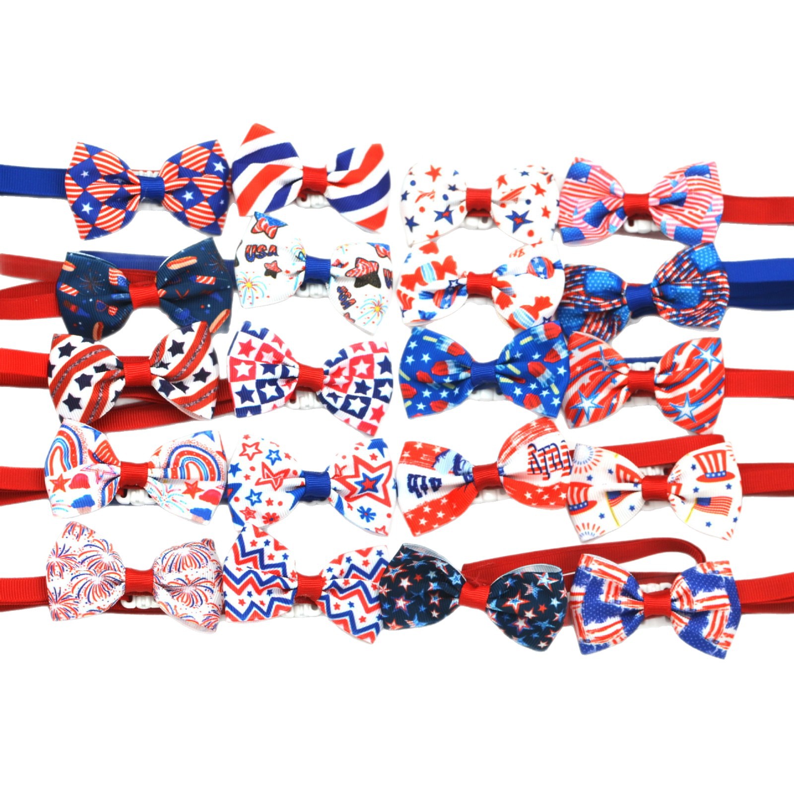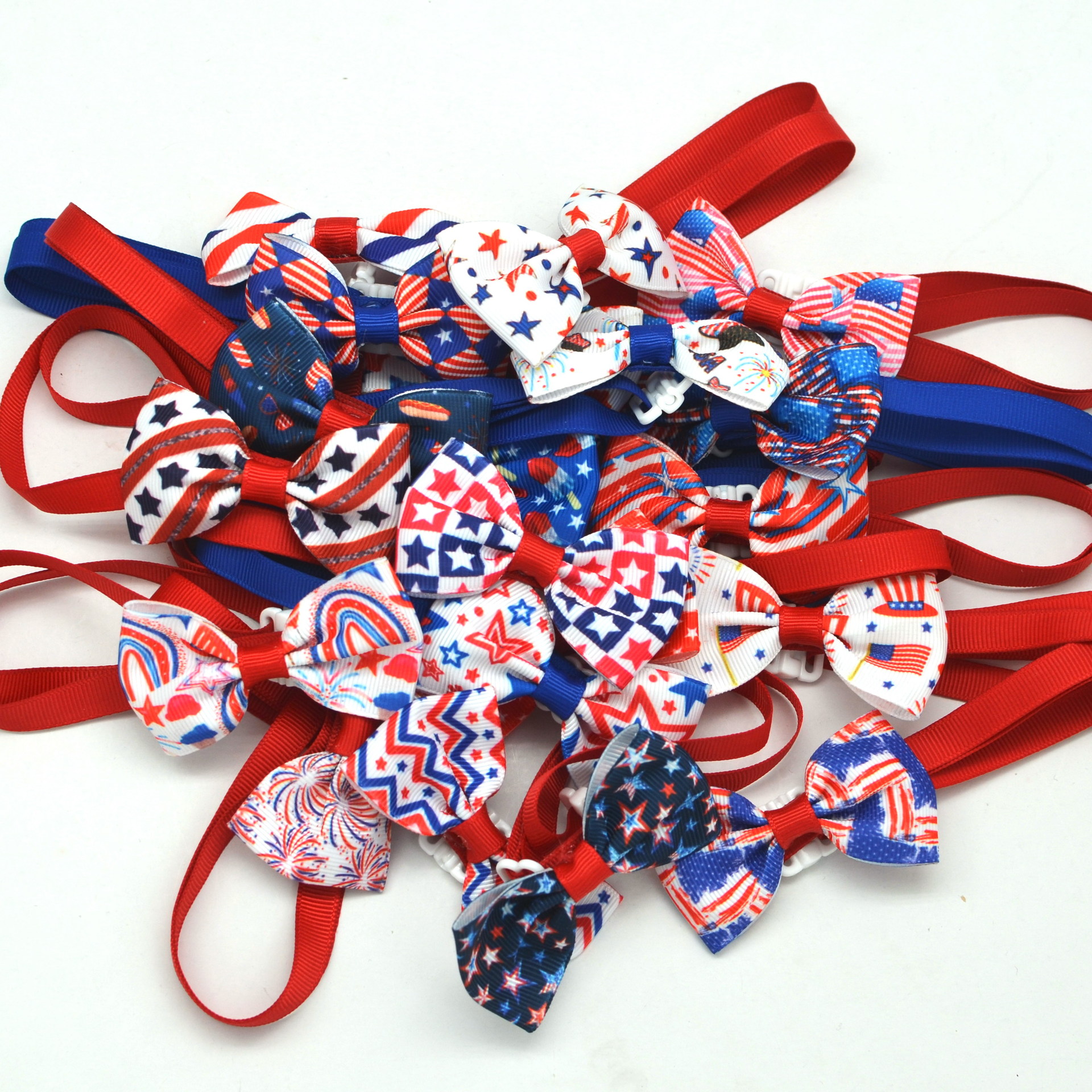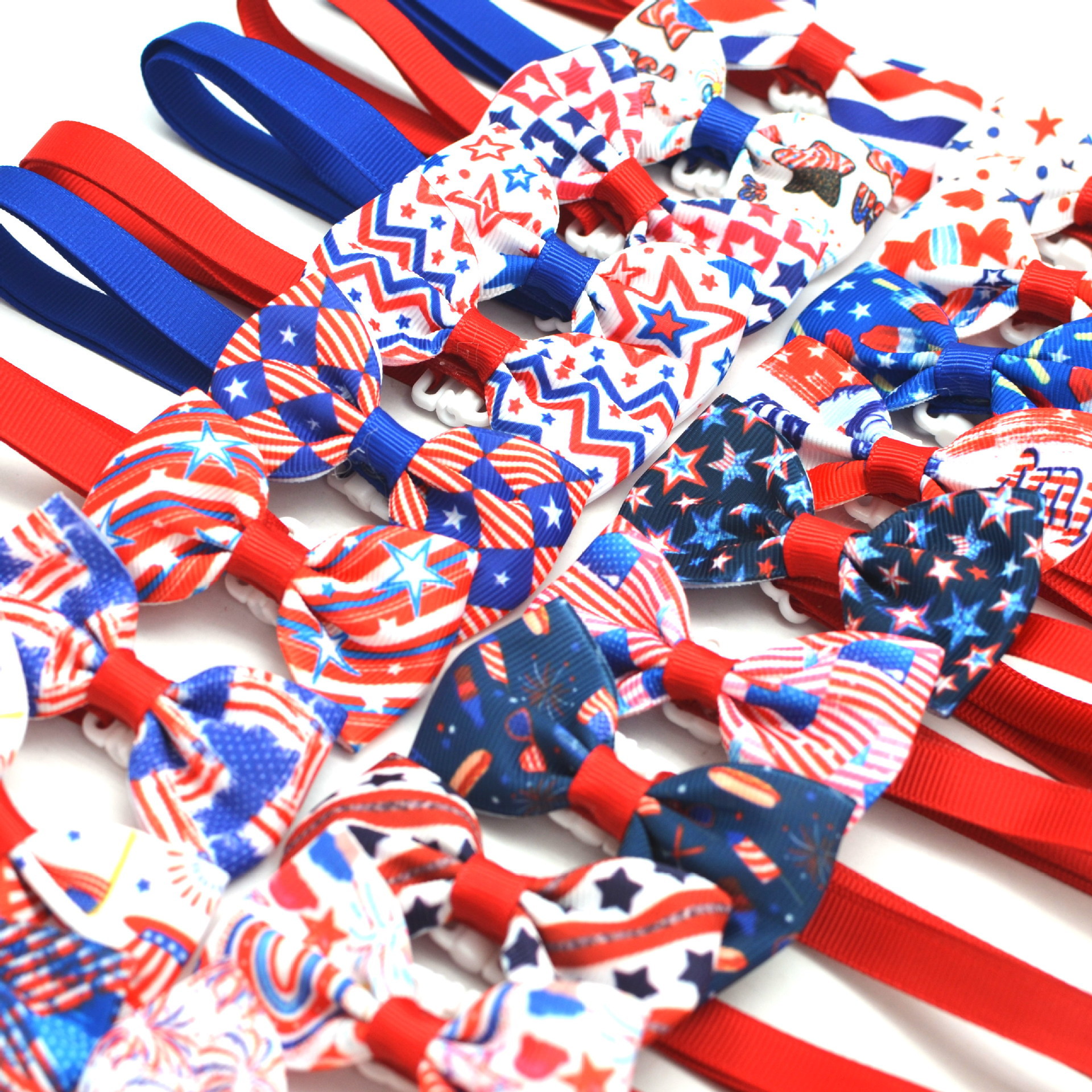 Трансграничные горячие продажи День независимости домашних животных бант собаки кошки галстук-бабочка красный синий белый галстук-бабочка для домашних животных оптовая продажа