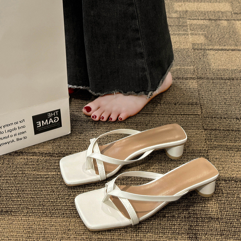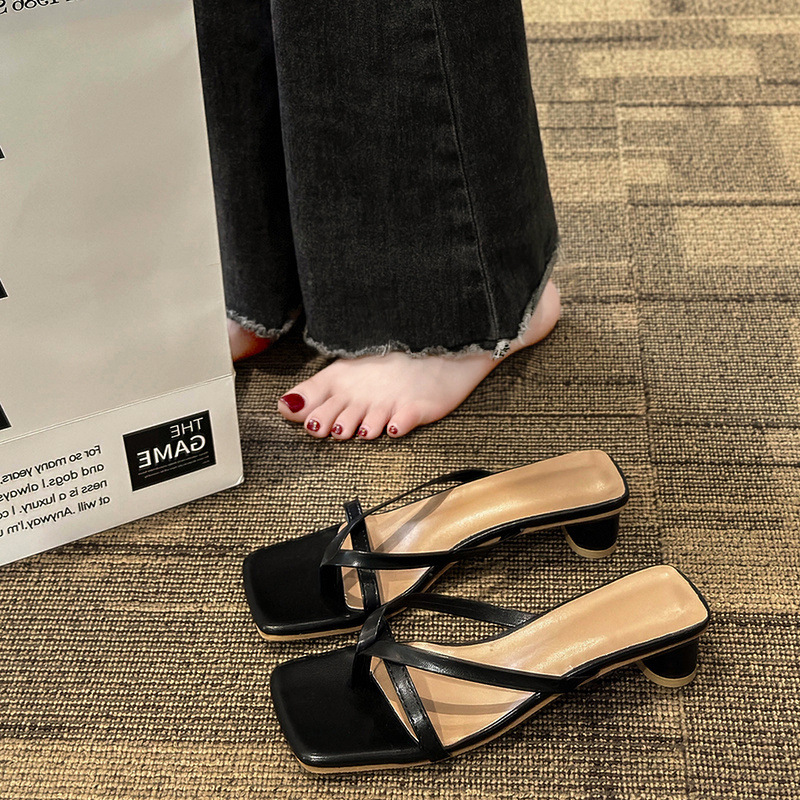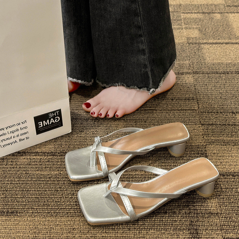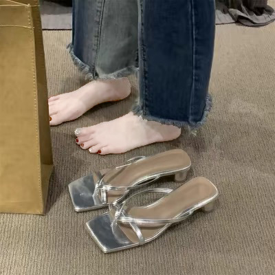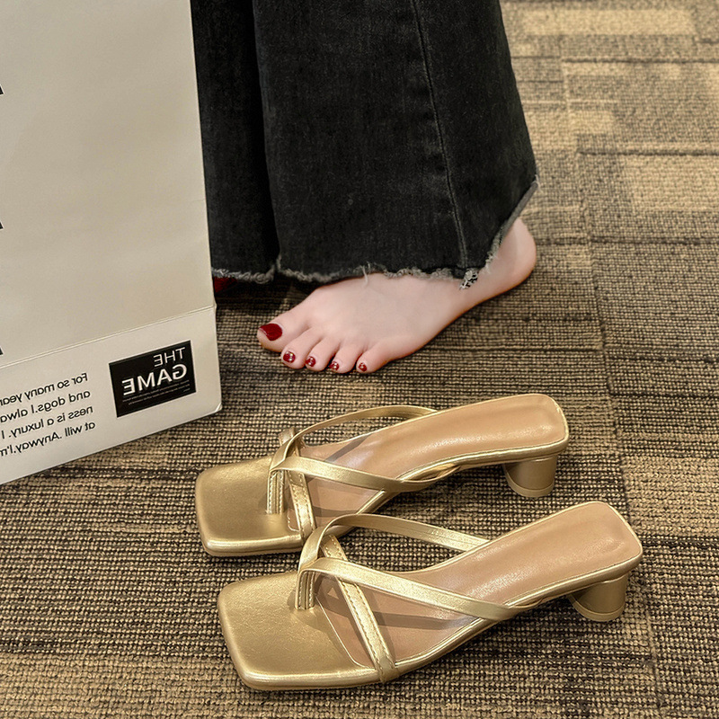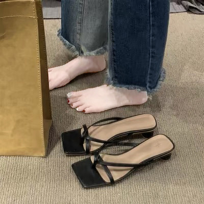 Толстые шлепанцы на каблуках женские туфли на улице 2024 новые корейские летние сандалии