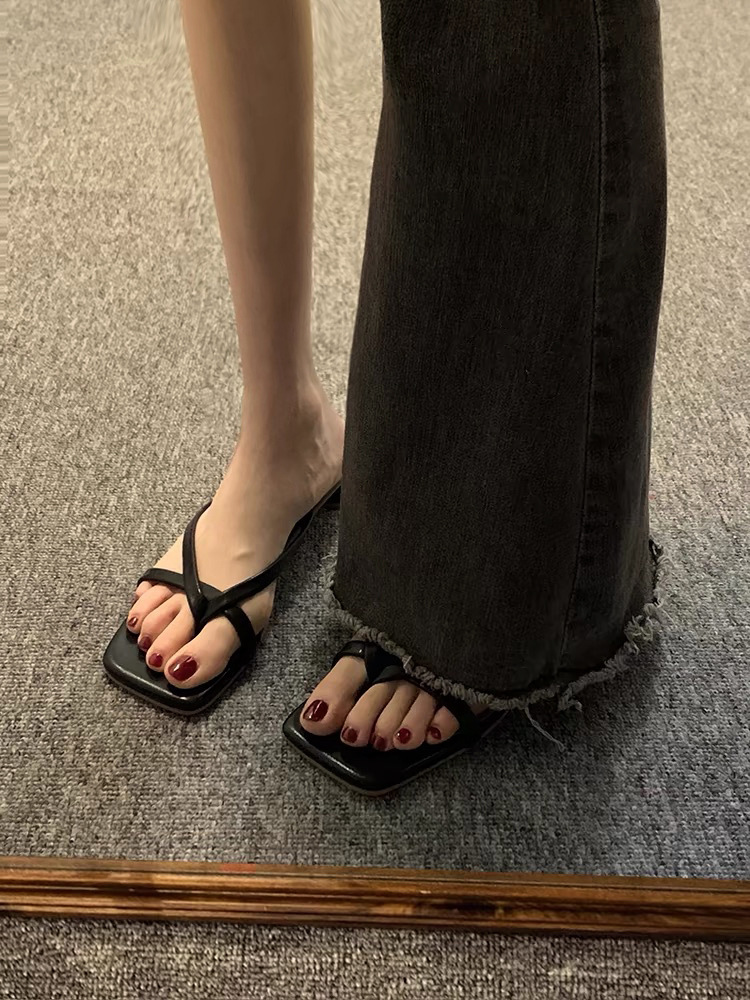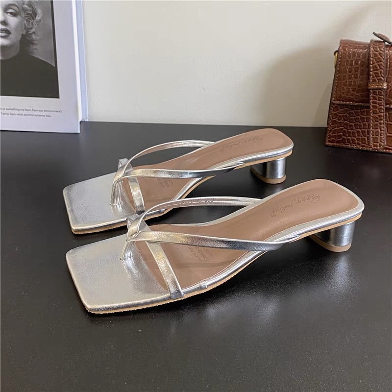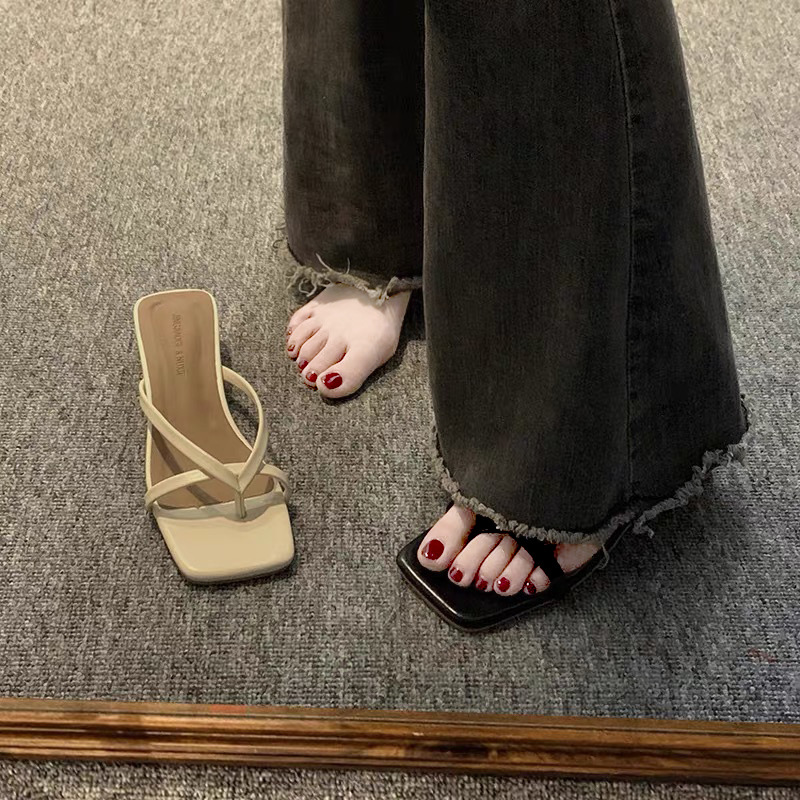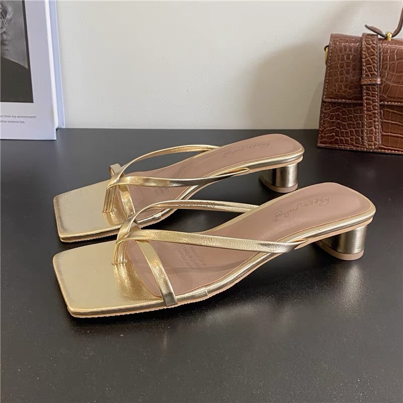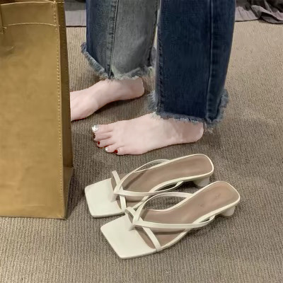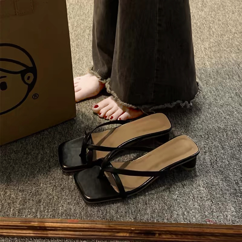 Толстые шлепанцы на каблуках женские туфли на улице 2024 новые корейские летние сандалии