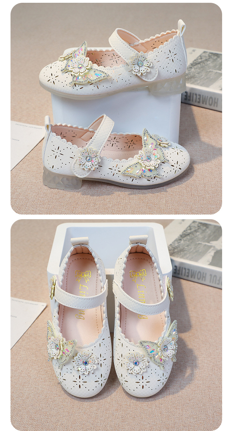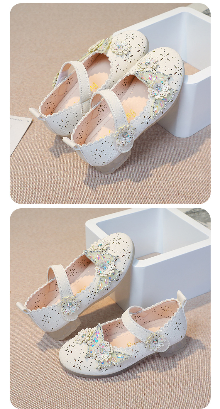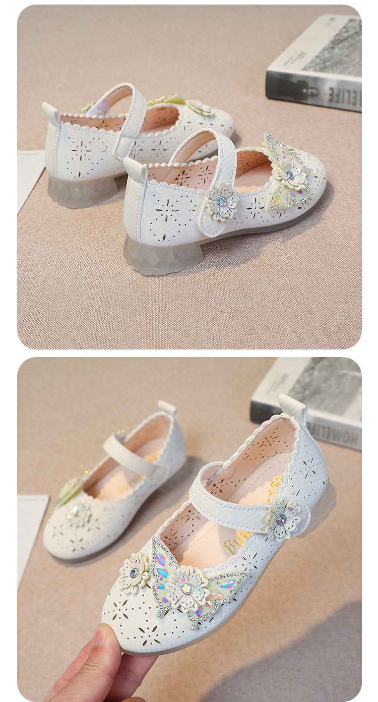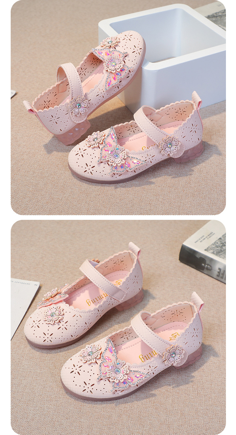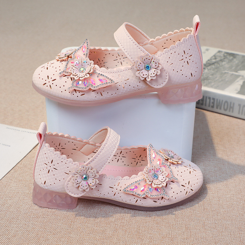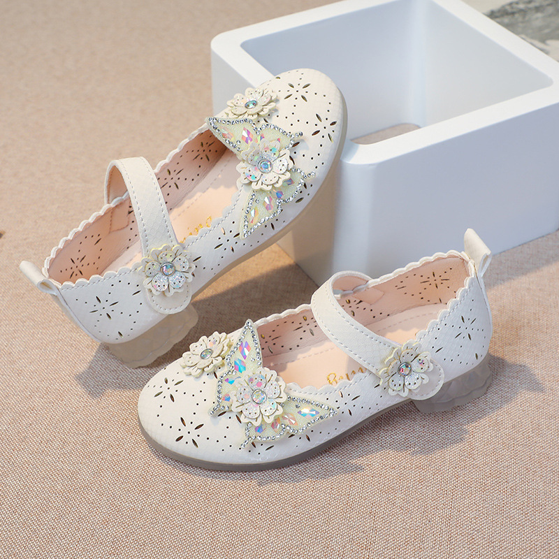 Девушки весной и осенью дикие кожаные туфли на мягком подошве полые летние кроссовки 2024 новые детские детские кроссовки принцессы на каблуках