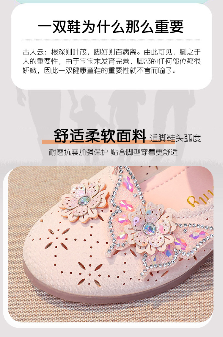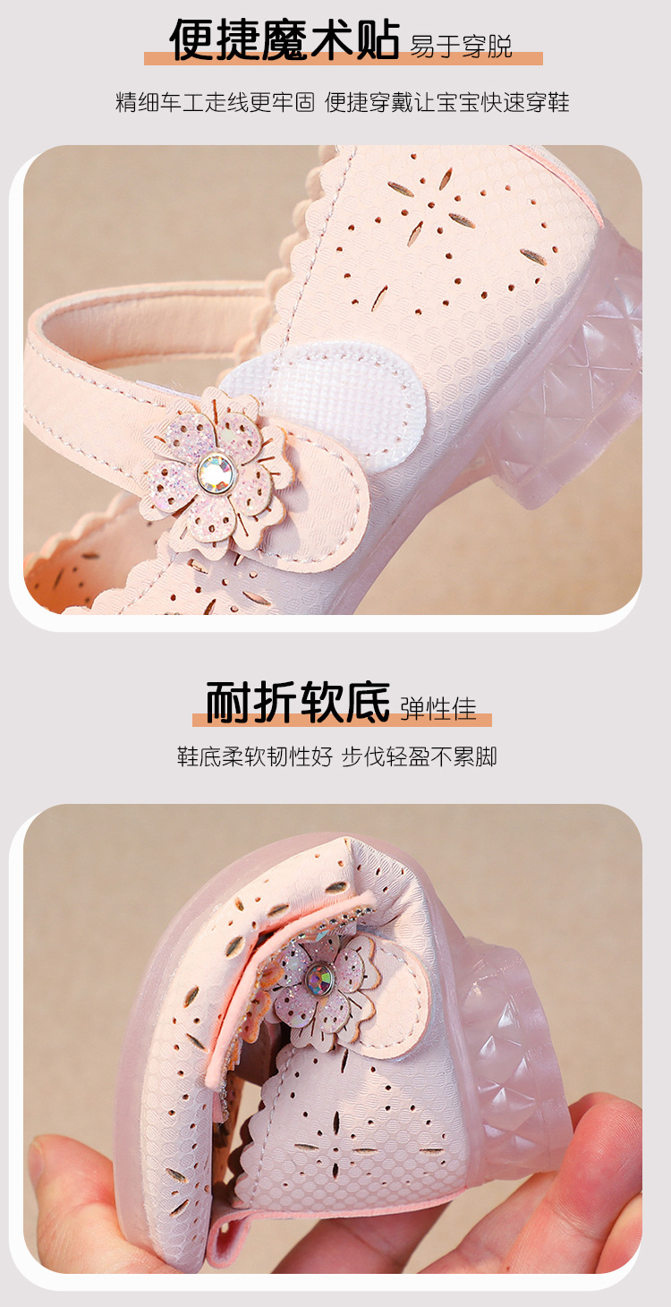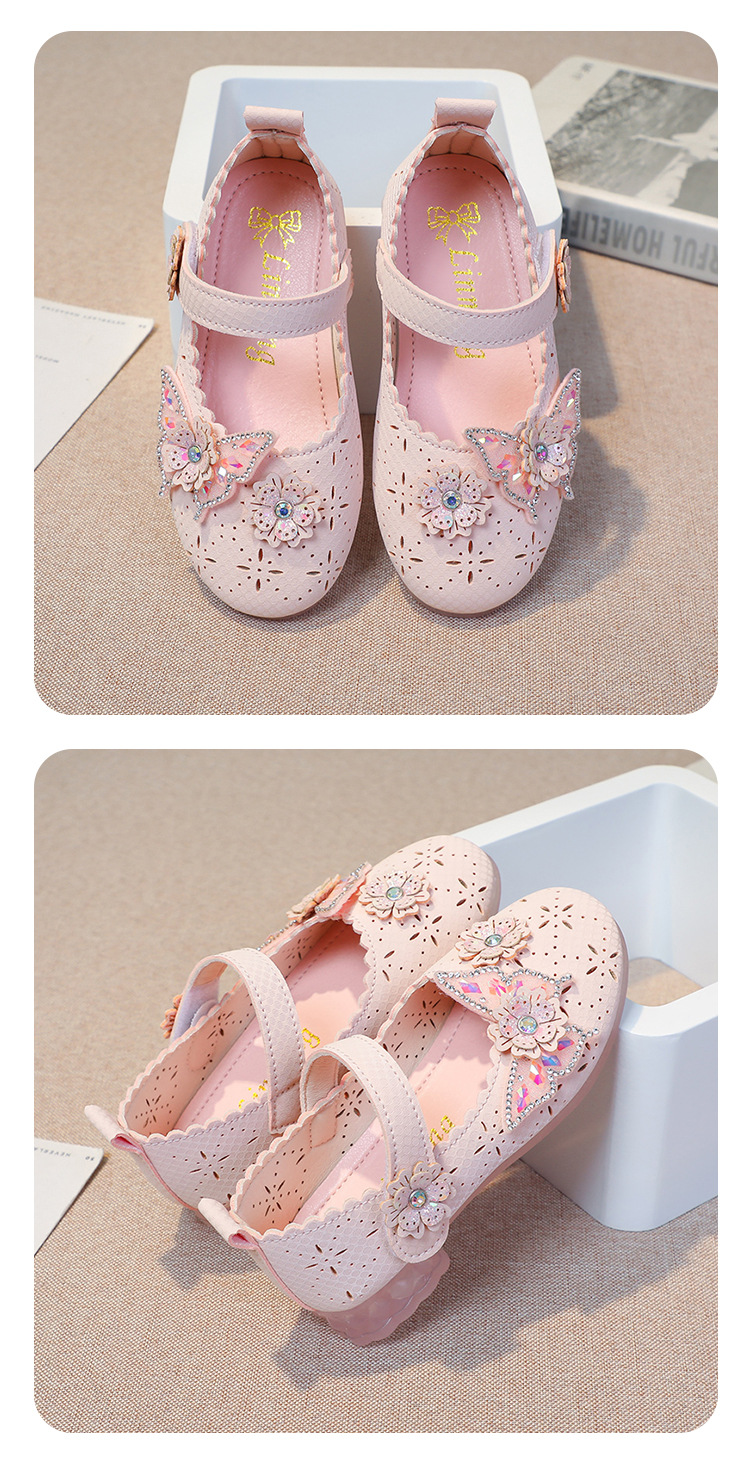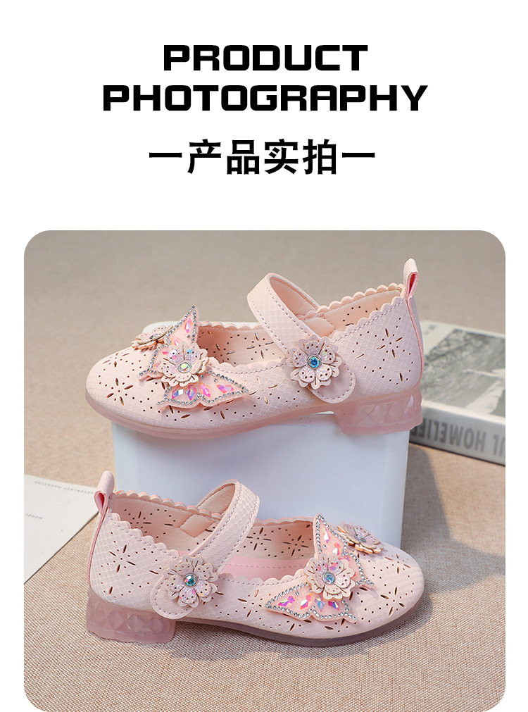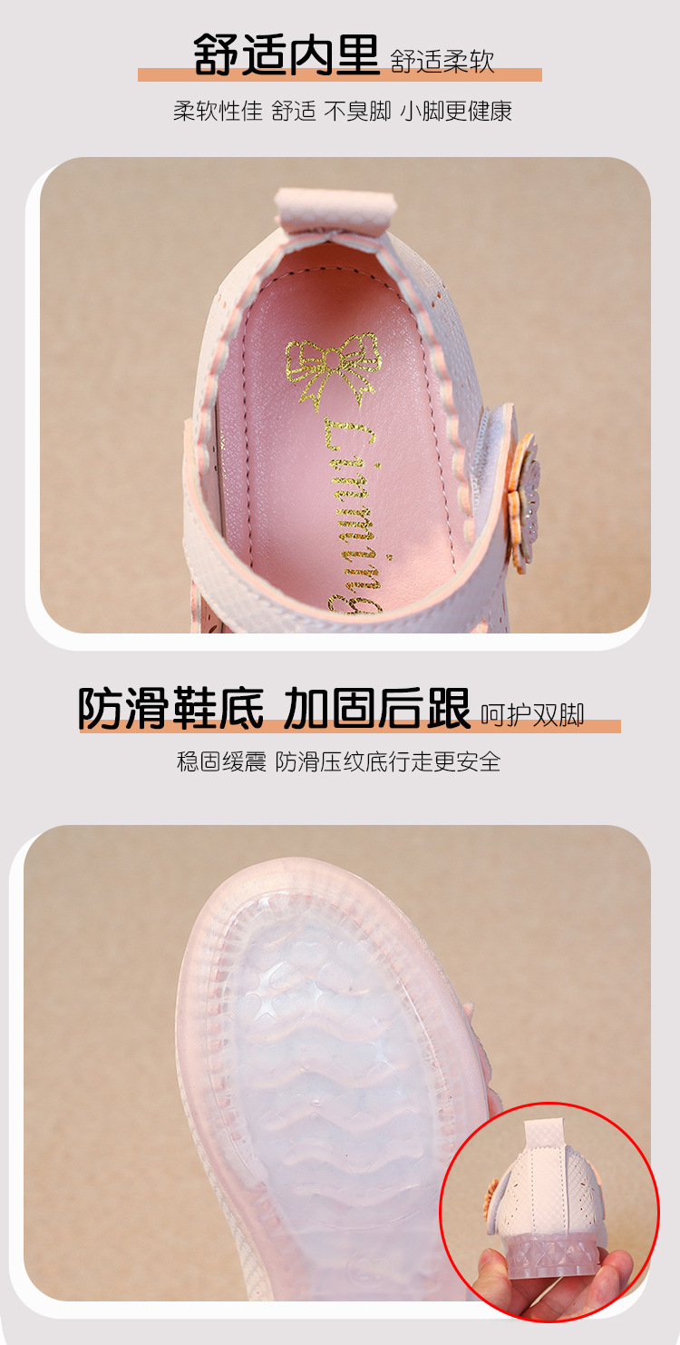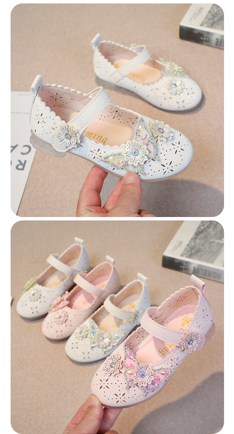 Девушки весной и осенью дикие кожаные туфли на мягком подошве полые летние кроссовки 2024 новые детские детские кроссовки принцессы на каблуках