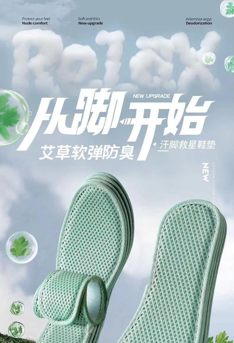 Мужские влагопоглощающие и антибактериальные стельки, дышащие и мягкие женские сабо, летние антибактериальные стельки, спортивные стельки с полынью