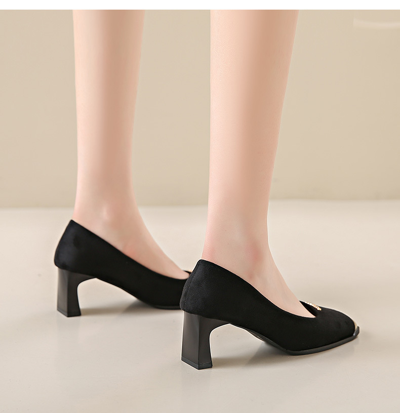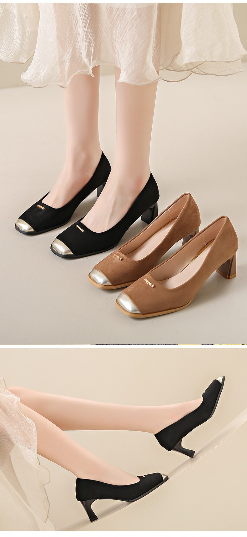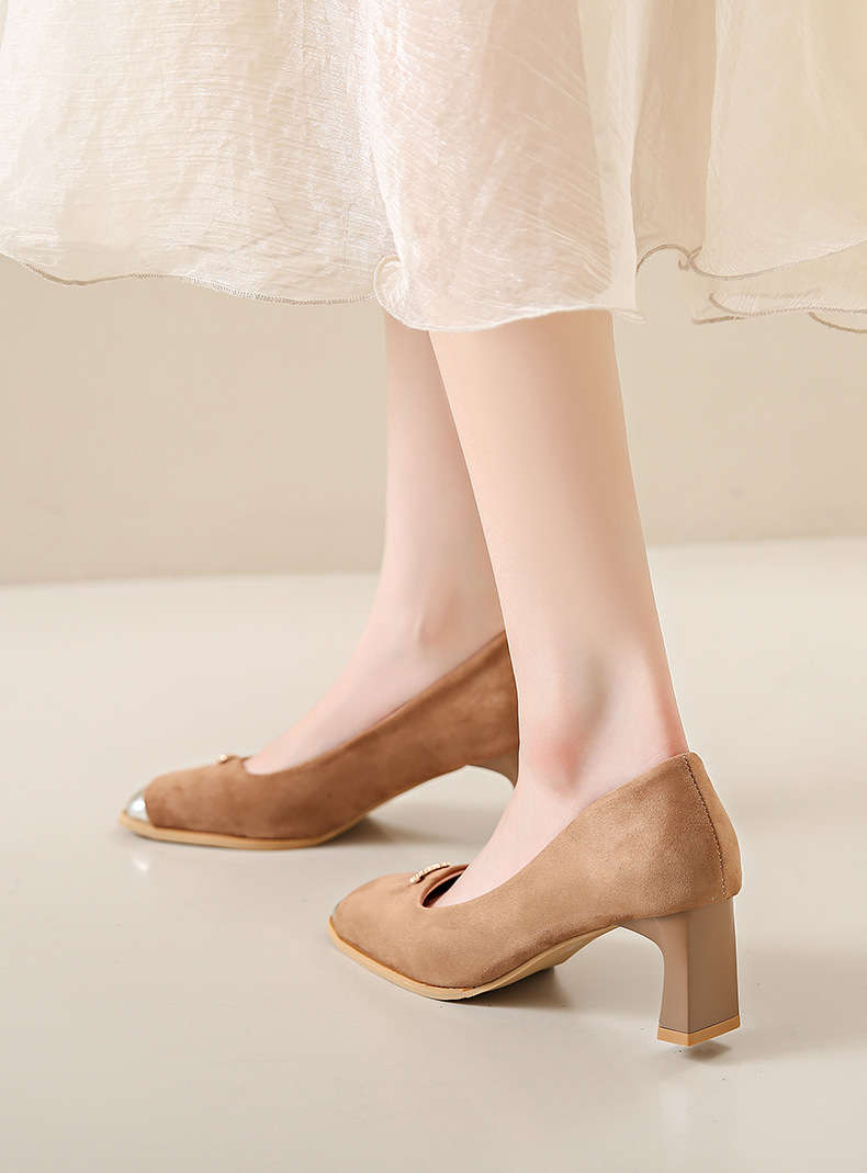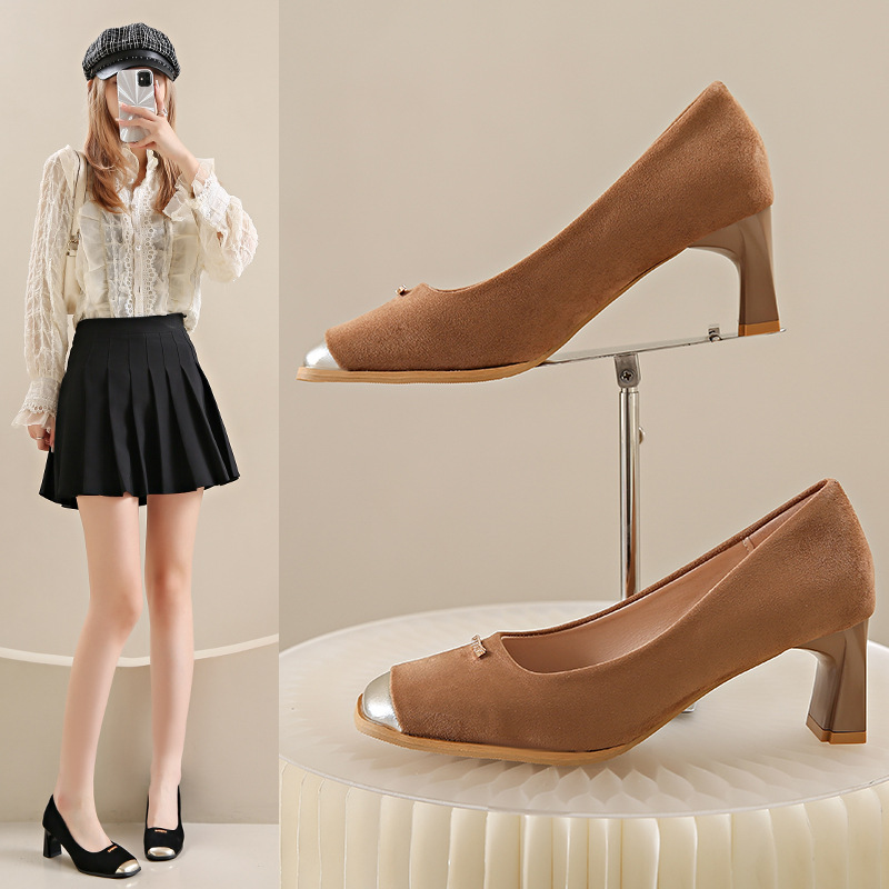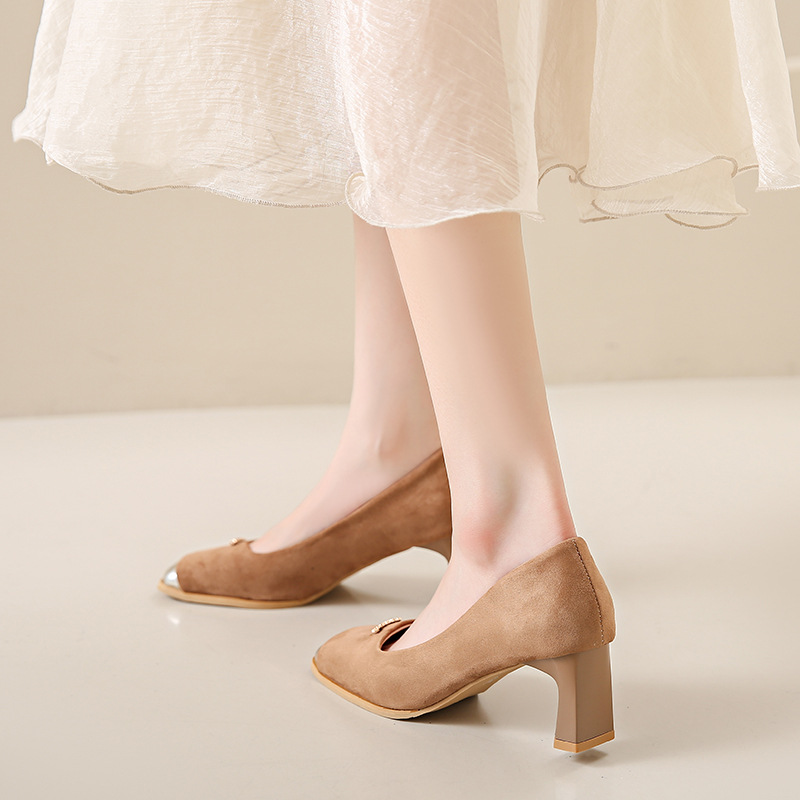 Туфли на высоком каблуке женский 2024 летний новый замши металлическая квадратная голова корейская версия темпераментной профессиональной туфли на каблуке