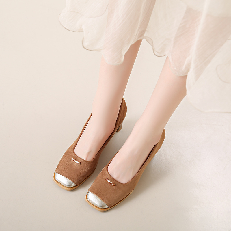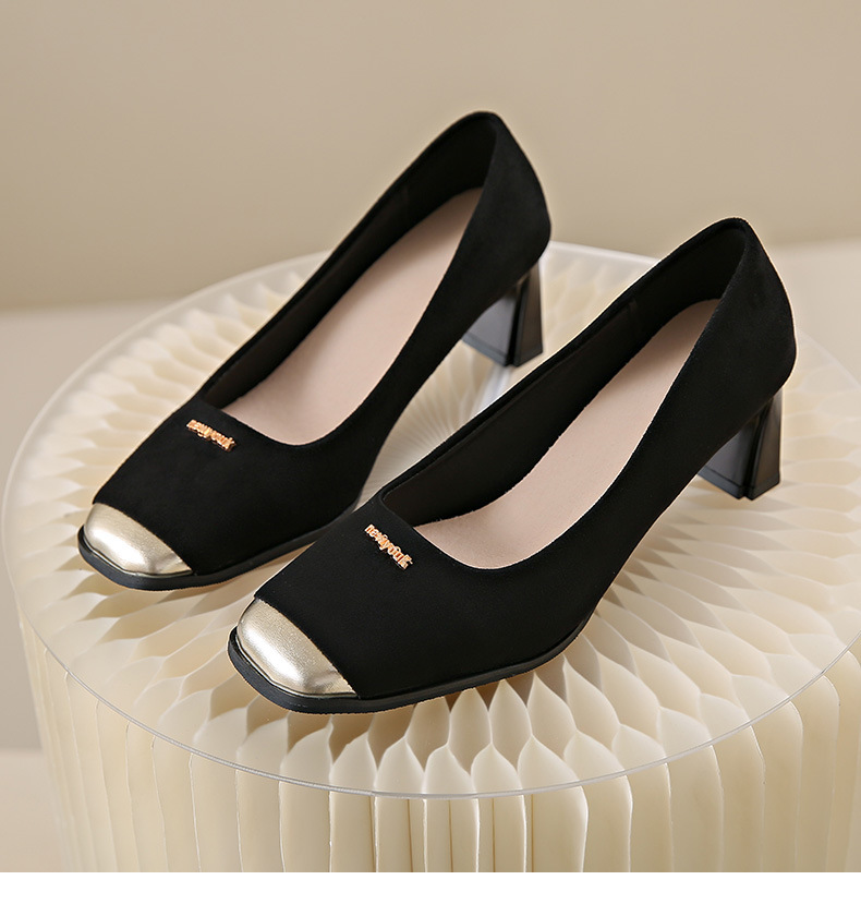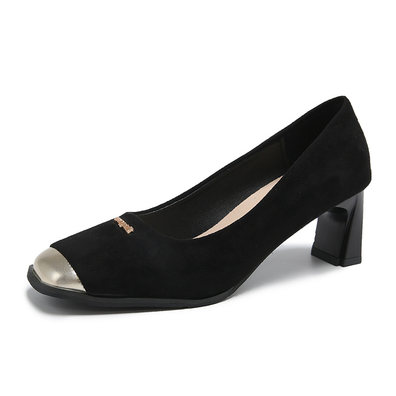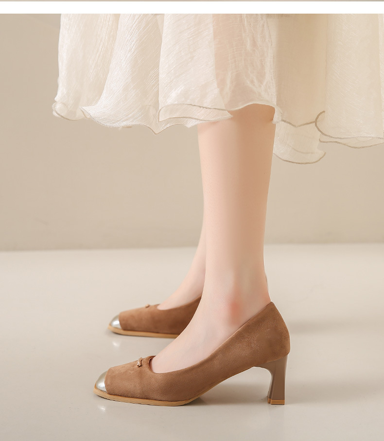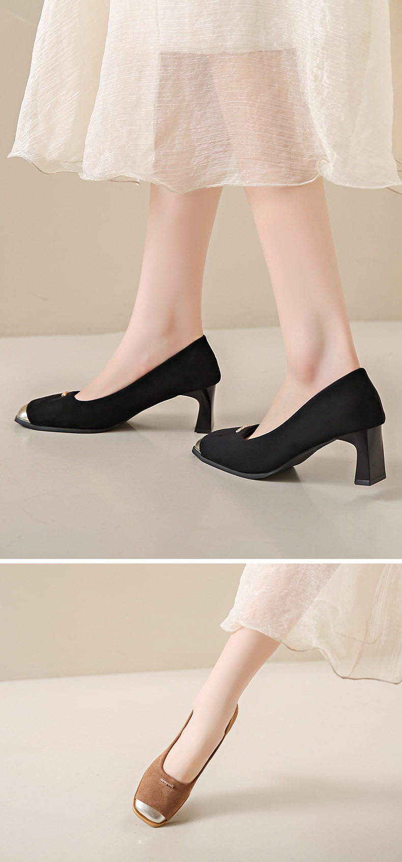 Туфли на высоком каблуке женский 2024 летний новый замши металлическая квадратная голова корейская версия темпераментной профессиональной туфли на каблуке