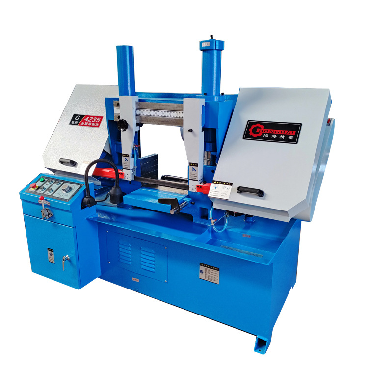 GB系列金属带锯床是一种以金属锯条作为切削工具,并用于切割金属材料的锯切设备,主要用于黑色金属的方料。圆料及各种型材的切割,亦可用于切割有色金属及非金属材料。由于带锯切口窄,因此能耗小,材料浪费少。是一种具有节能,节材效果的切割设备。双立柱带锯床主传动采用蜗轮箱变速,进给采用液压传动,工件夹紧采用手动和液压混合式夹紧,具有结构紧凑,操作维修方便等特点。