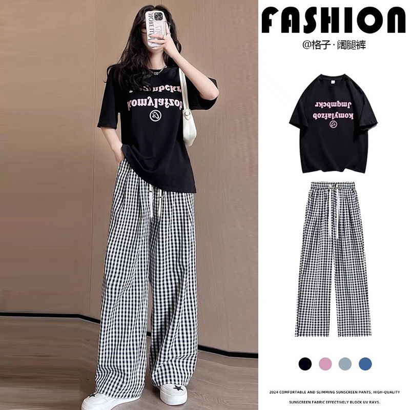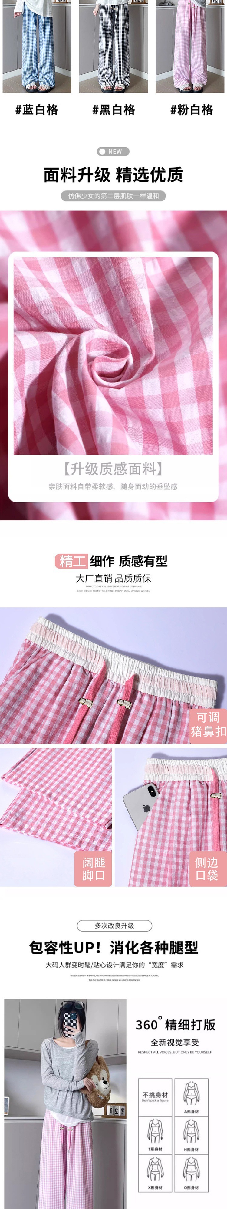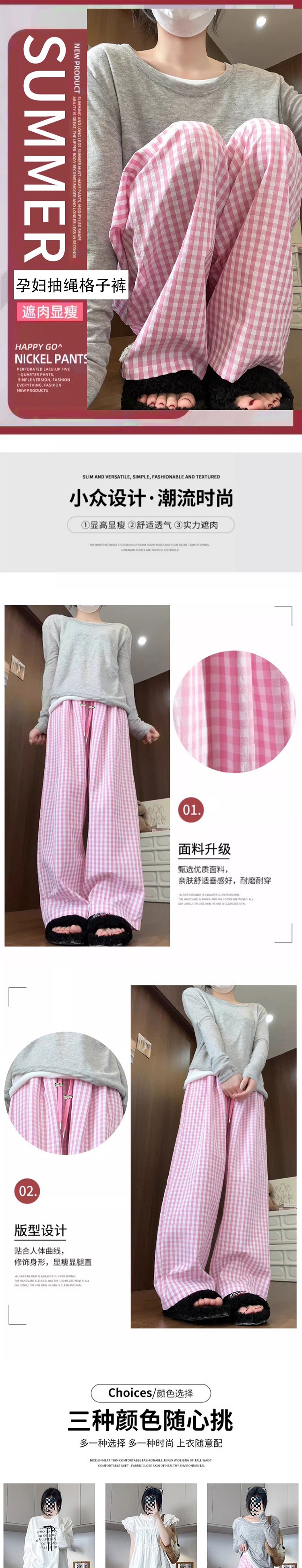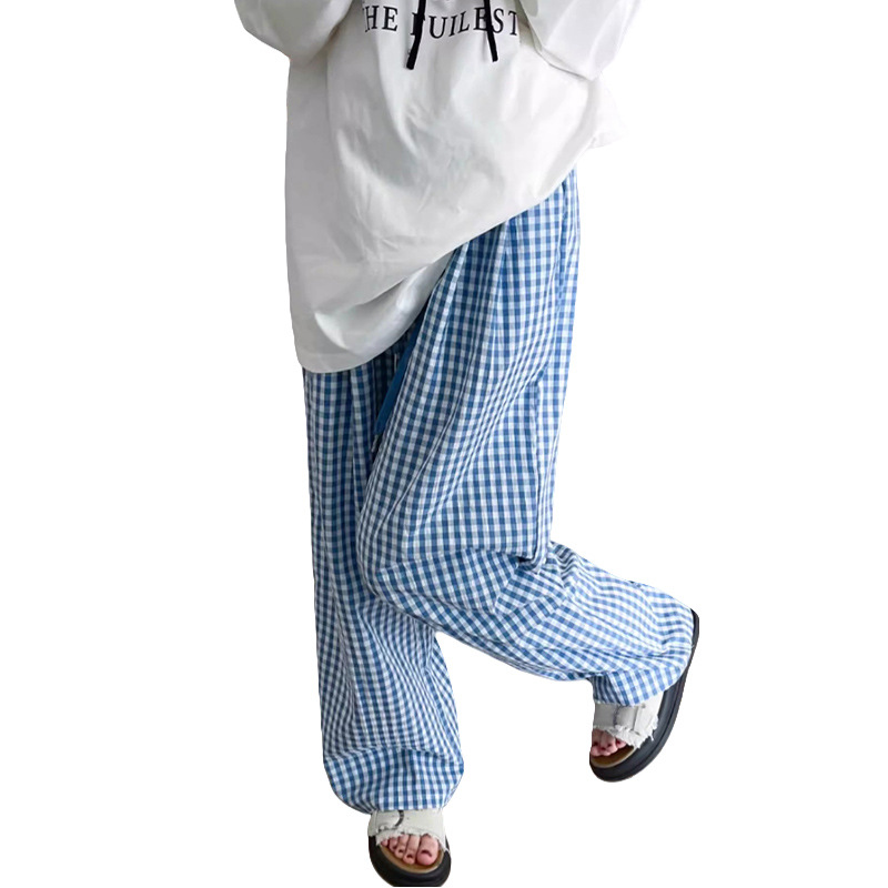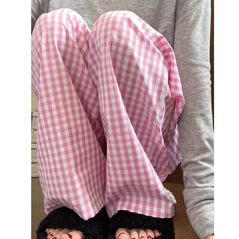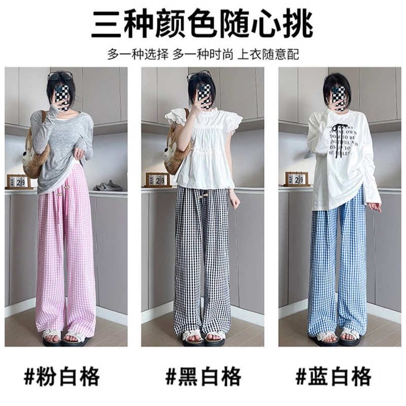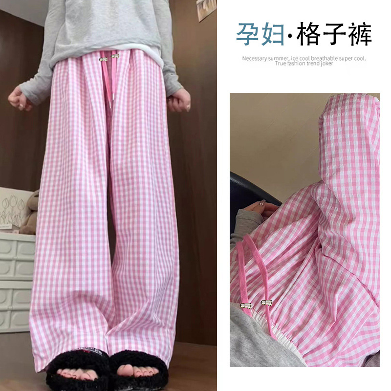 Пятно для беременных повседневные 2024 пузырьковая пряжа в клетку брюки летние изогнутые из ледяного шелка Ямамото широкие ноги прямые брюки