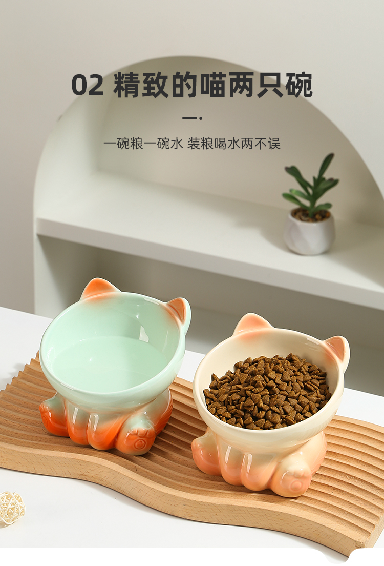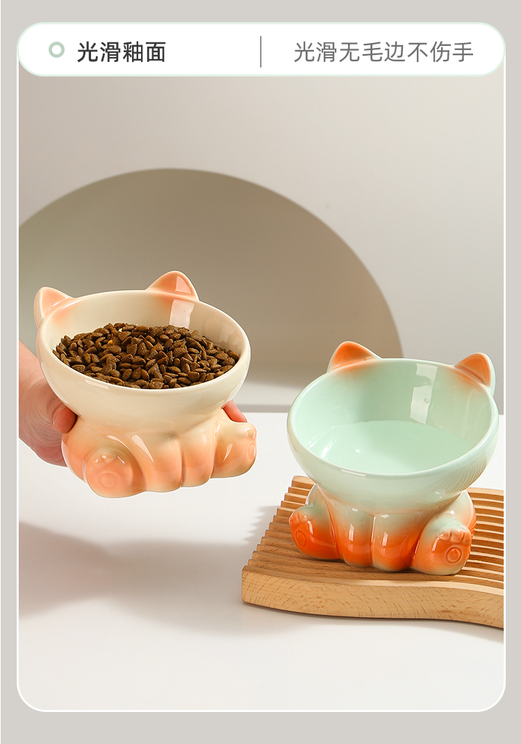 可爱渐变猫碗陶瓷猫食盆猫咪碗斜口高脚水碗防黑下巴猫食盆狗之满