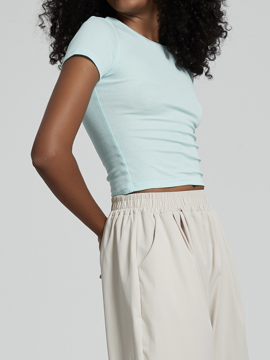 Трансграничная женская одежда оптом в европейском и американском стиле обтягивая базовая футболка летняя дикая стройная короткая топ Kardashian та же модель t