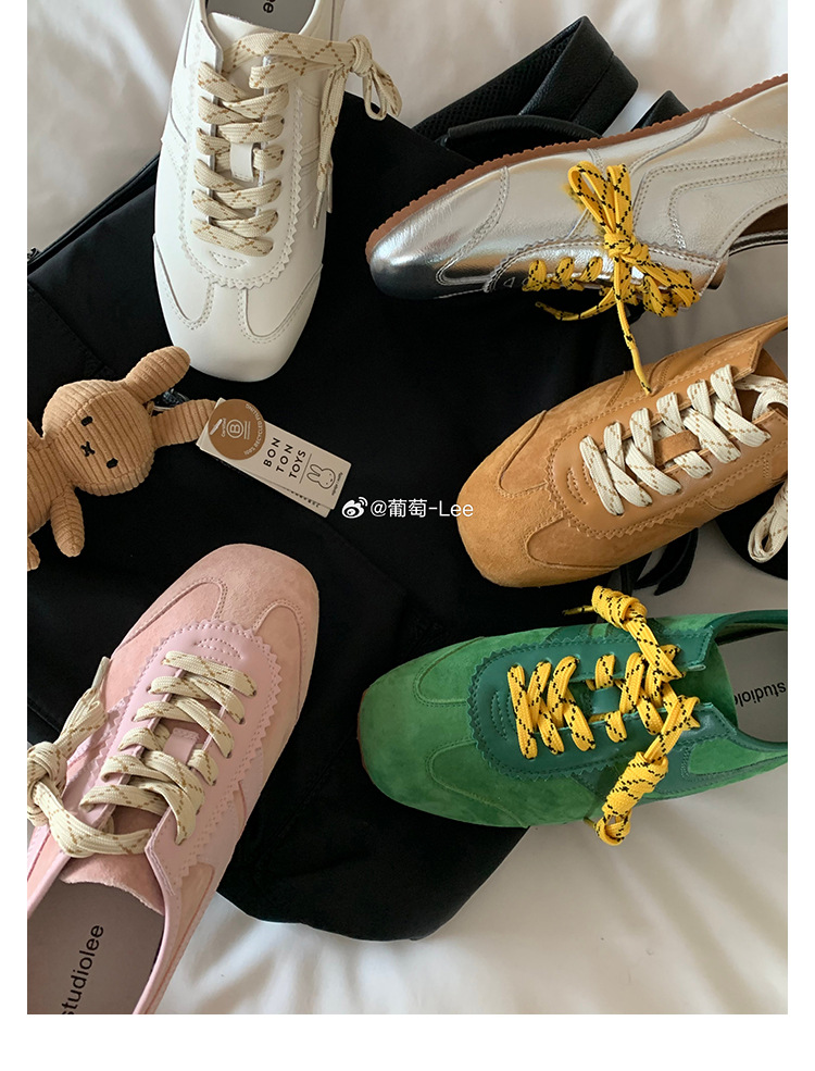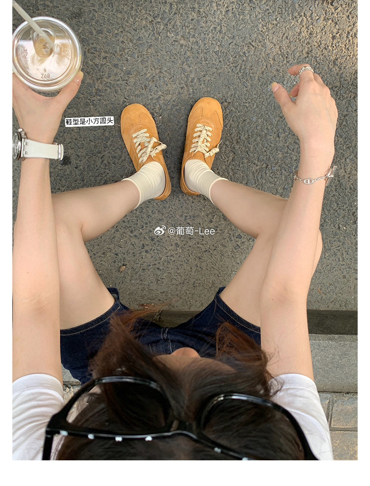 2025 новые уличные модные женские туфли с квадратным носком в ретро-стиле, универсальные для повседневной носки и тренировок, с контрастными шнурками