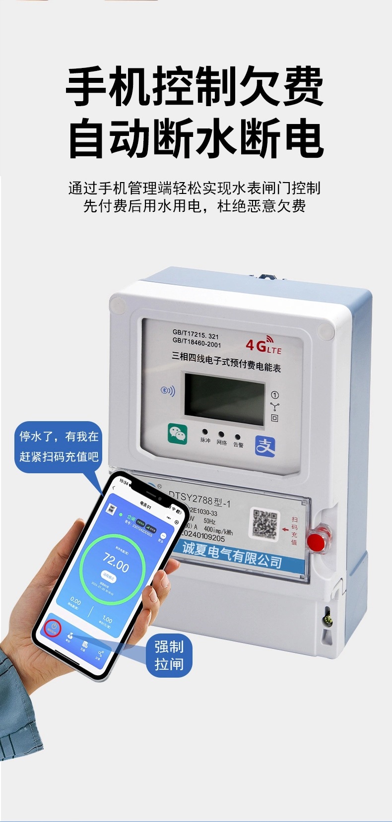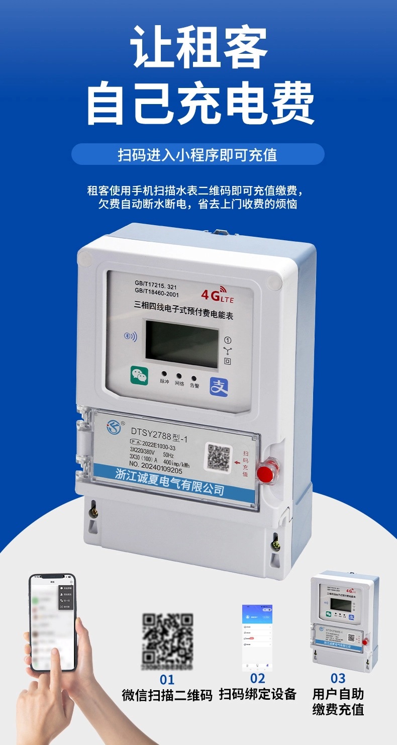 4G интеллектуальный трехфазный счетчик предоплаты беспроводной дистанционной направляющей счетчик бытовой аренды