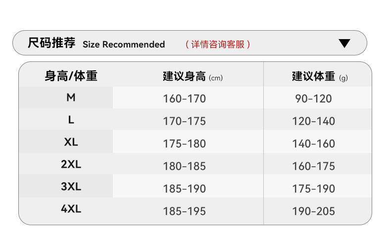 M; L; XL; 2XL; 3XL; 4XL
