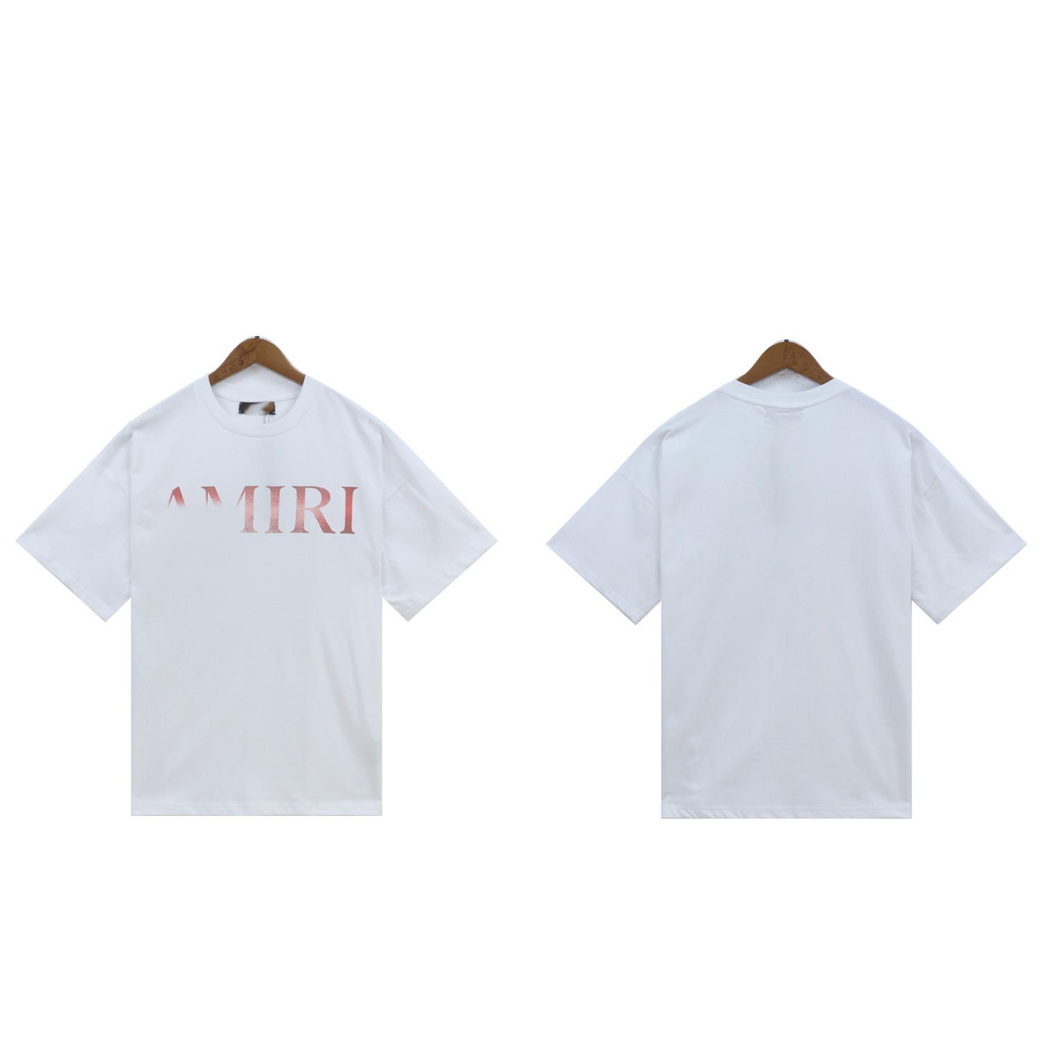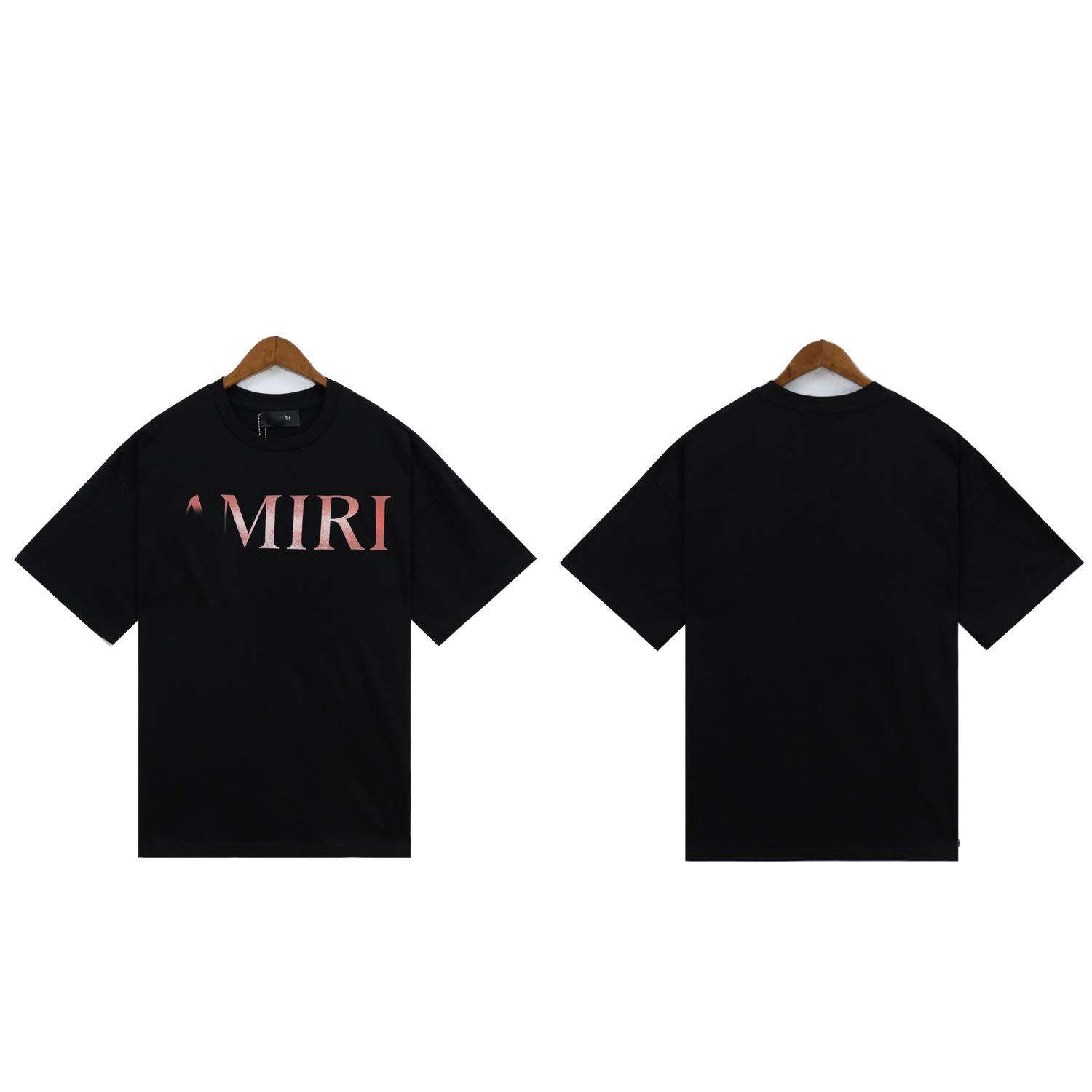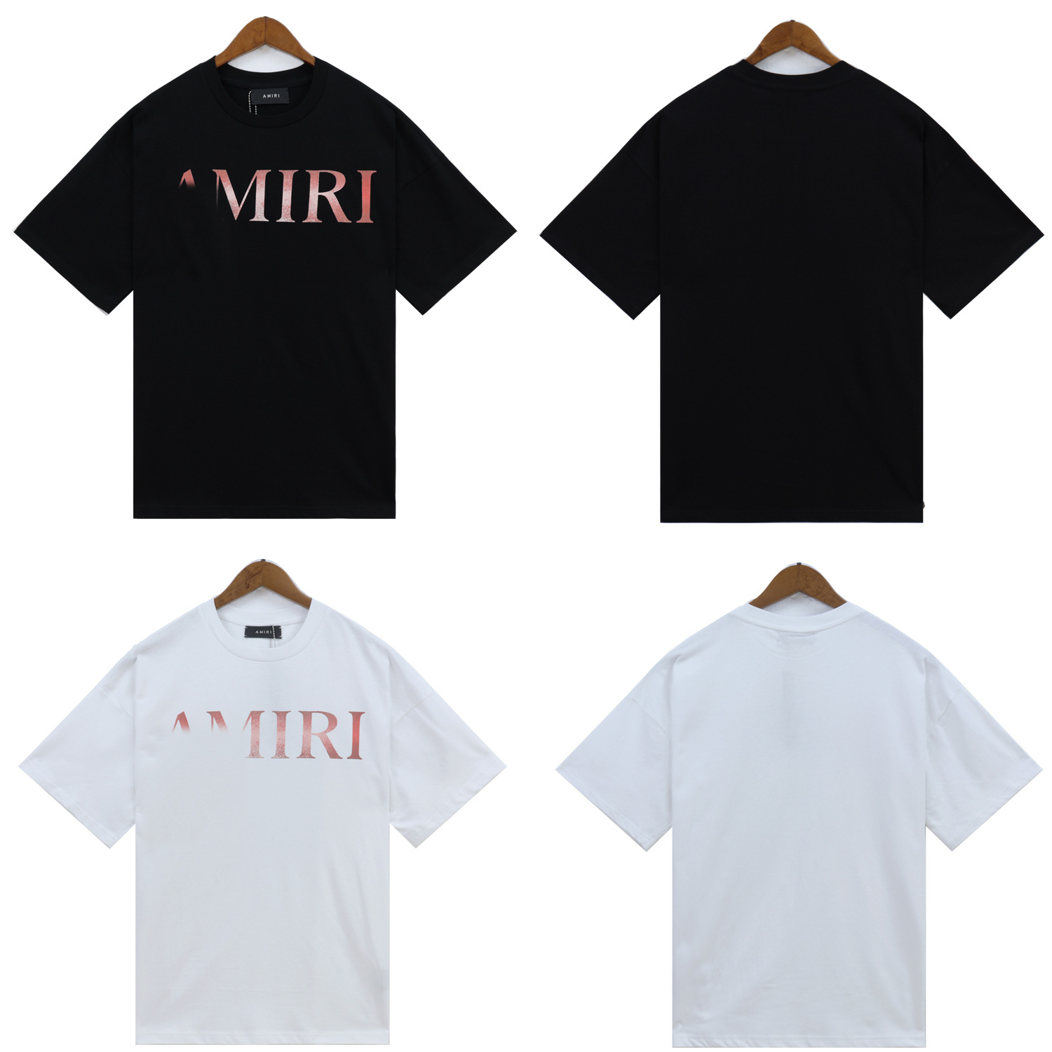 AMIRI весна-лето новые градиентные буквы с логотипом печатные хлопчатобумажные большие размеры для мужчин и женщин с короткими рукавами внешнеторговые футболки с половинными рукавами