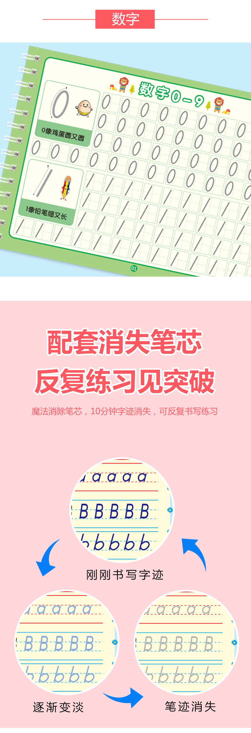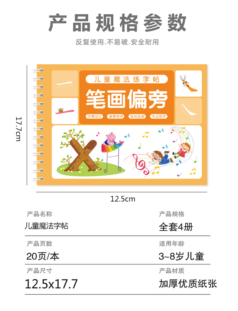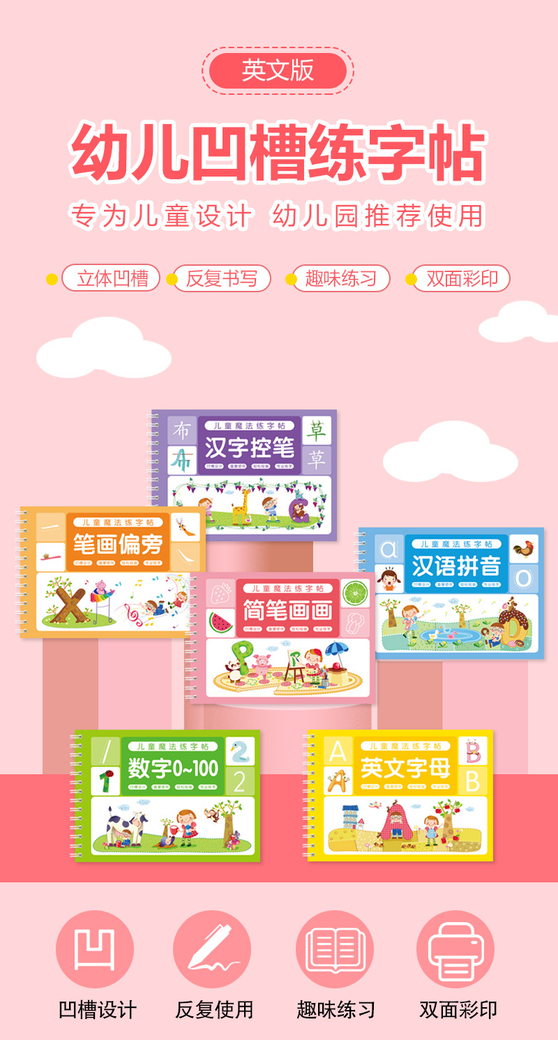 Книга для рисования с горизонтальной канавкой, номер 0-100; Книга для рисования с горизонтальными канавками, управление ручкой китайского иероглифа; Книга для рисования с горизонтальными канавками, английские буквы; Книга для рисования с горизонтальными канавками, китайский пиньинь; Книга для рисования с горизонтальными канавками и стороной для рисования ручкой; Книга для рисования с горизонтальными канавками, простое рисование; Затухающий стержень (5 стержней); Затухающий стержень (8 стержней); Затухающий стержень (10 стержней)