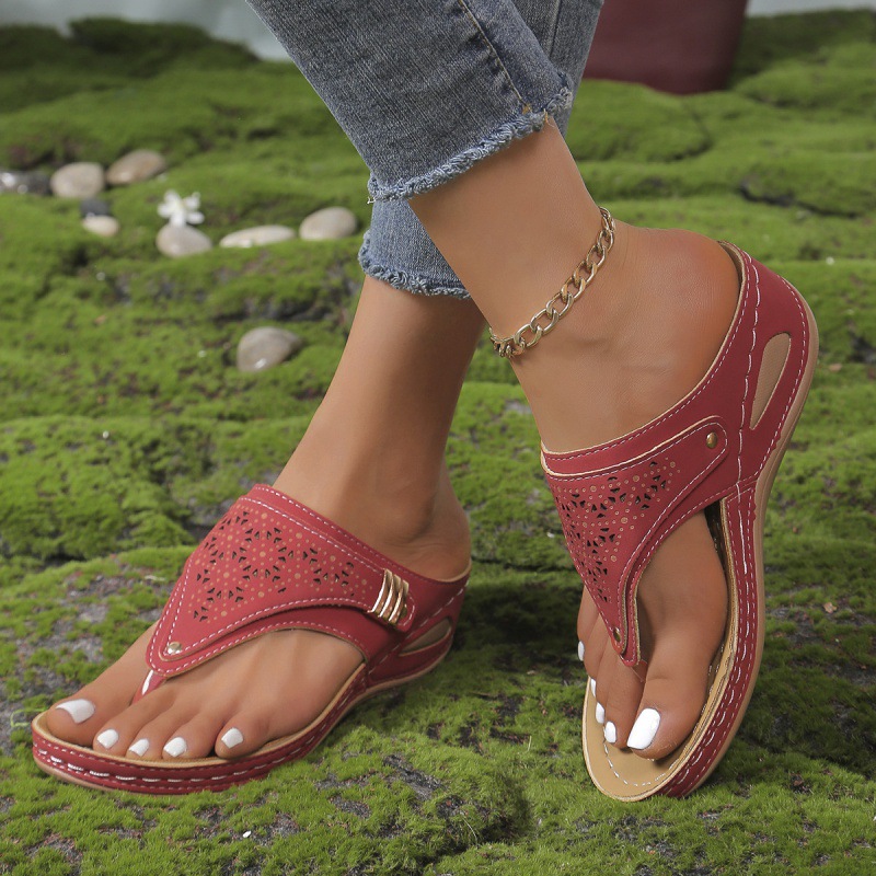 Щипы холодные тапочки женский 2024 летний новый европейский и американский внешняя торговля большой размер полые металлические толстые подошвы холодные тапочки женские оптом