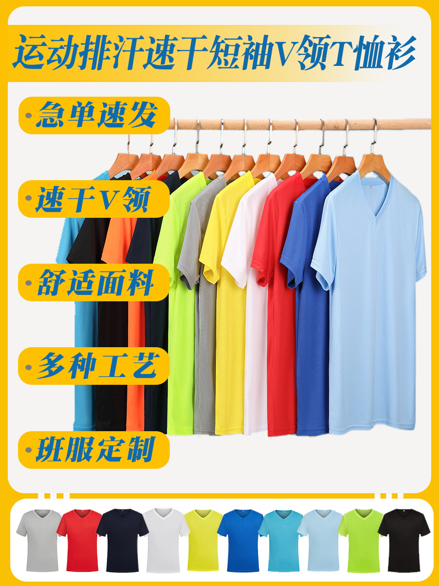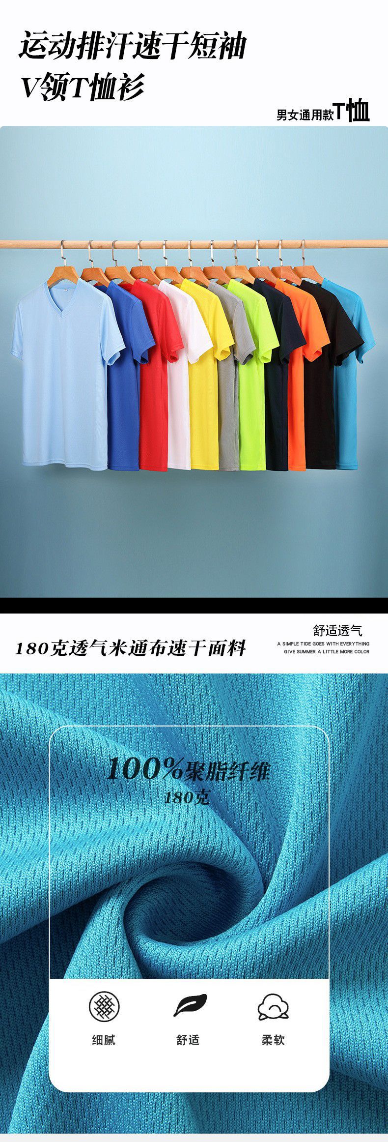 Короткий рукав V-образный спортивный гигроскопивный пот быстросохнущие футболки 180g пользовательская реклама групповая одежда с логотипом слово марафон