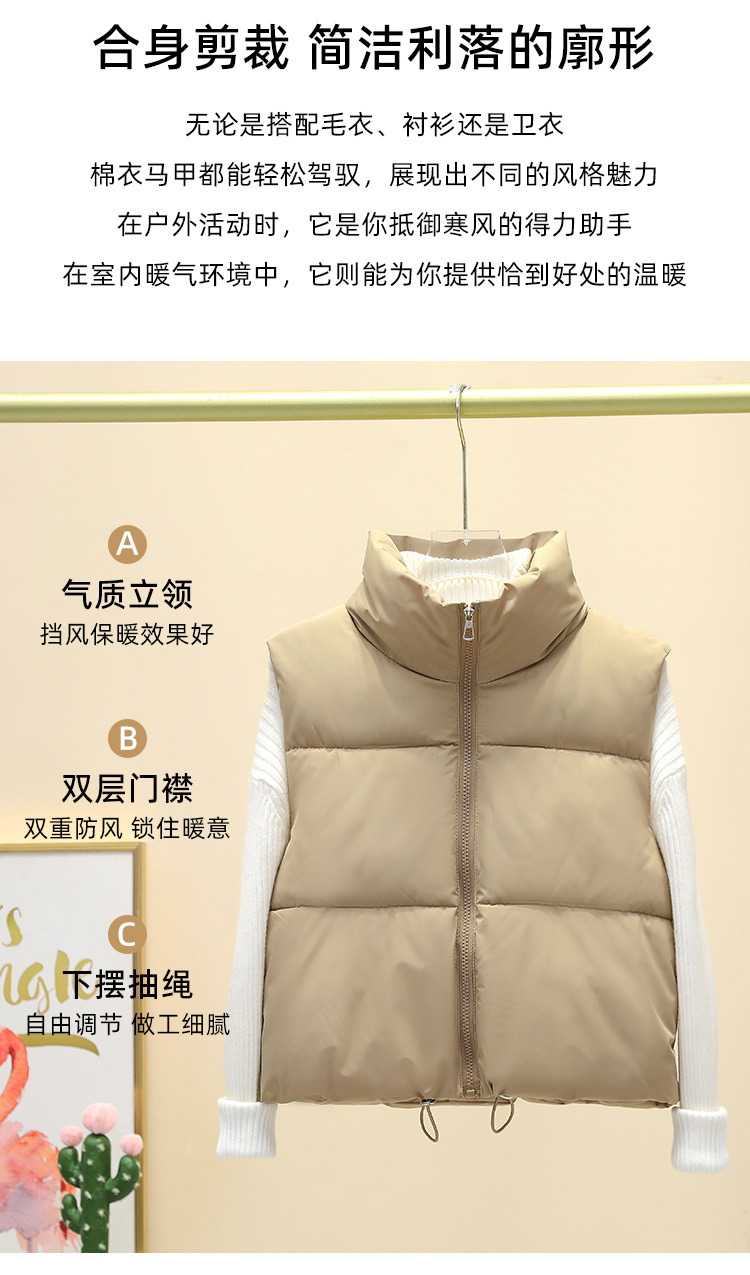 Жилет женский 2024 осень и зима новый простой дикий молния с молнией