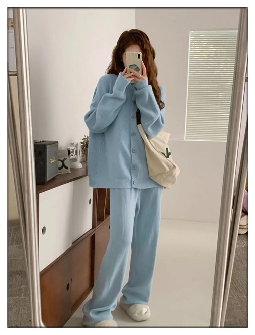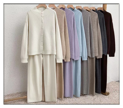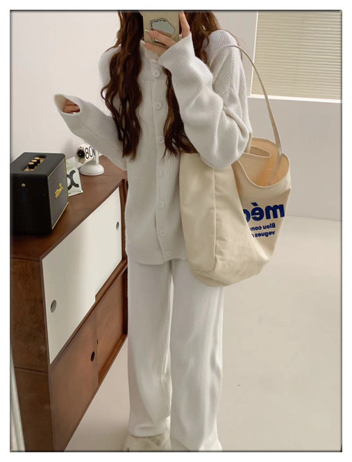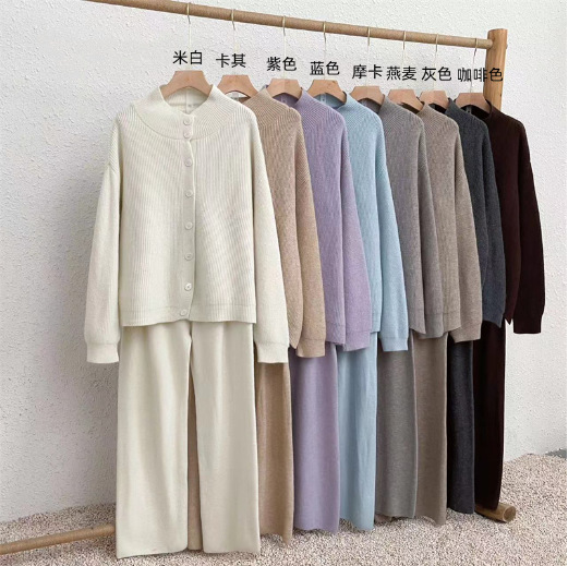 Стильный однобортный трикотажный набор с отворотом дамы осень-зима новый свитер кардиган куртка широкие брюки набор из двух частей