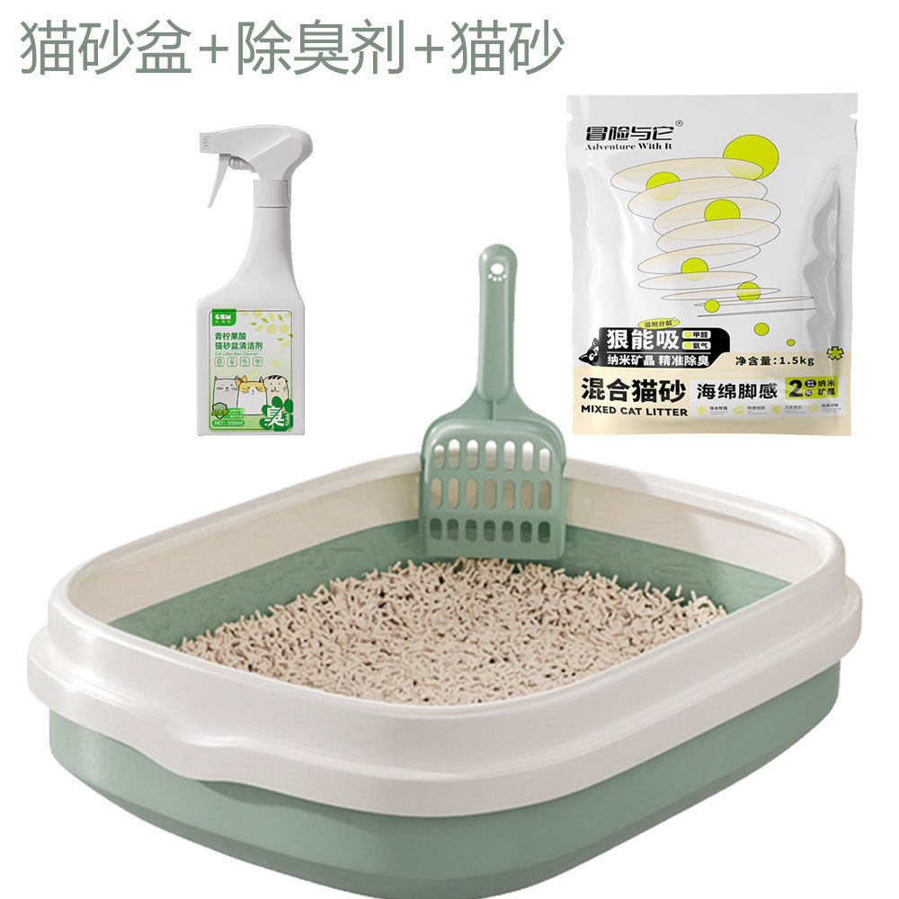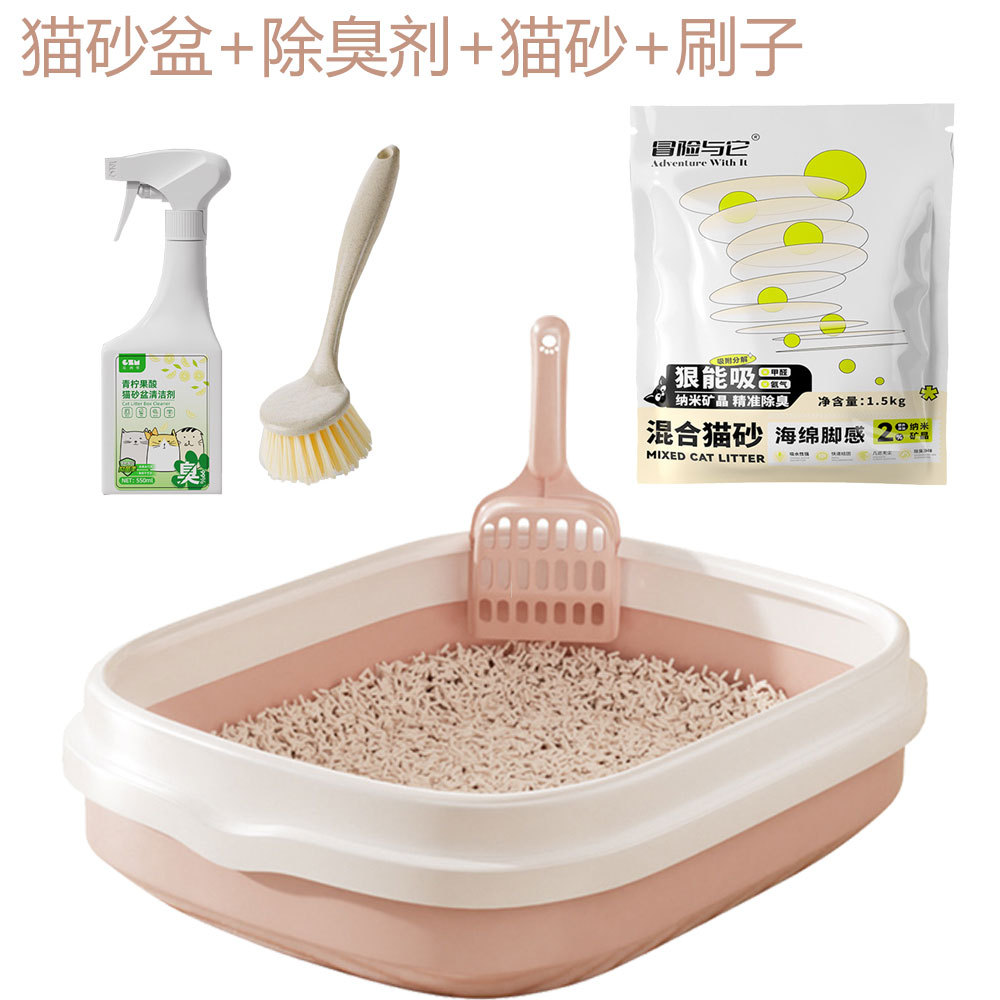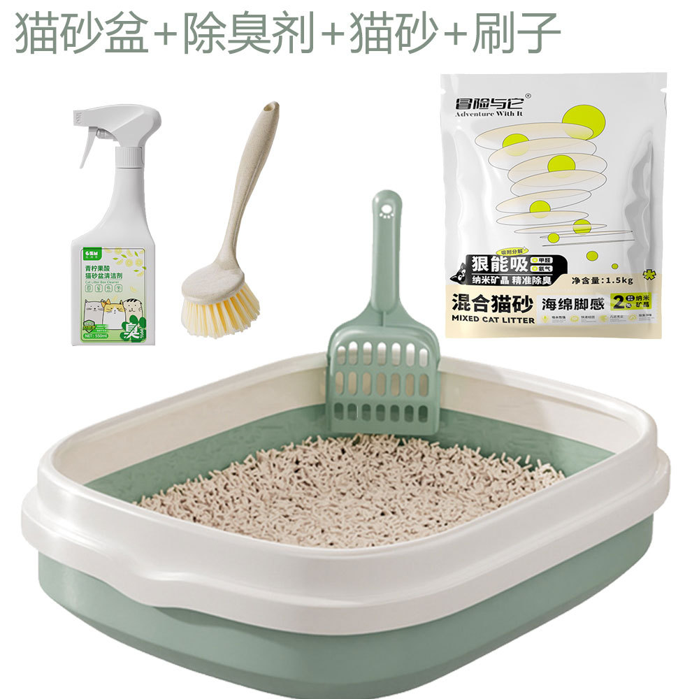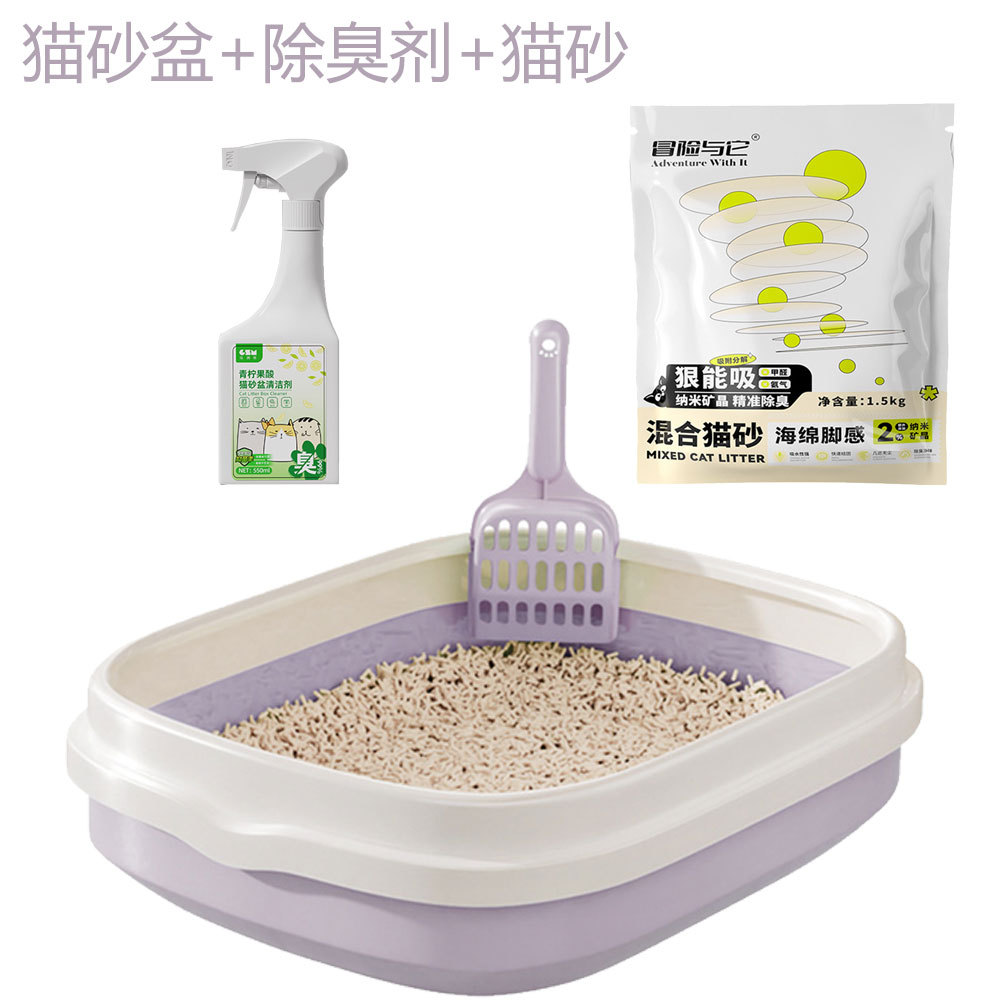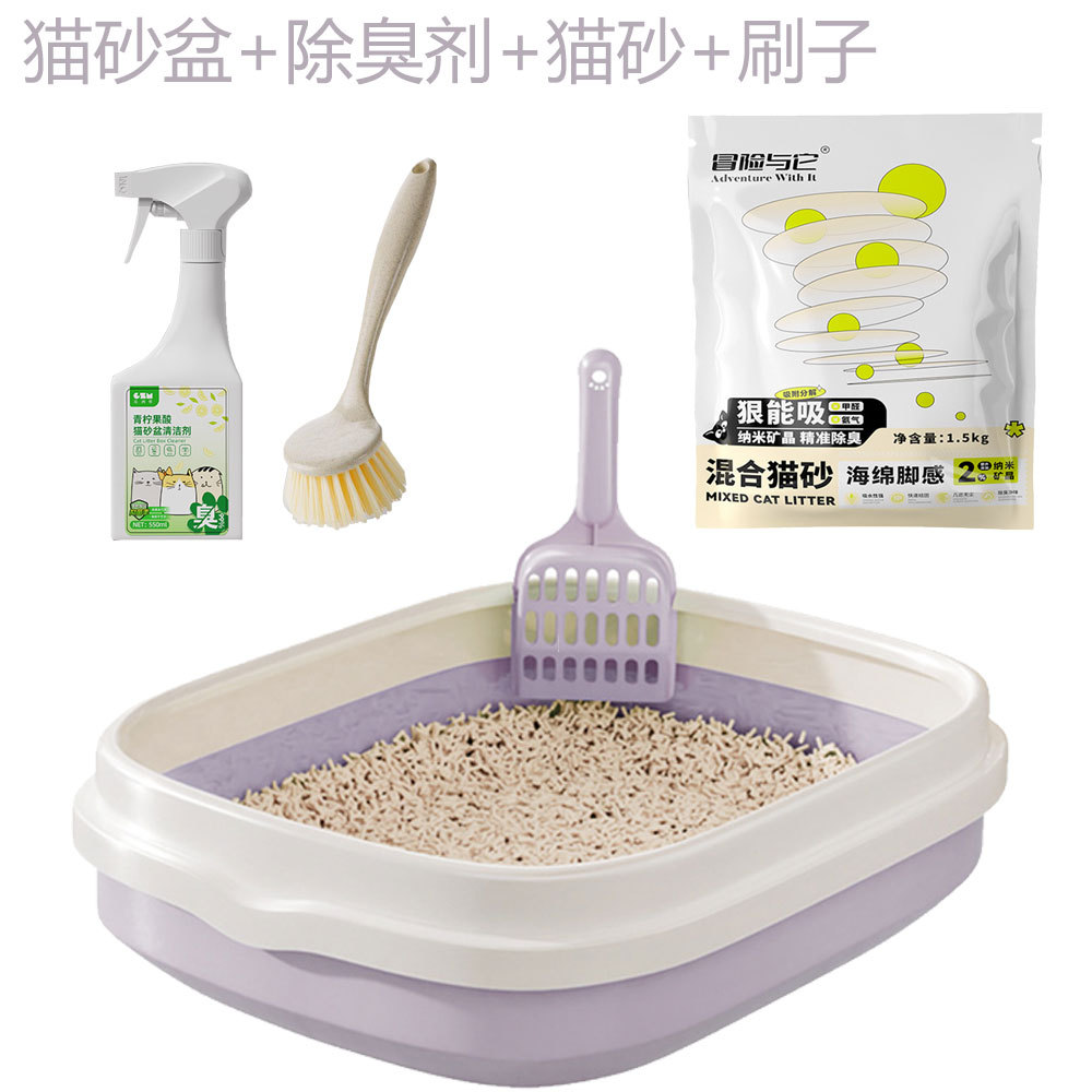 Домашние животные Полузакрытый утолщеный кошачий песочник для защиты от брызг кошачьего туалета Большая емкость скандинавского ветра кошачий песочник для животных