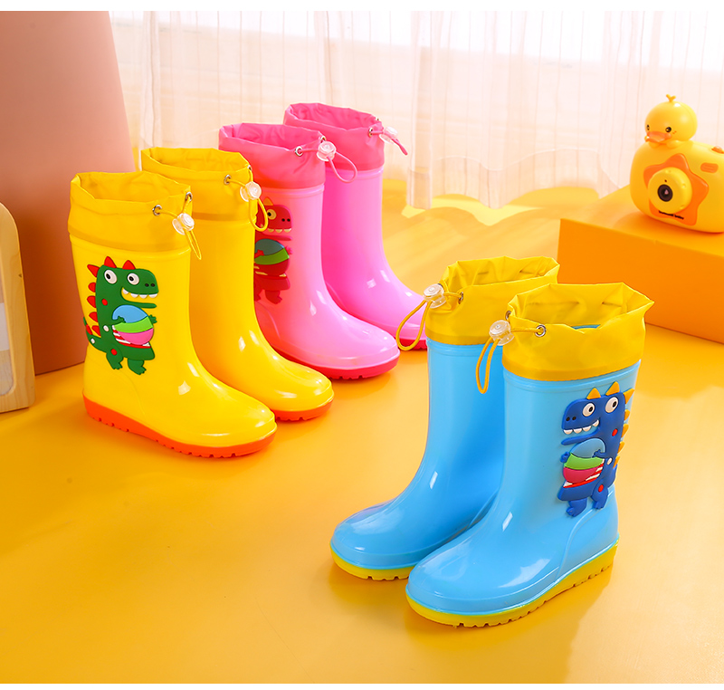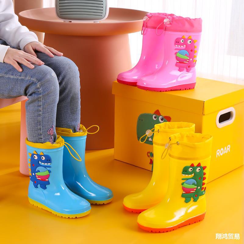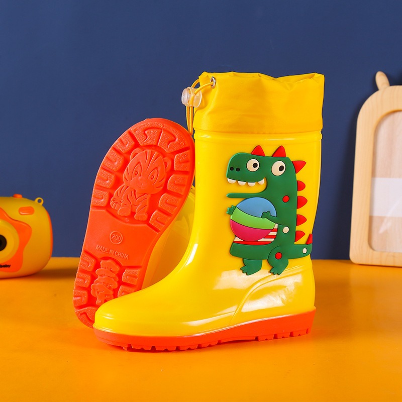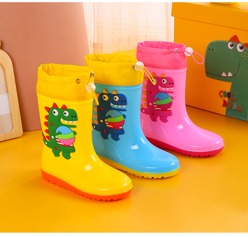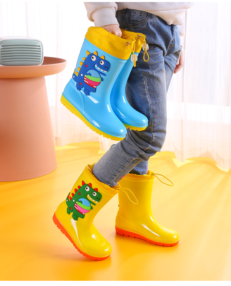 1-16 лет дети высокие дождевые туфли динозавры мультяшные водяные сапоги нескользящие мягкие водонепроницаемые туфли для мальчиков девочек малышей резиновые туфли