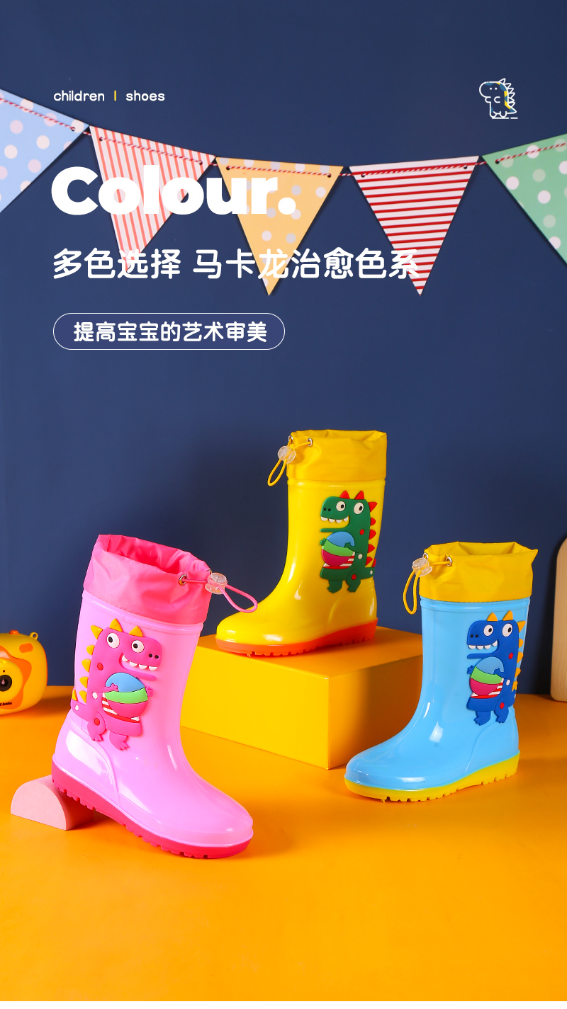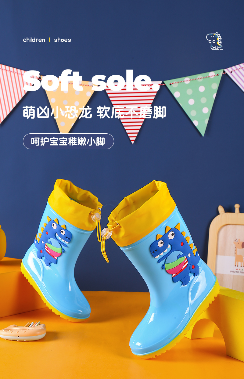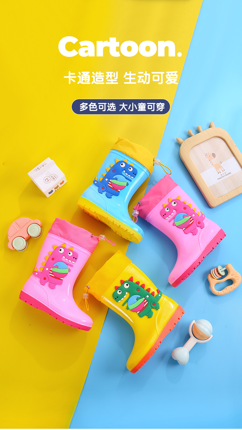 1-16 лет дети высокие дождевые туфли динозавры мультяшные водяные сапоги нескользящие мягкие водонепроницаемые туфли для мальчиков девочек малышей резиновые туфли