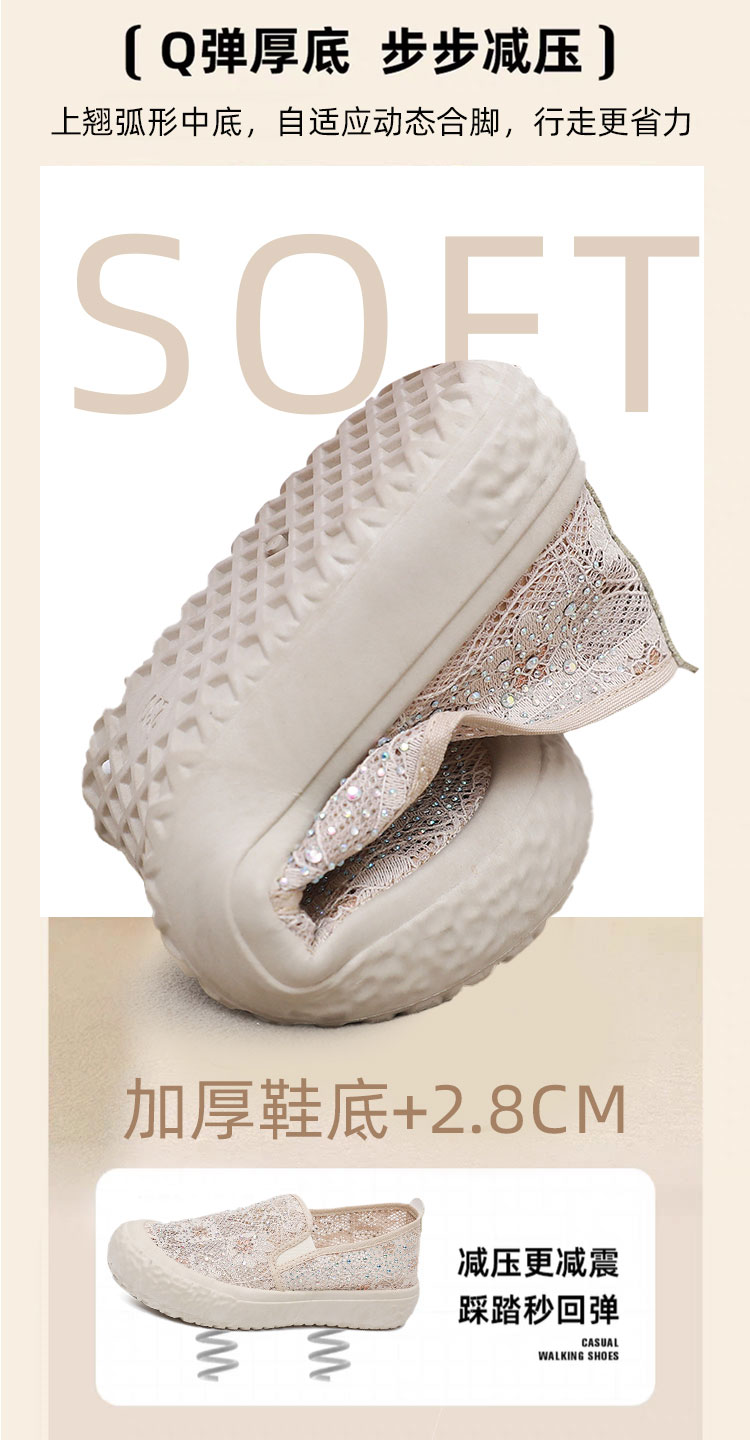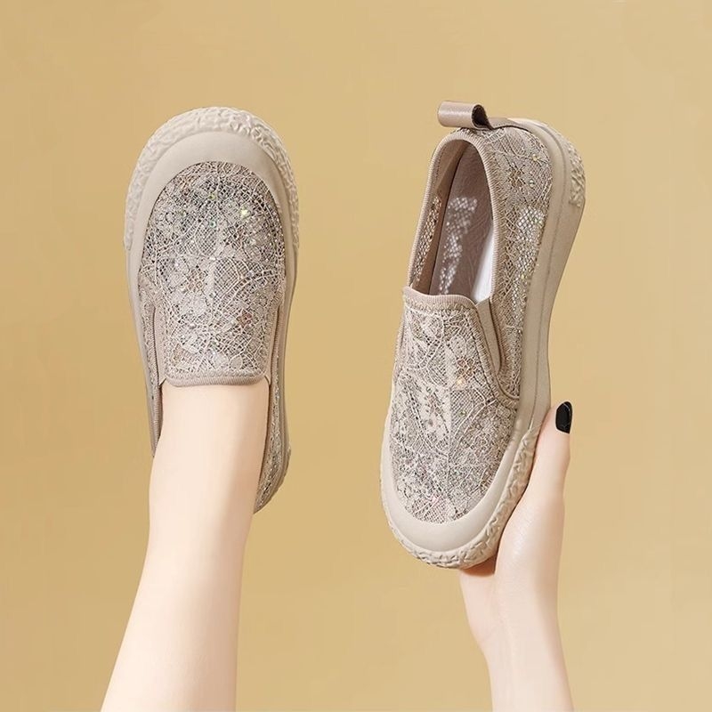 Рыбацкая обувь в твидовом стиле, женская летняя обувь 2024, новая кружевная женская обувь с дышащей сеткой, самая популярная подходящая обувь без шнуровки на толстой подошве