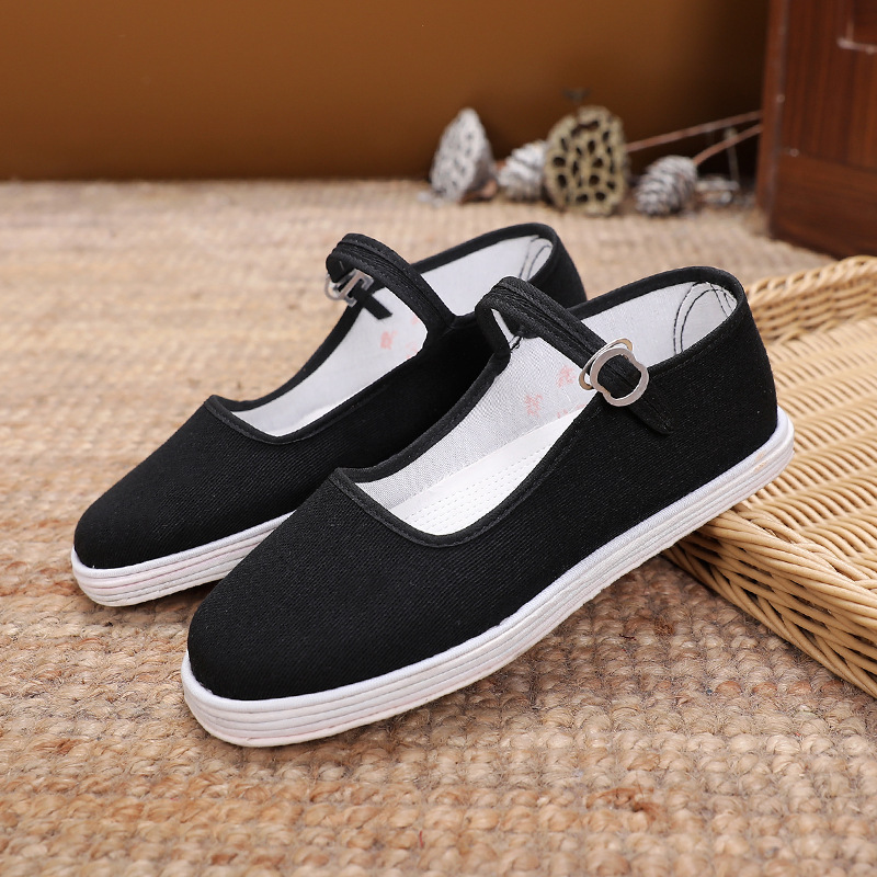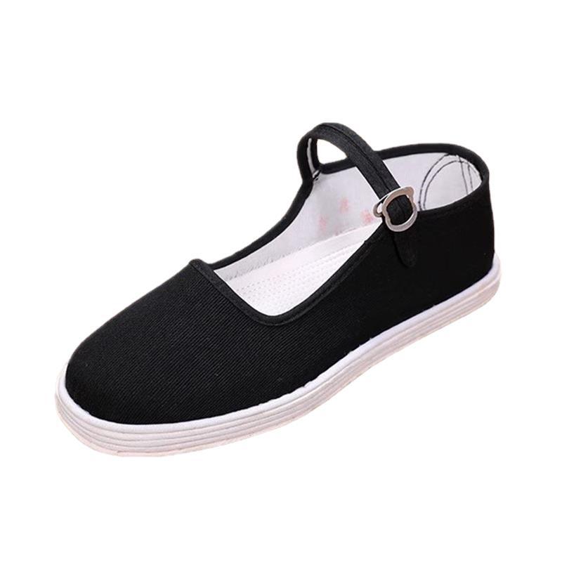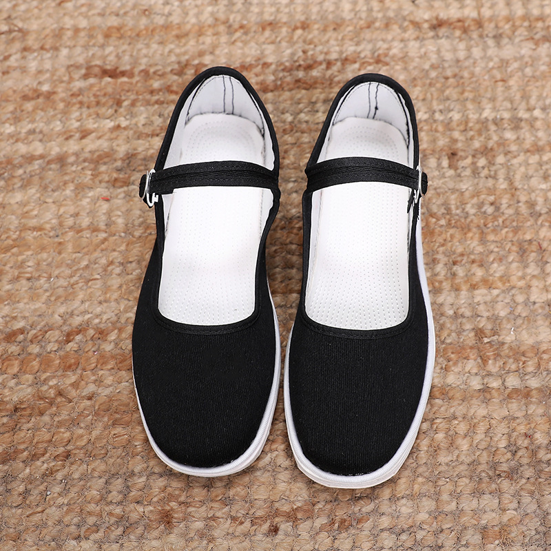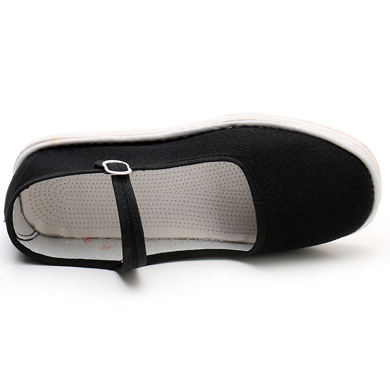 Женские летние тканевые туфли ручной работы, с неглубоким горлышком, дышащие, впитывающие пот, стоячие стойки, тысячеслойная подошва, женская обувь, подошва из чистой ткани, повседневные туфли из черной ткани.