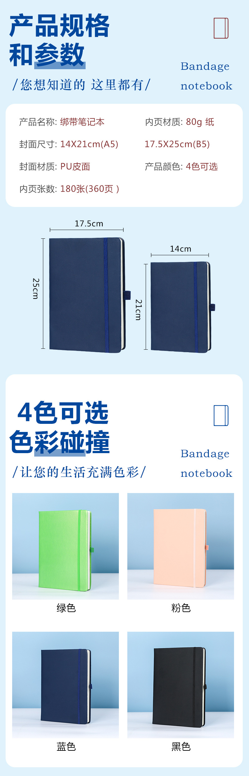 Оптовая продажа толстых моделей с ленточными ленточными цветами для бизнеса A5 ноутбук офисный цвет B5 блокнот для студентов дневник