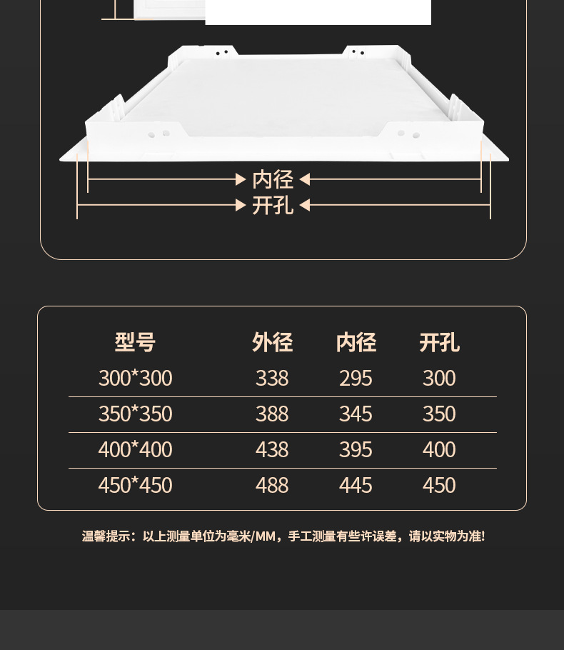 Отверстие отверстия ABS 300*300mm; Отверстие отверстия ABS 350*350 мм; Отверстие отверстия ABS 400*400 мм; Отверстие отверстия ABS 450*450 мм