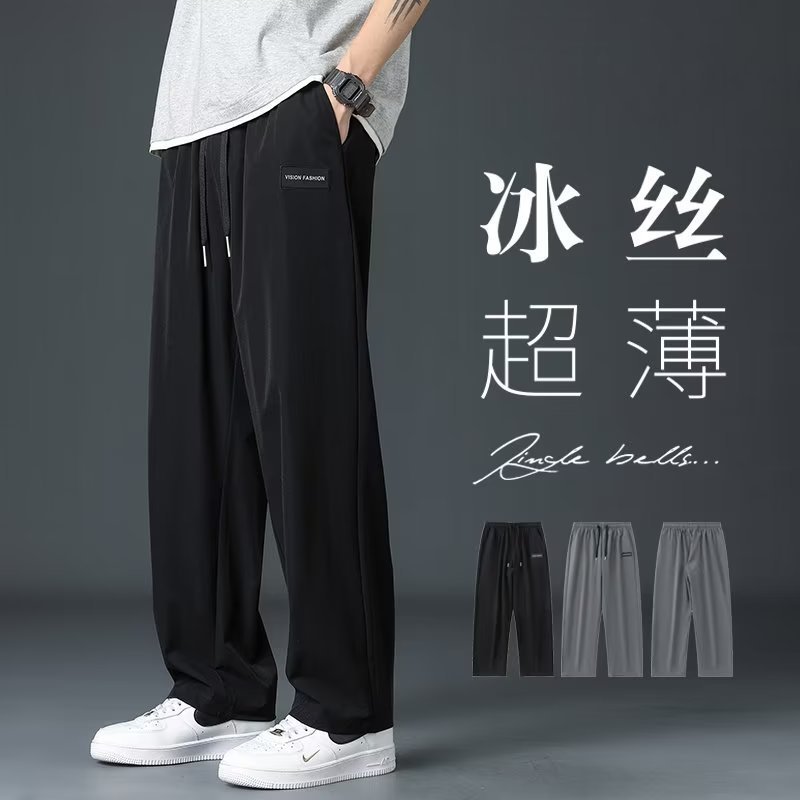 Производители оптовые новые свободные повседневные брюки мужские корейские трендовые ледяные шелковые прямые дикие брюки Летние тонкие брюки