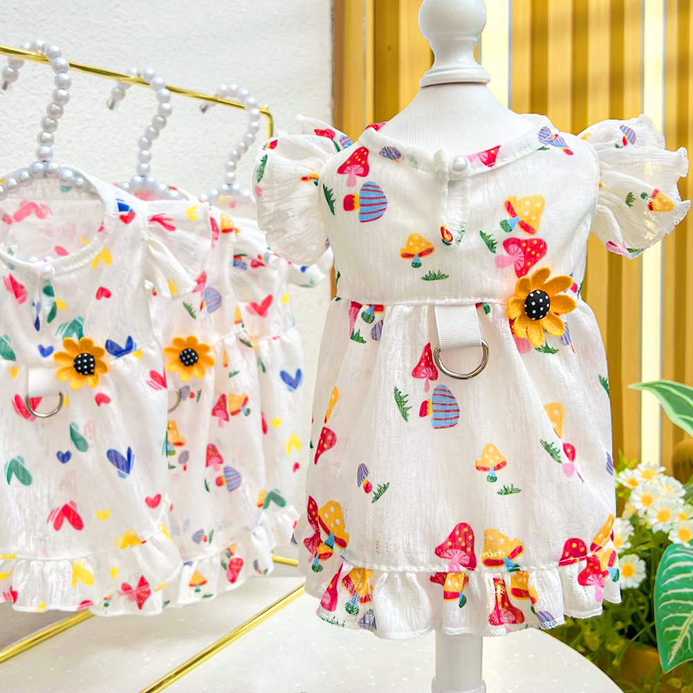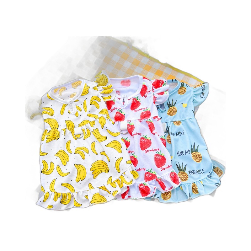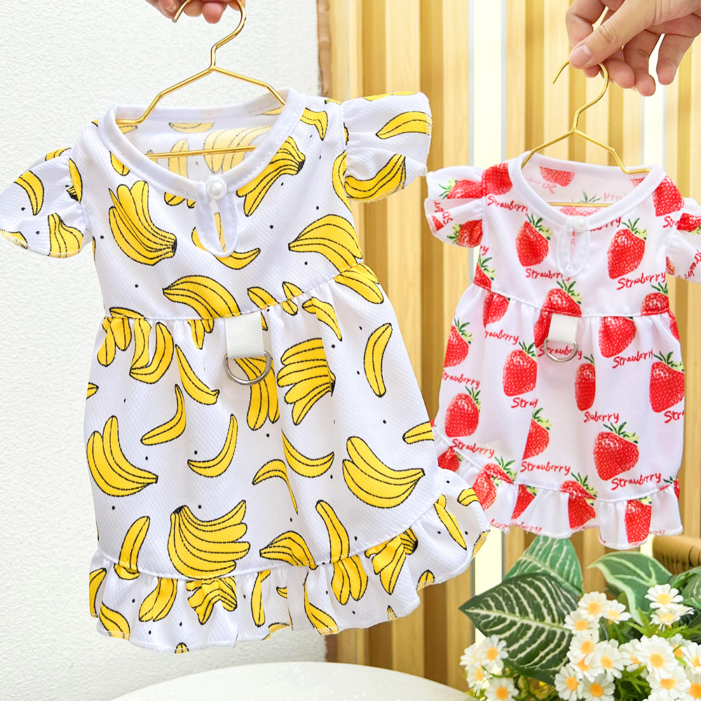 Летнее дышащее платье для кошек и собак в мультяшном стиле с фруктовым принтом, совместимое с поводком, товары для животных для тедди и бишонов.