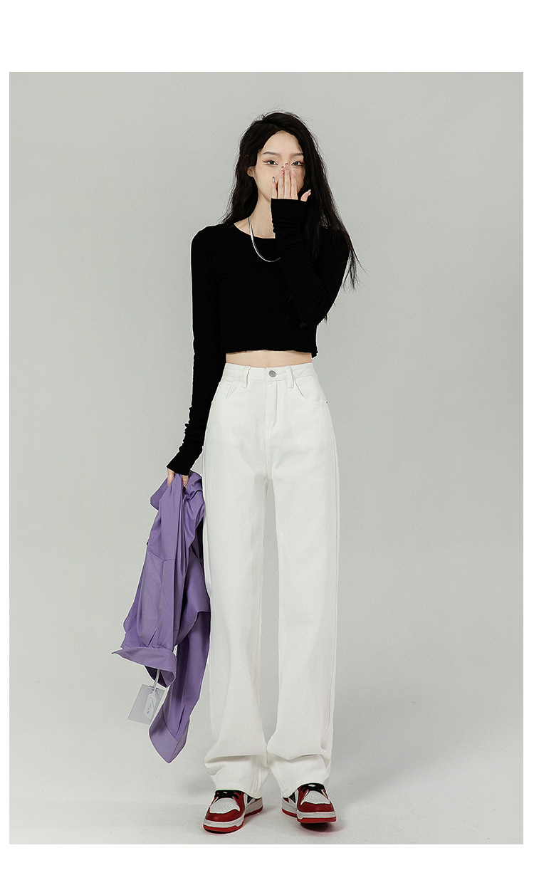 Джинсы с высокой талией женские прямые свободные весной 2023 новый маленький человек высокий, тонкая и широкая штаны
